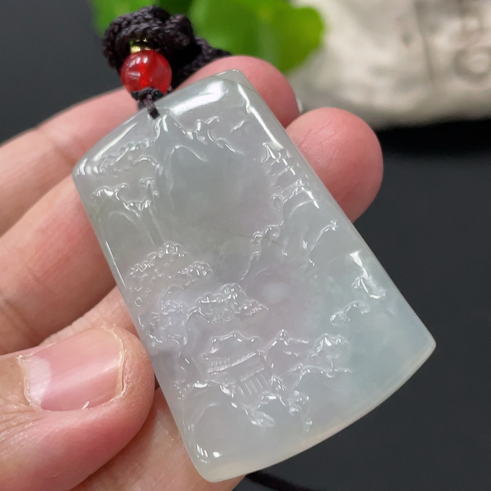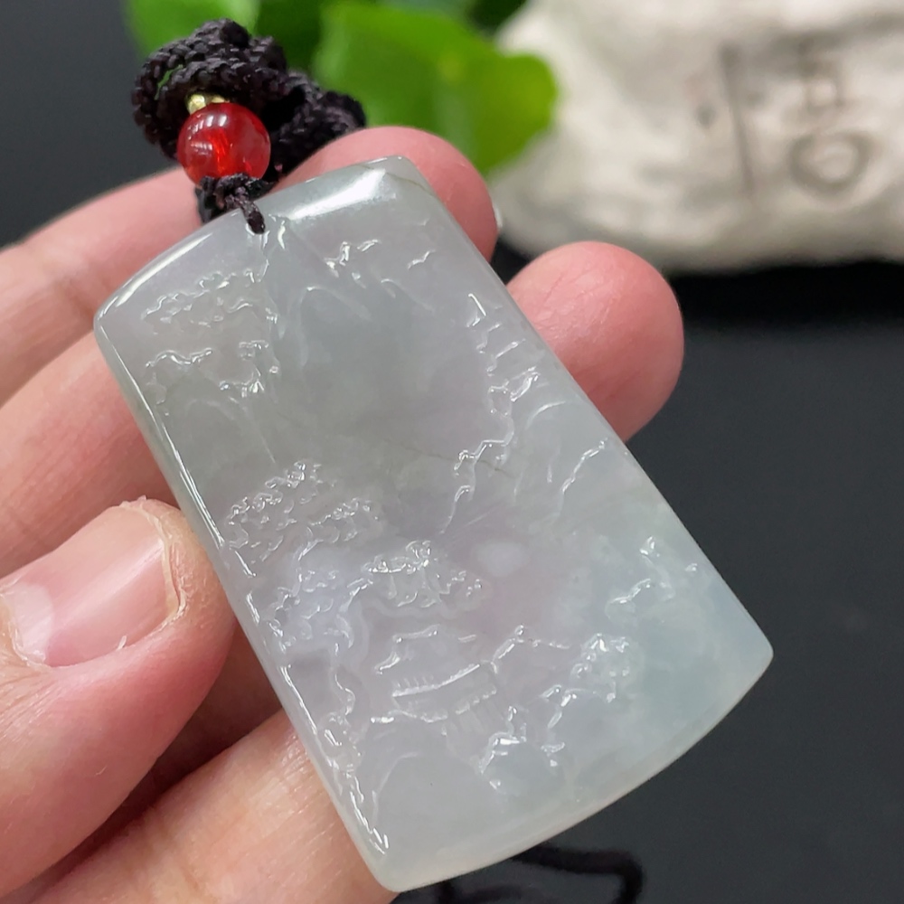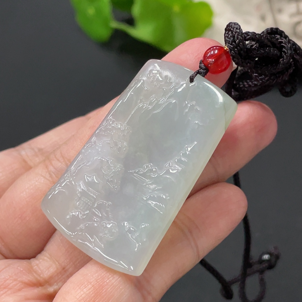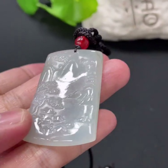 Jadeite Pendant Landscape Plaque Total Weight Approximately 15.14g Including Rope
