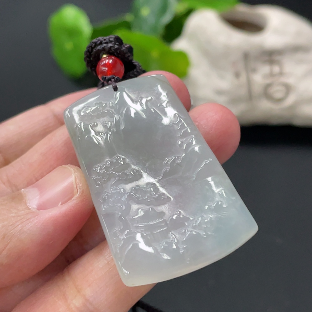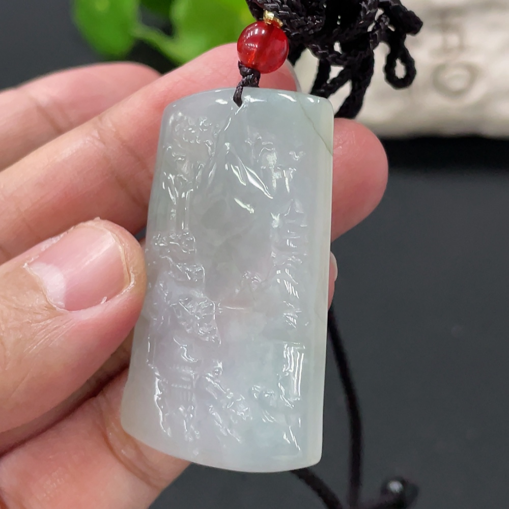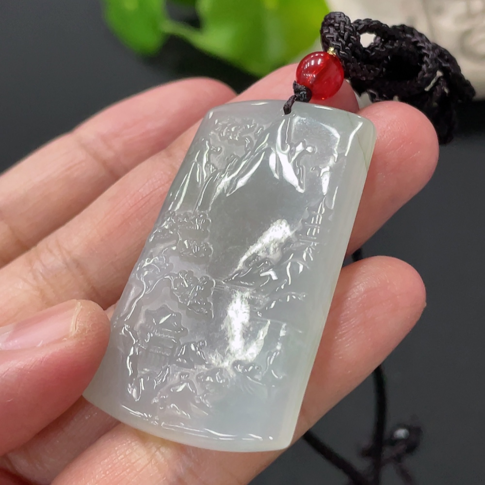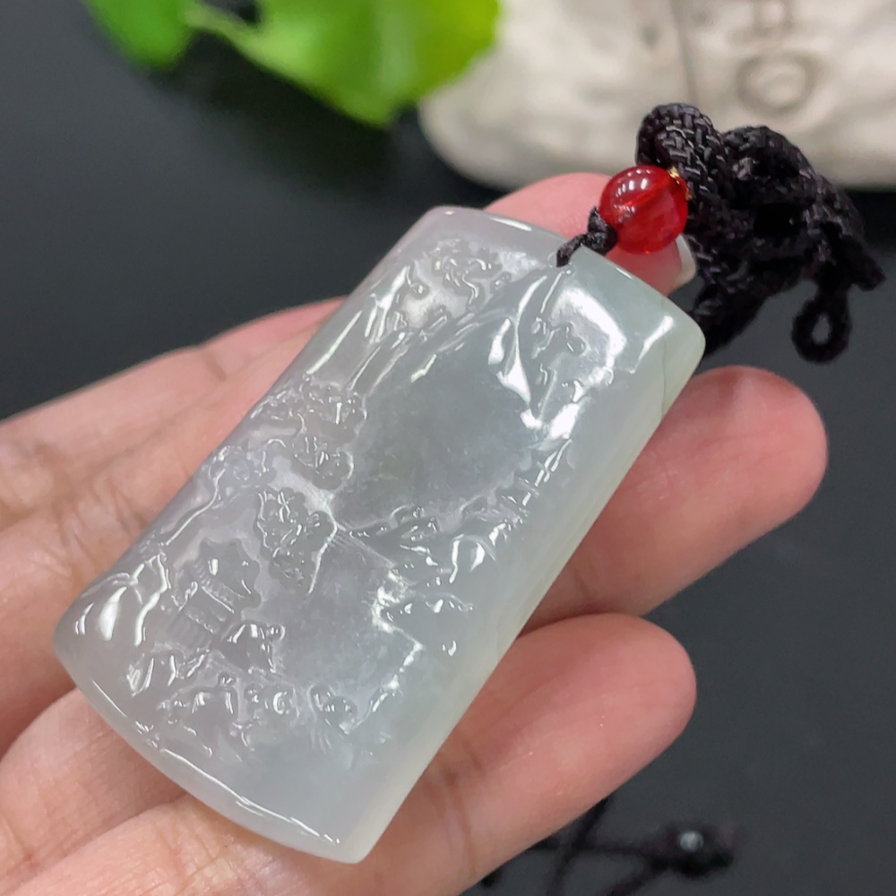 Jadeite Pendant Landscape Plaque Total Weight Approximately 15.14g Including Rope