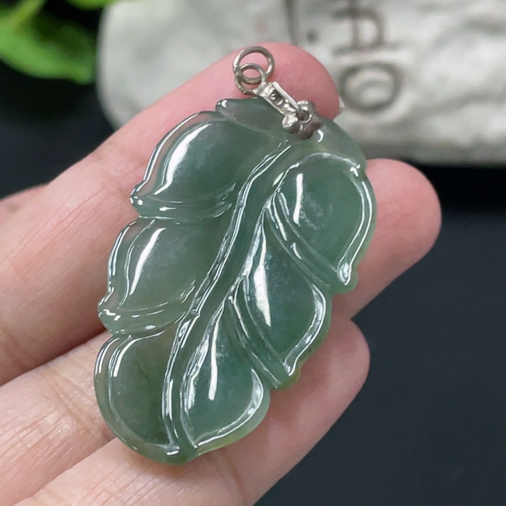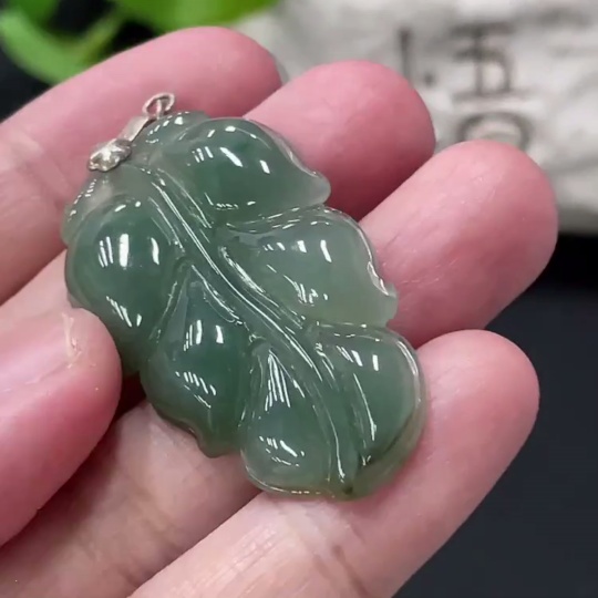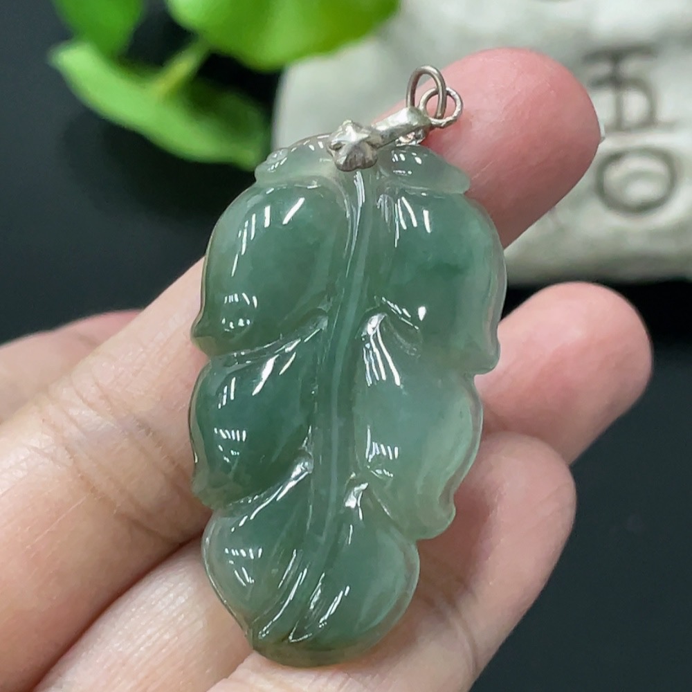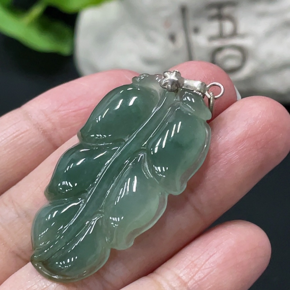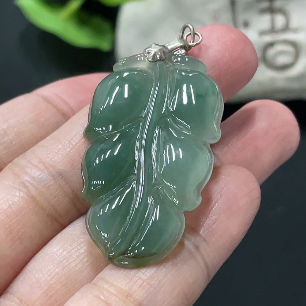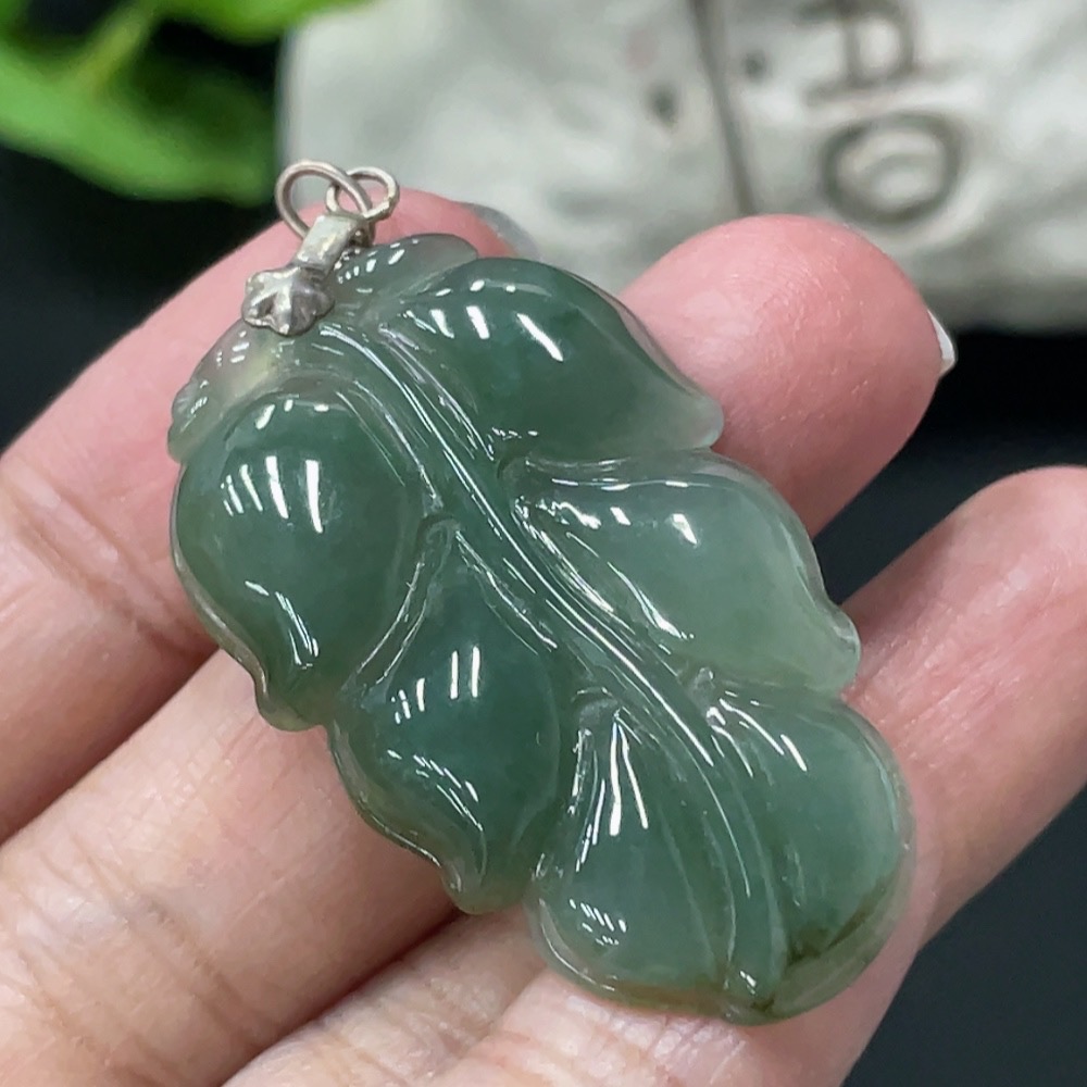 Jadeite Leaf Pendant Non-Gold Inlaid Total Weight Approx. 8g