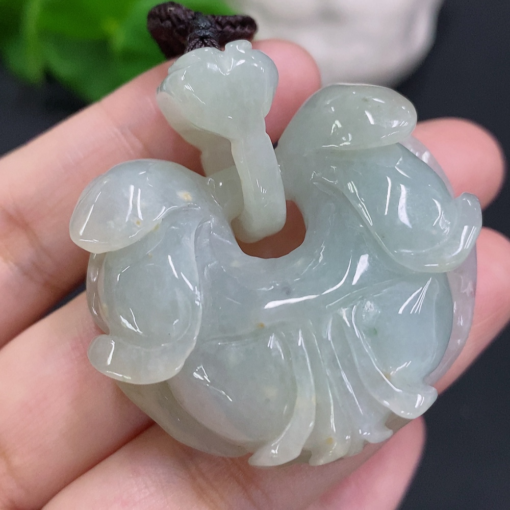Jadeite Flower of Prosperity Pendant, Total Weight Including Rope Approximately 39.5g