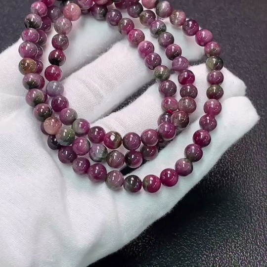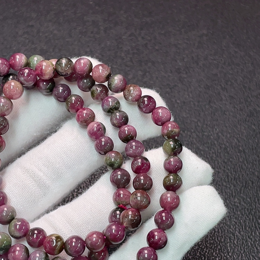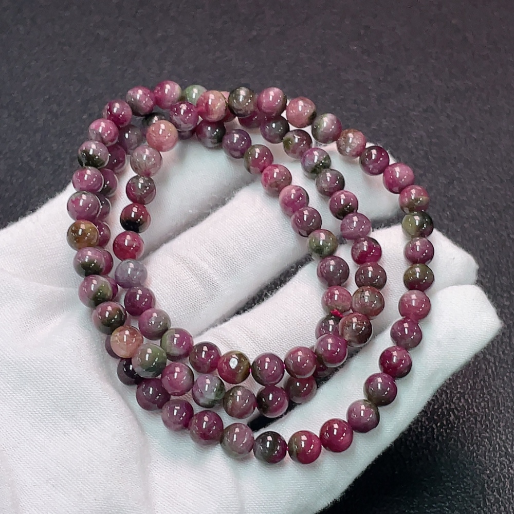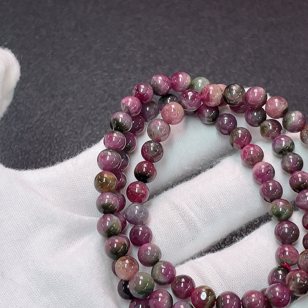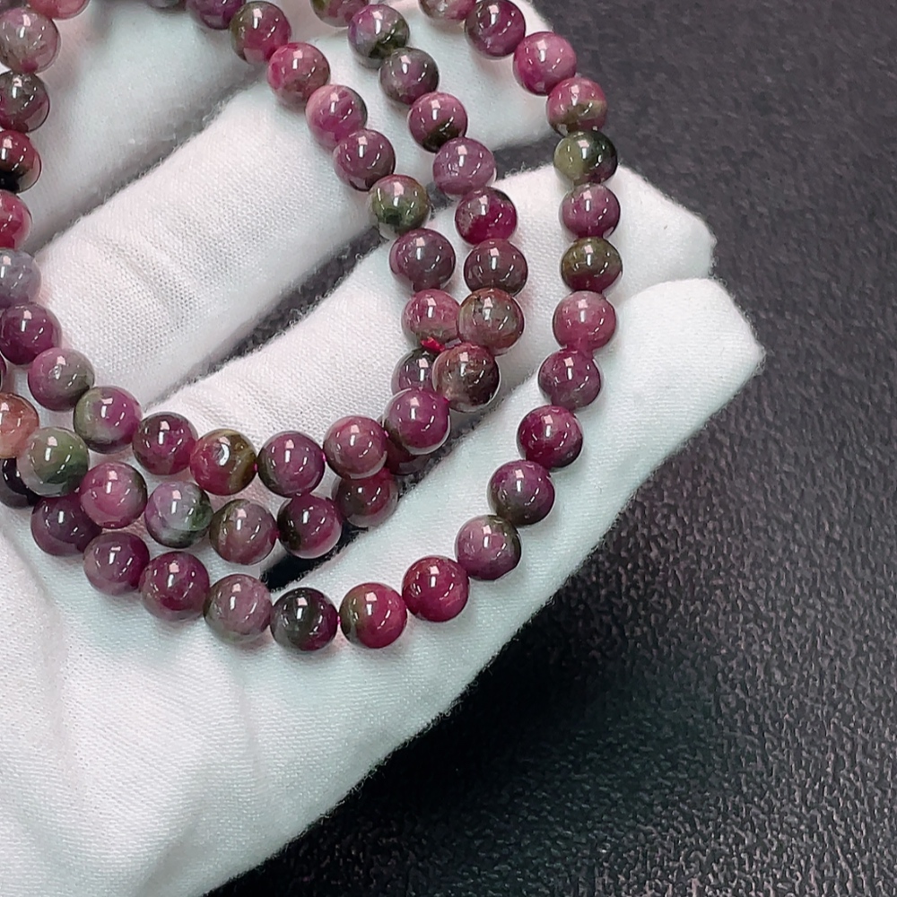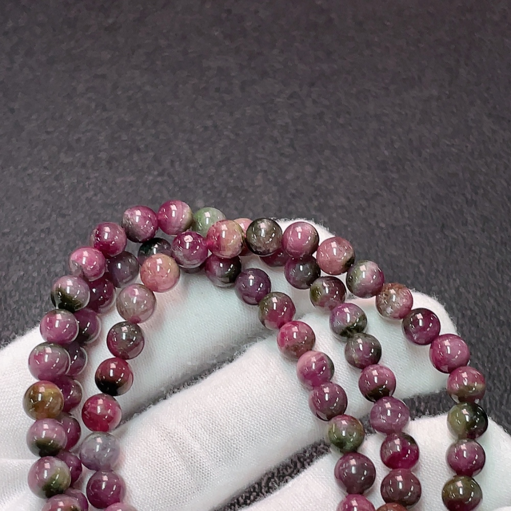 Tourmaline bead bracelet with other mineral components and visible organic matter, total weight approx. 33.13g, bead size approx. 6.3mm