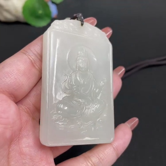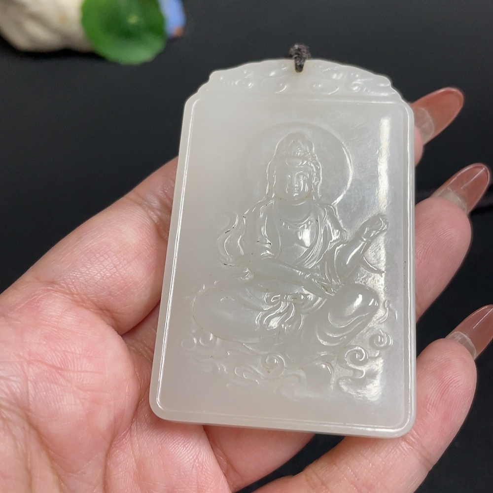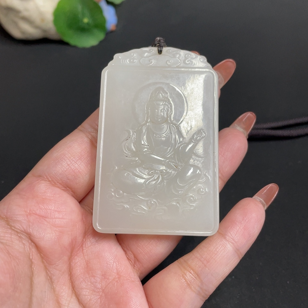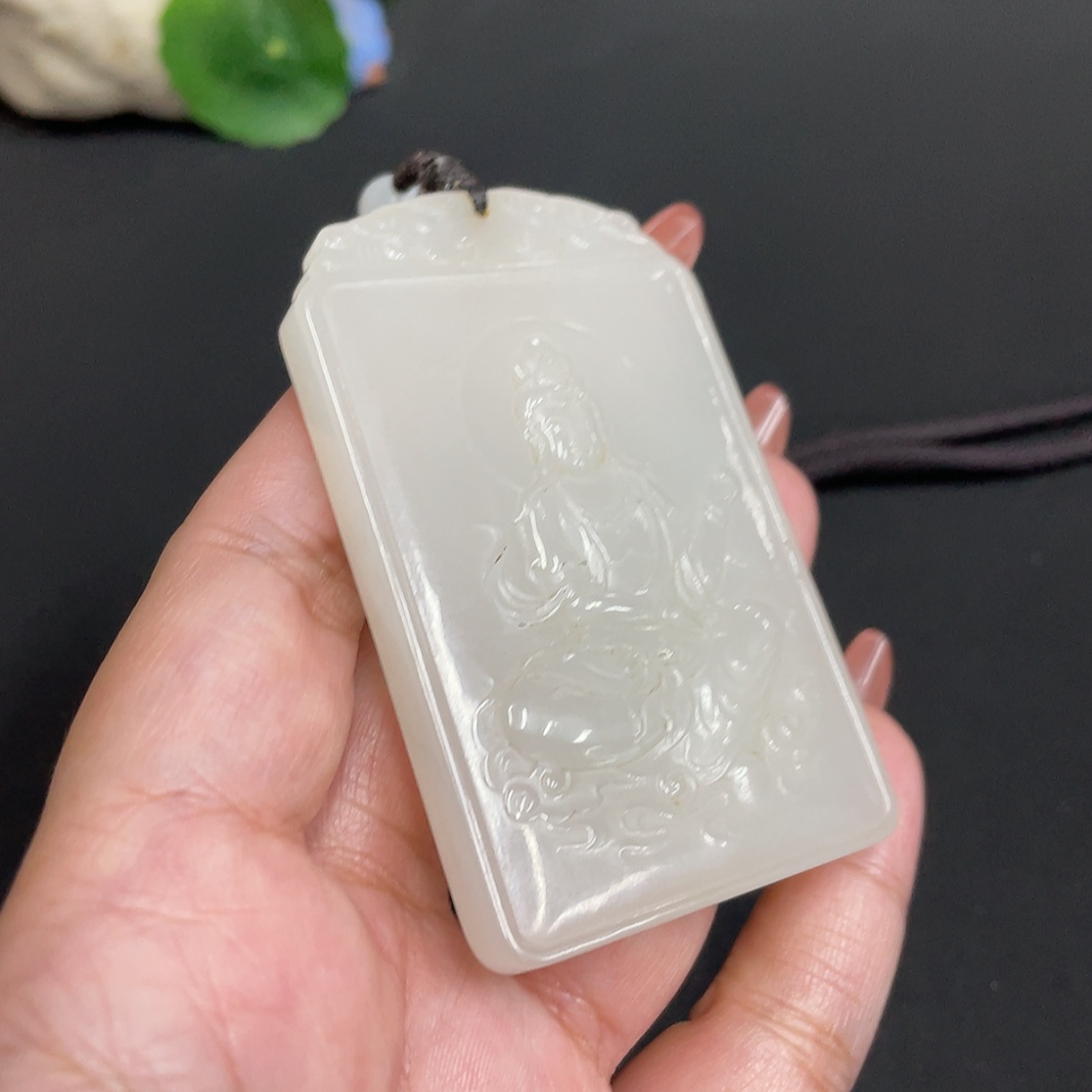 Hetian Jade Pendant Guanyin Total Weight [with rope] 77.9g