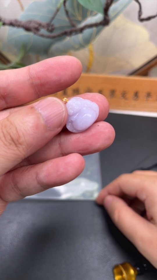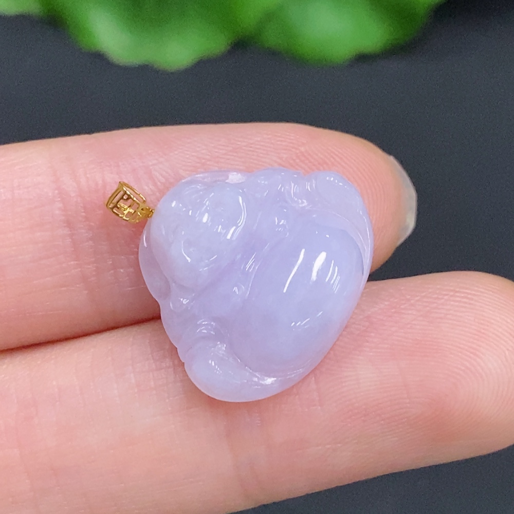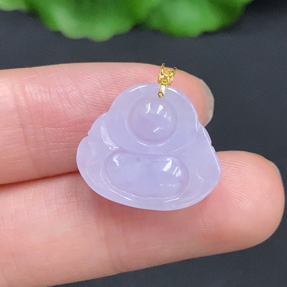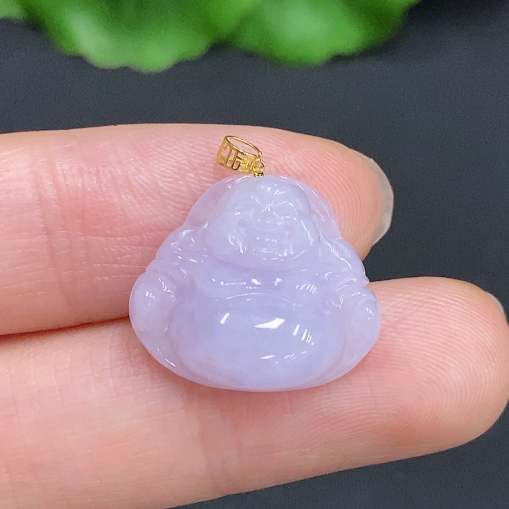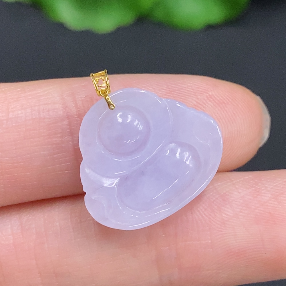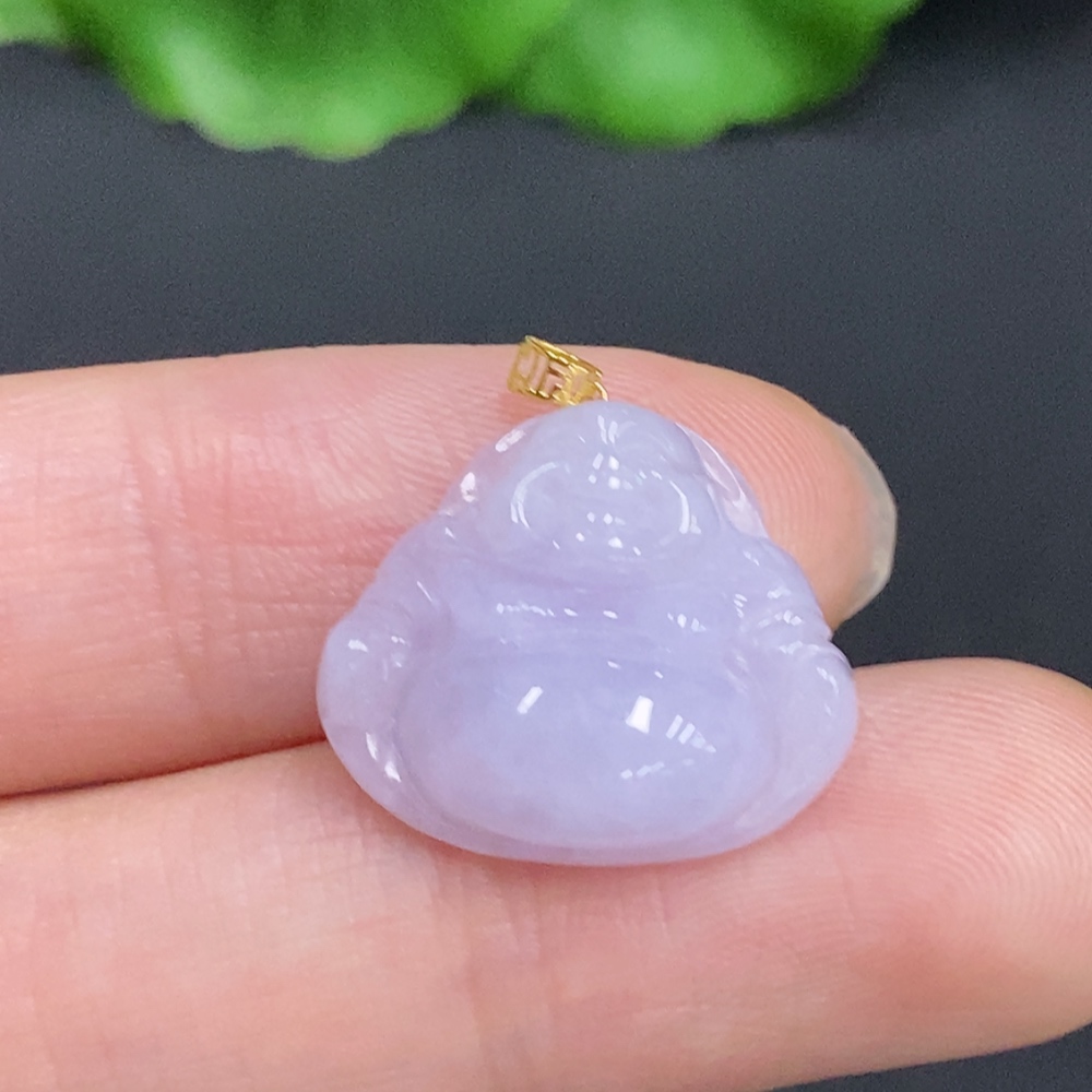 Jadeite Buddha Pendant with 18K Gold Clasp, Total Weight Approximately 2.5g