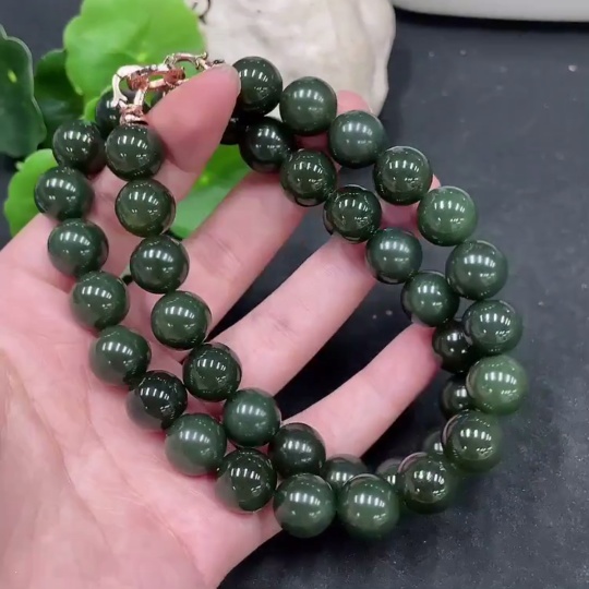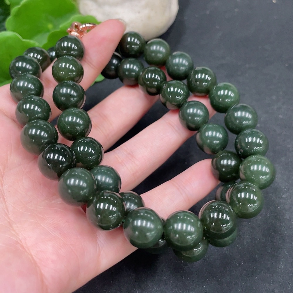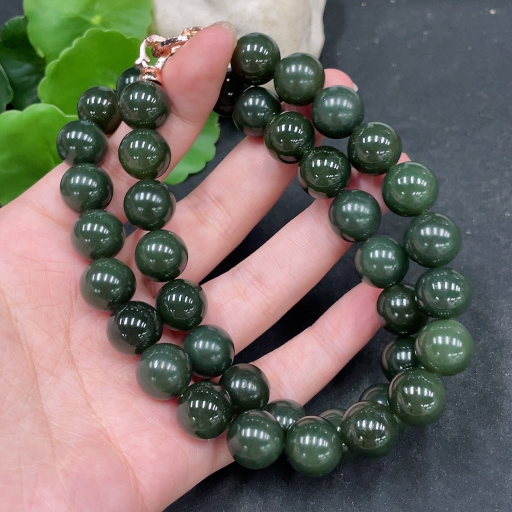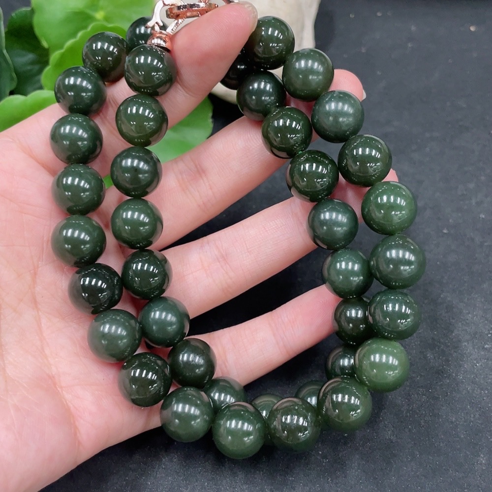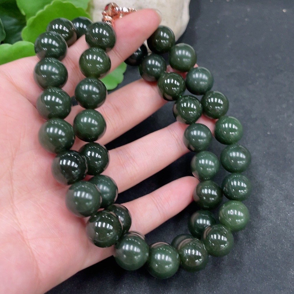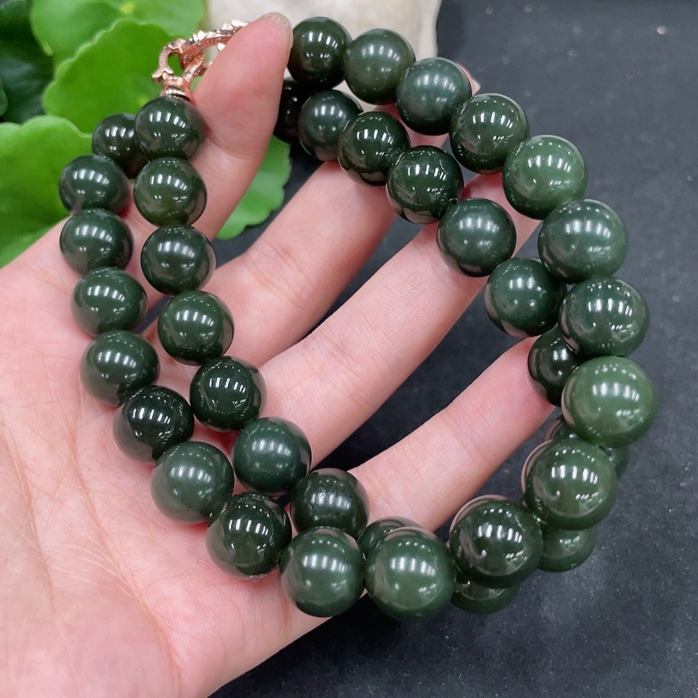 Hetian Jade Bead Necklace Approx.11.7mm Total Weight Approx.110.4g Non-gold