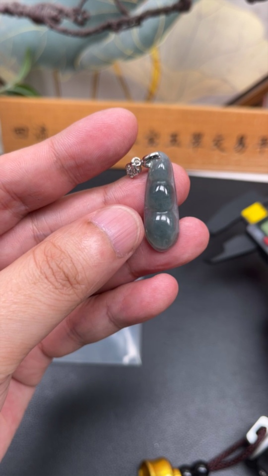 Jadeite Pendant Bean Non-Gold Total Weight Approx. 3.4g