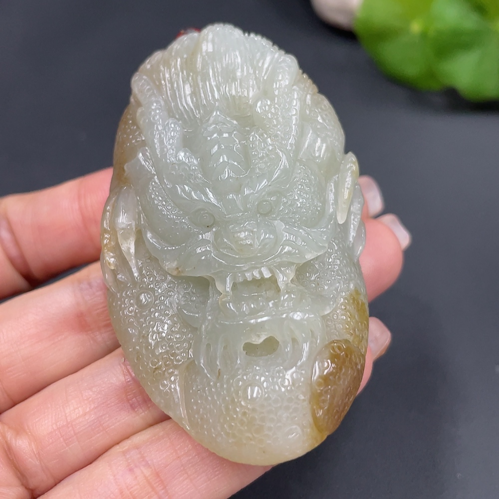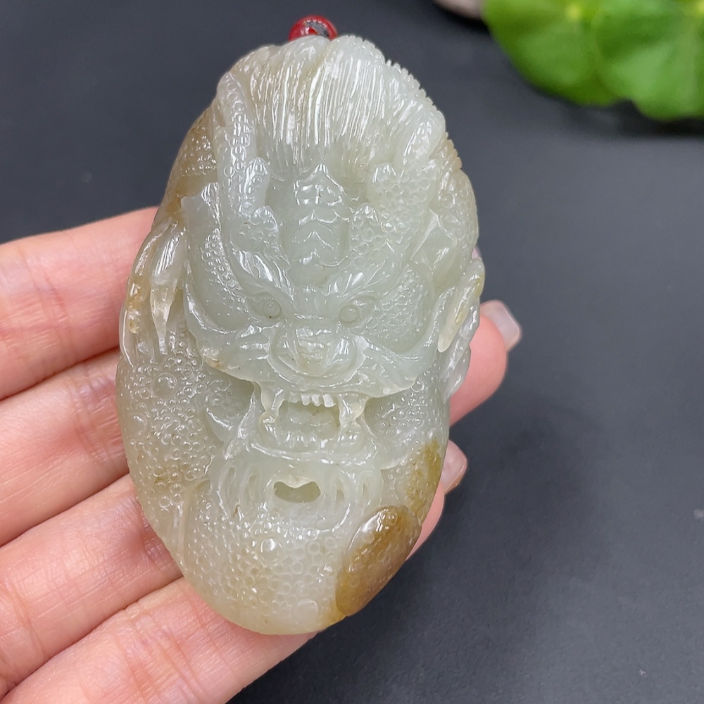 Hetian Jade Pendant Dragon Undetermined Skin Color Cause Total Weight Approx. [Including Rope] 75.7g