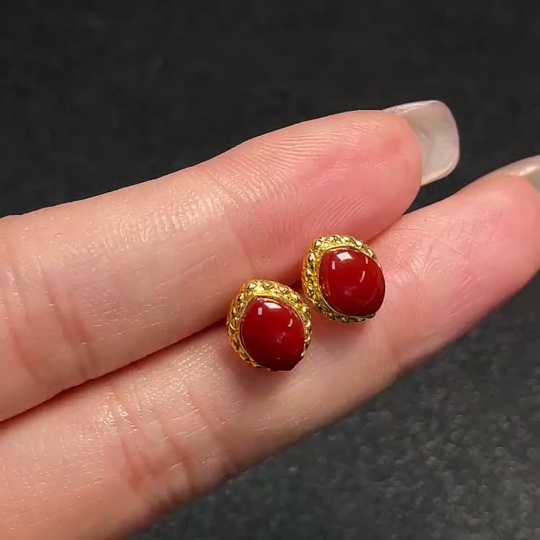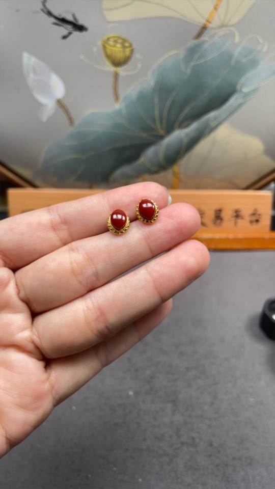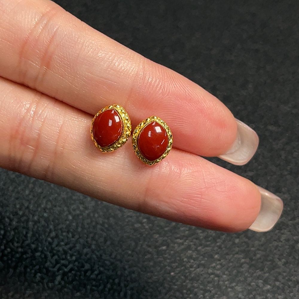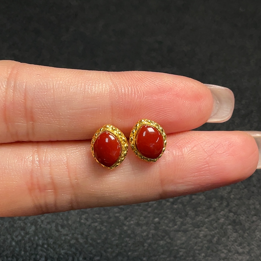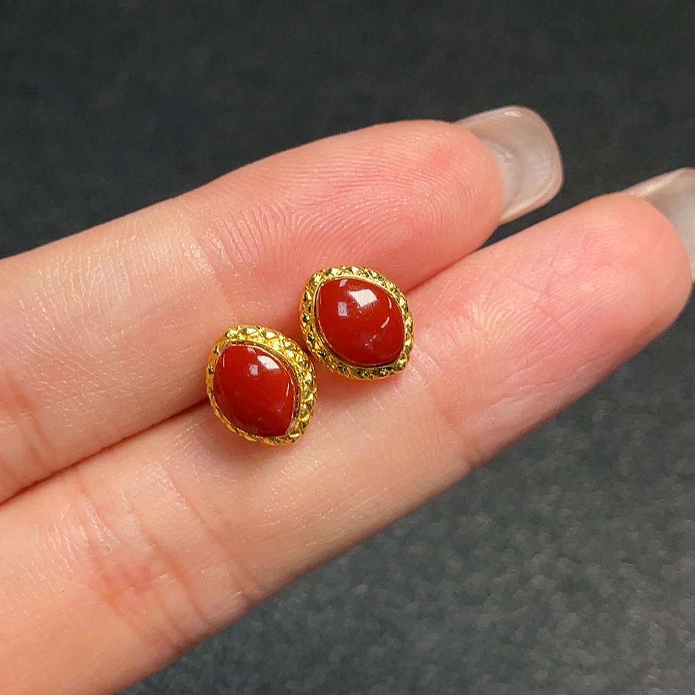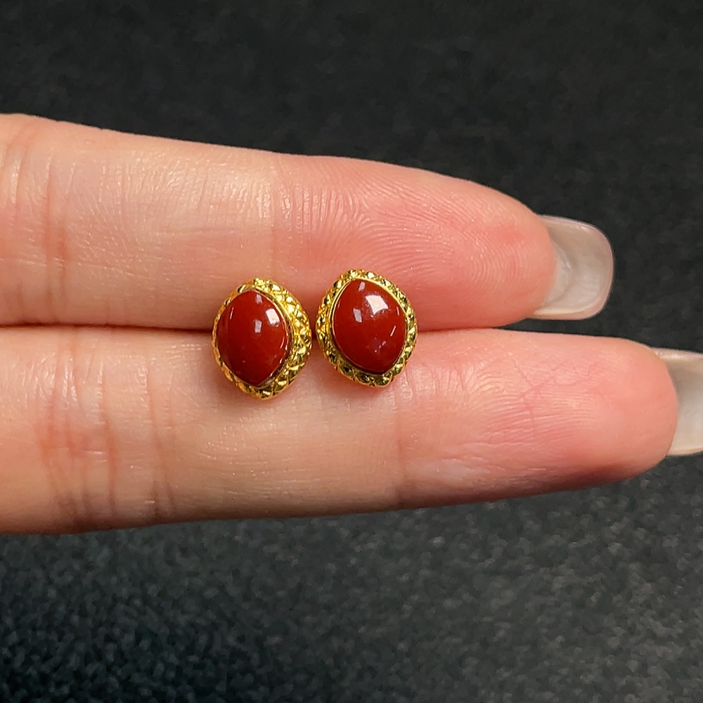 Red Agate Earrings 18K Gold Total Weight Approx. 1.64g