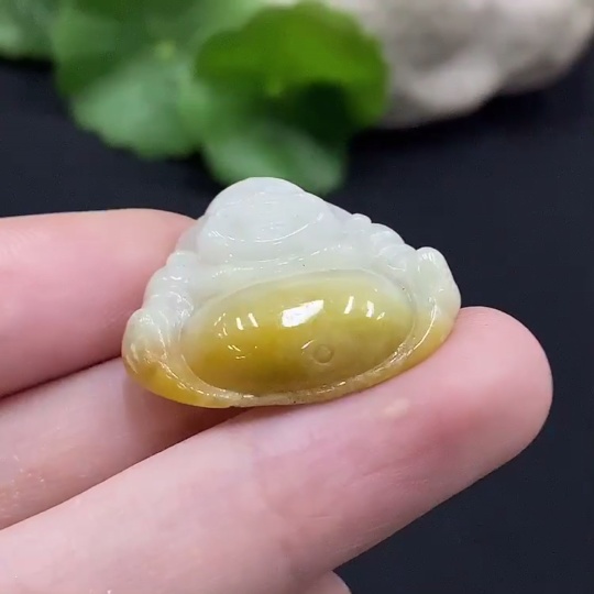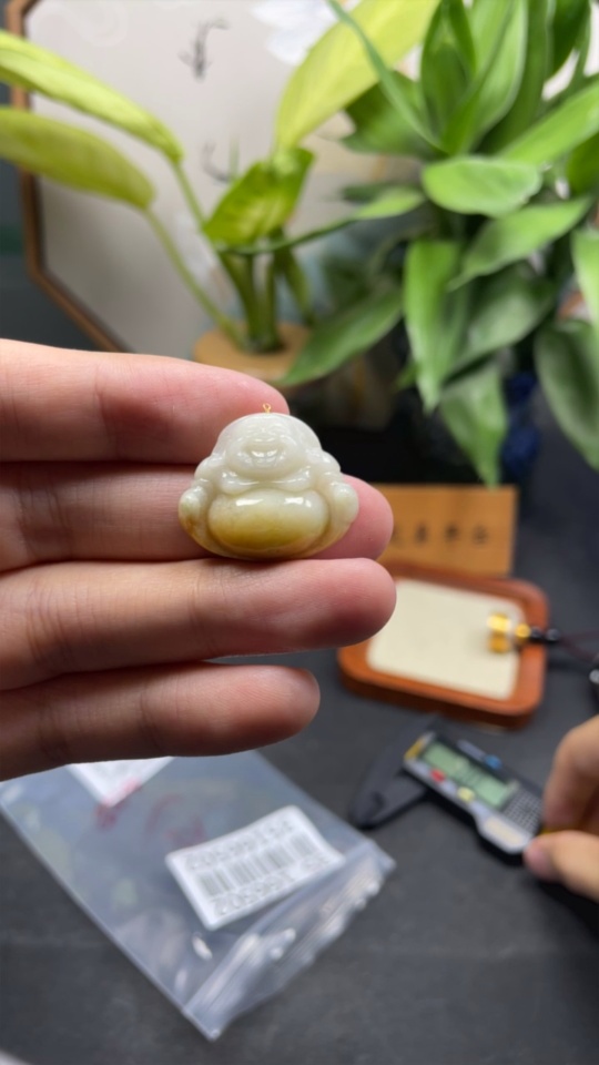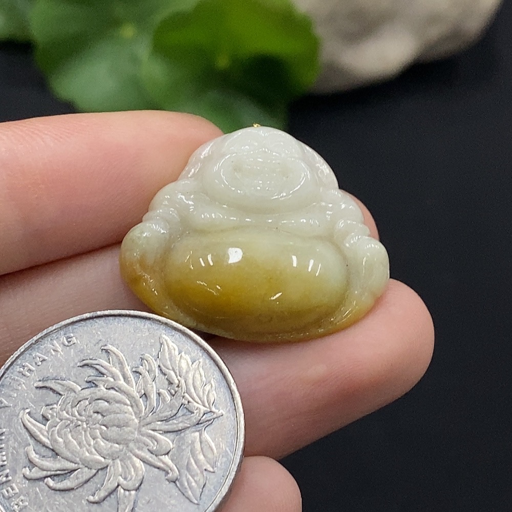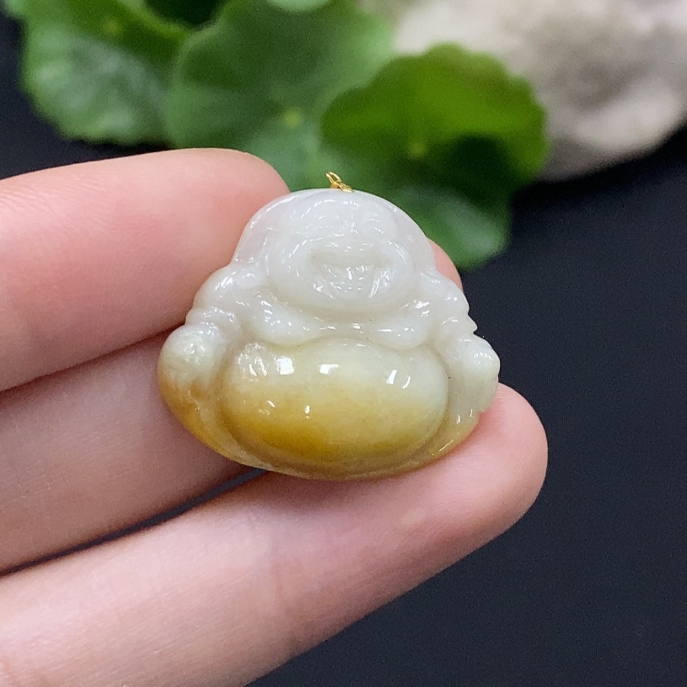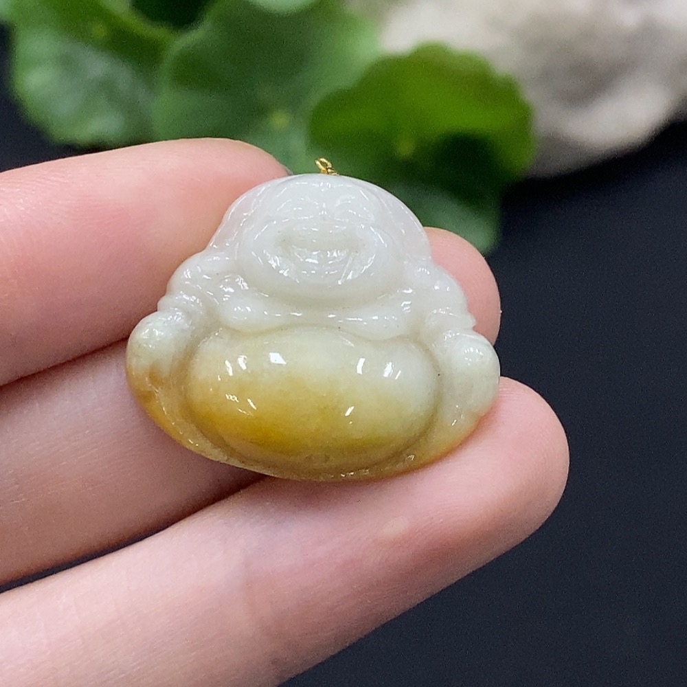 Jadeite Buddha Pendant, No Stamp, Gold Content 73%, Total Weight Approx. 4.9g