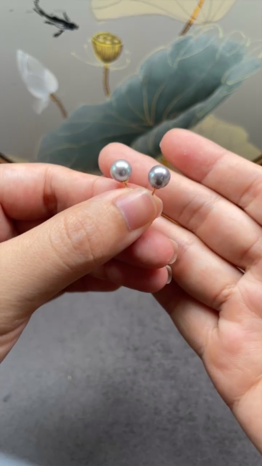 Seawater pearl earrings 18k gold color origin undetermined total weight approximately 1.11g size about 7mm