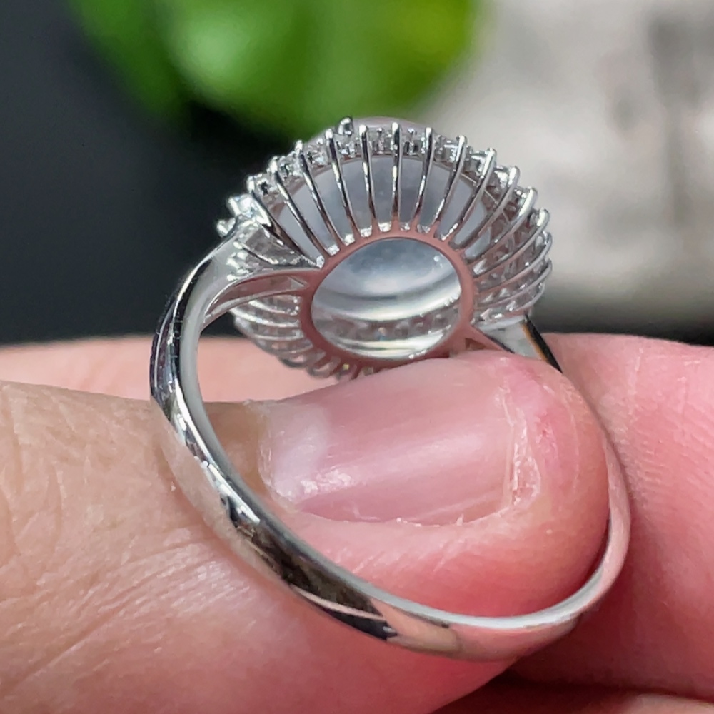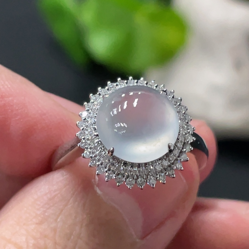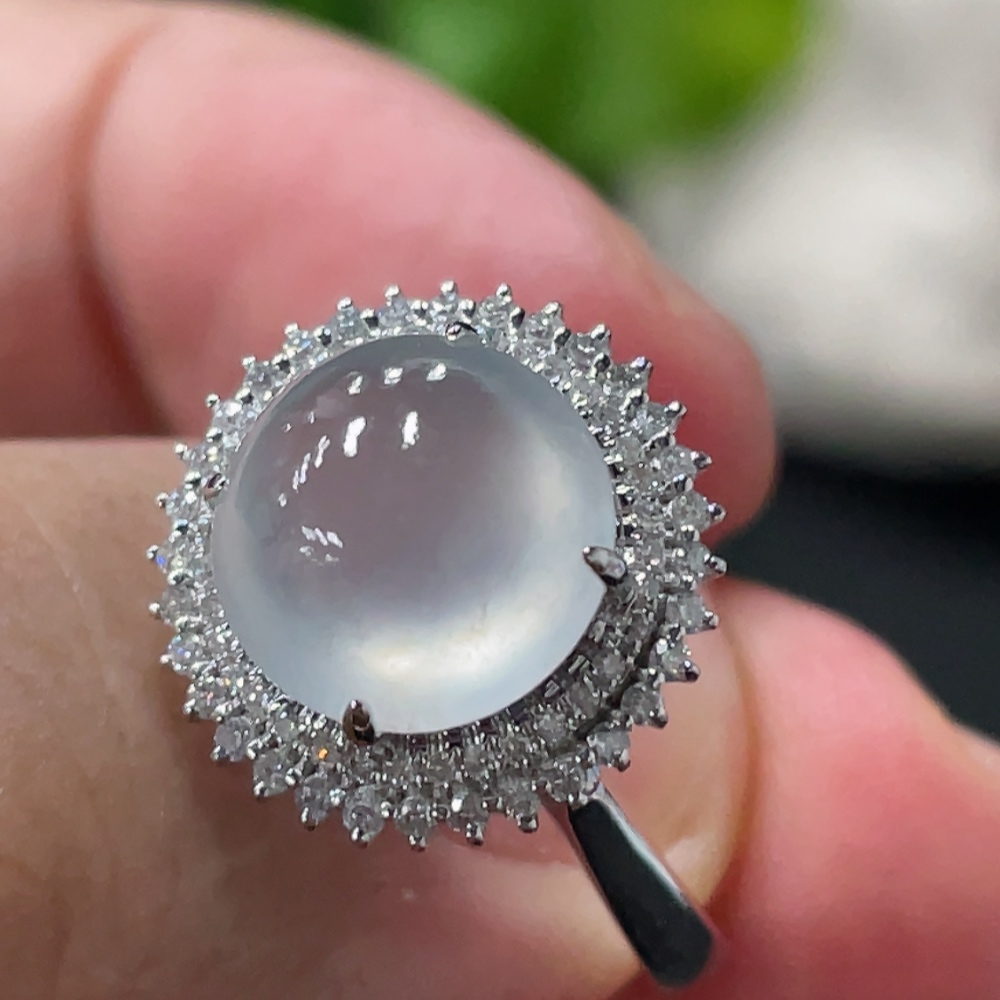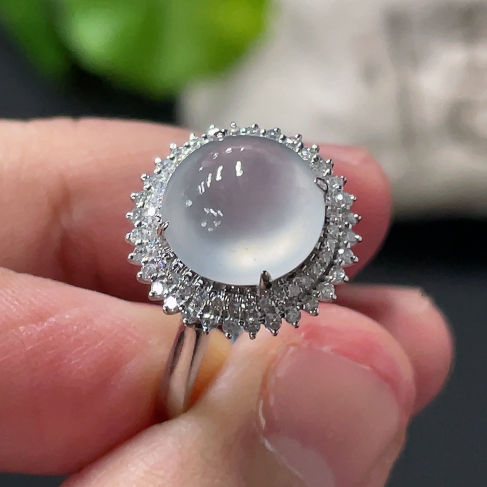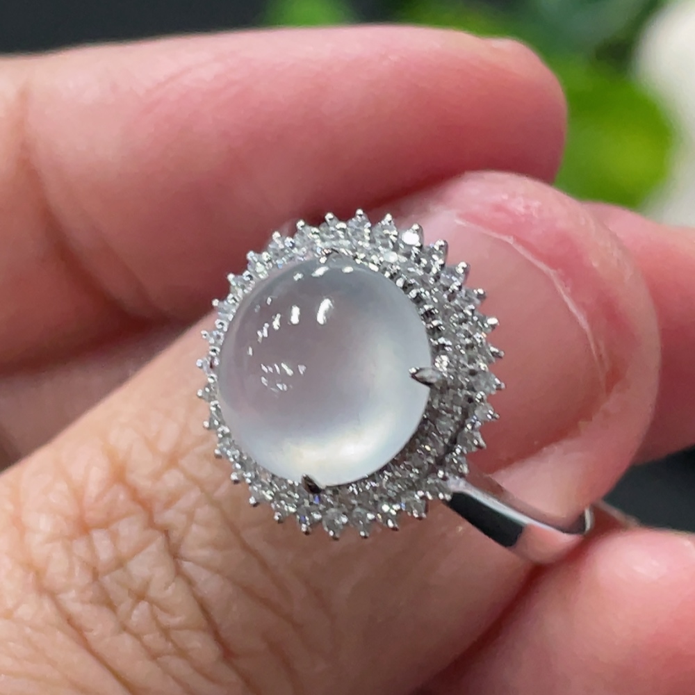 Jadeite Cabochon Ring with 18K Gold Setting, Size 14, Total Weight Approx. 3.17g, Accented with Diamonds