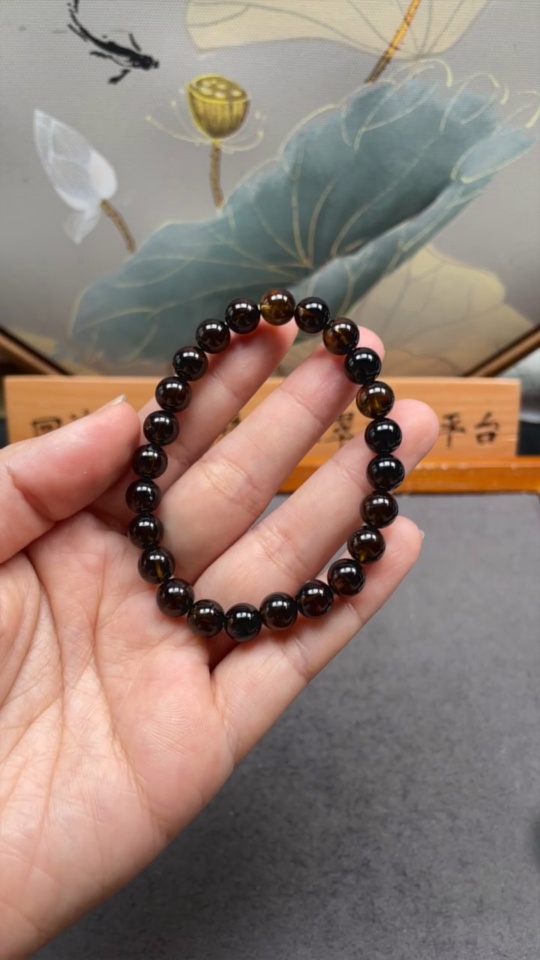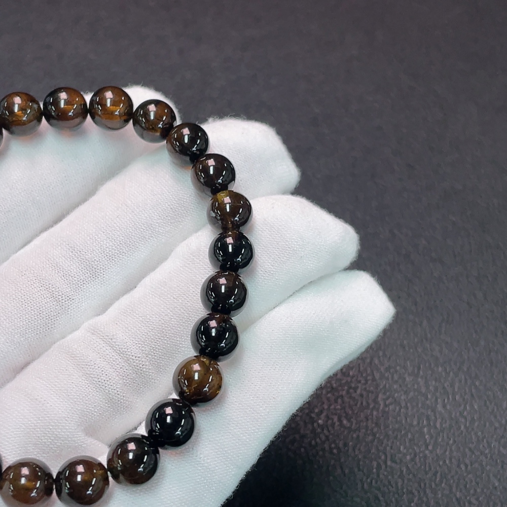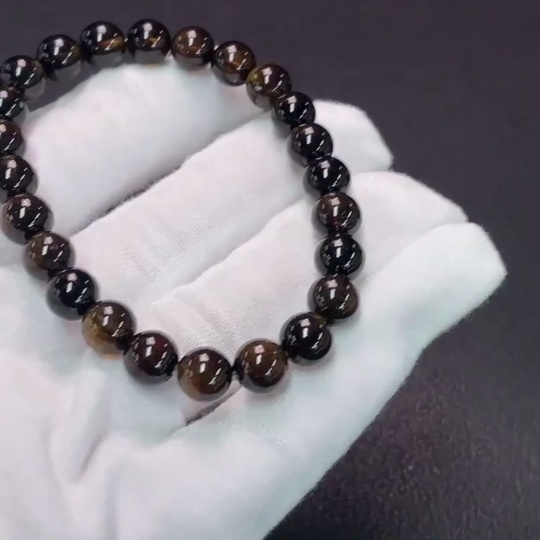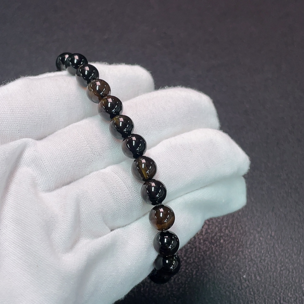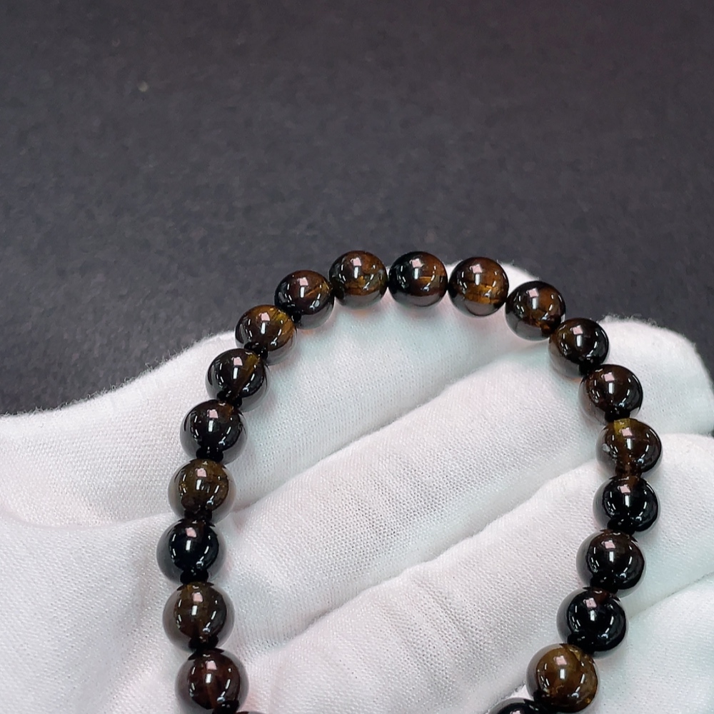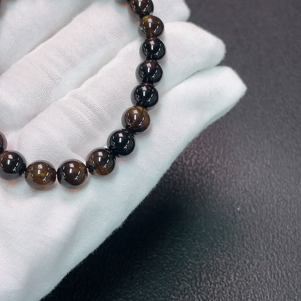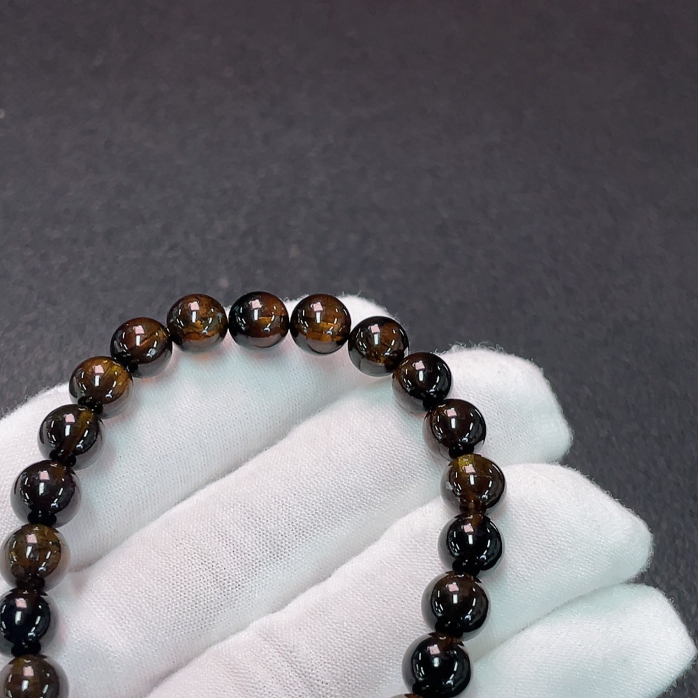 Tourmaline Bracelet with Visible Organic Inclusions, Total Weight Approx. 17.32g, Bead Size About 7.5mm