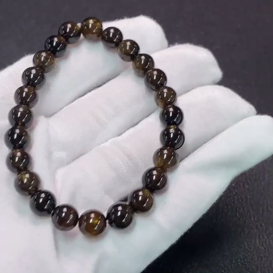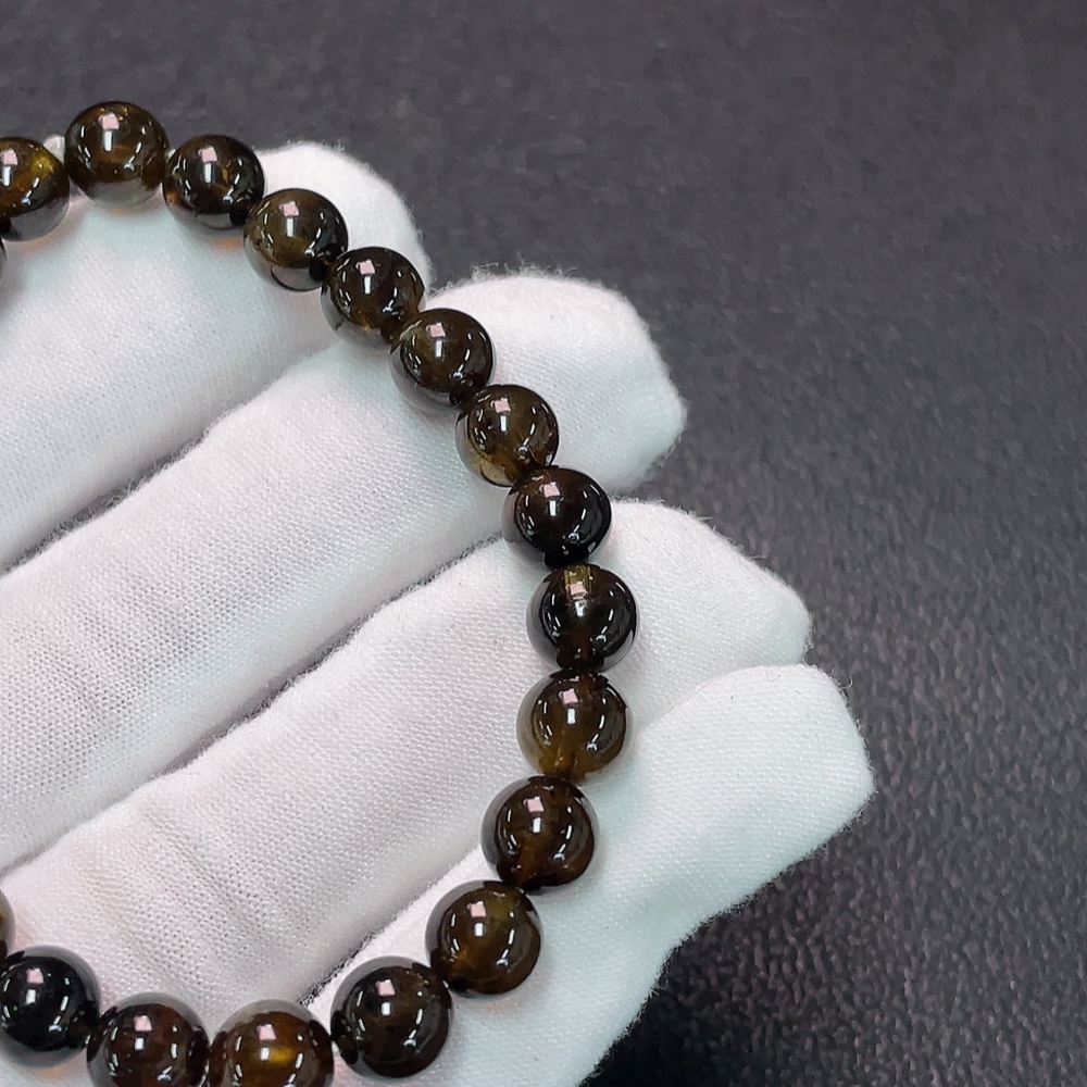 Tourmaline Bracelet with Visible Organic Matter, Total Weight Approx. 16.84g, Size About 7.6mm