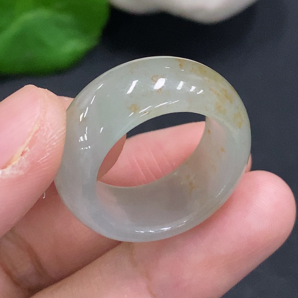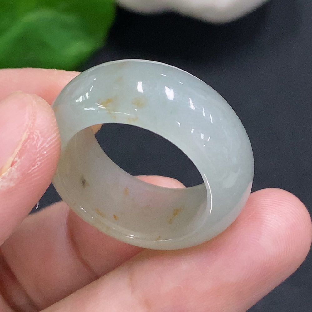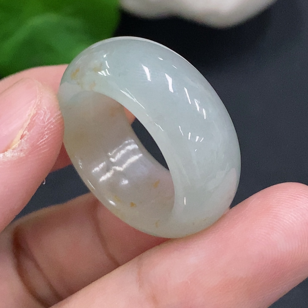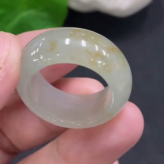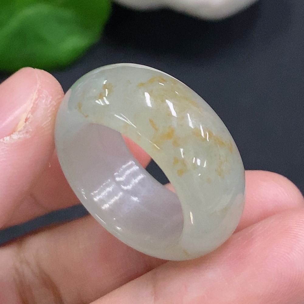 Jadeite ring size 20, total weight approximately 9.2g (yellow color origin undetermined)
