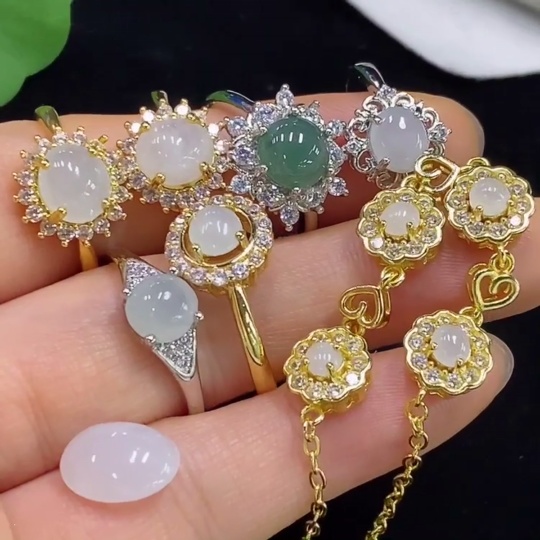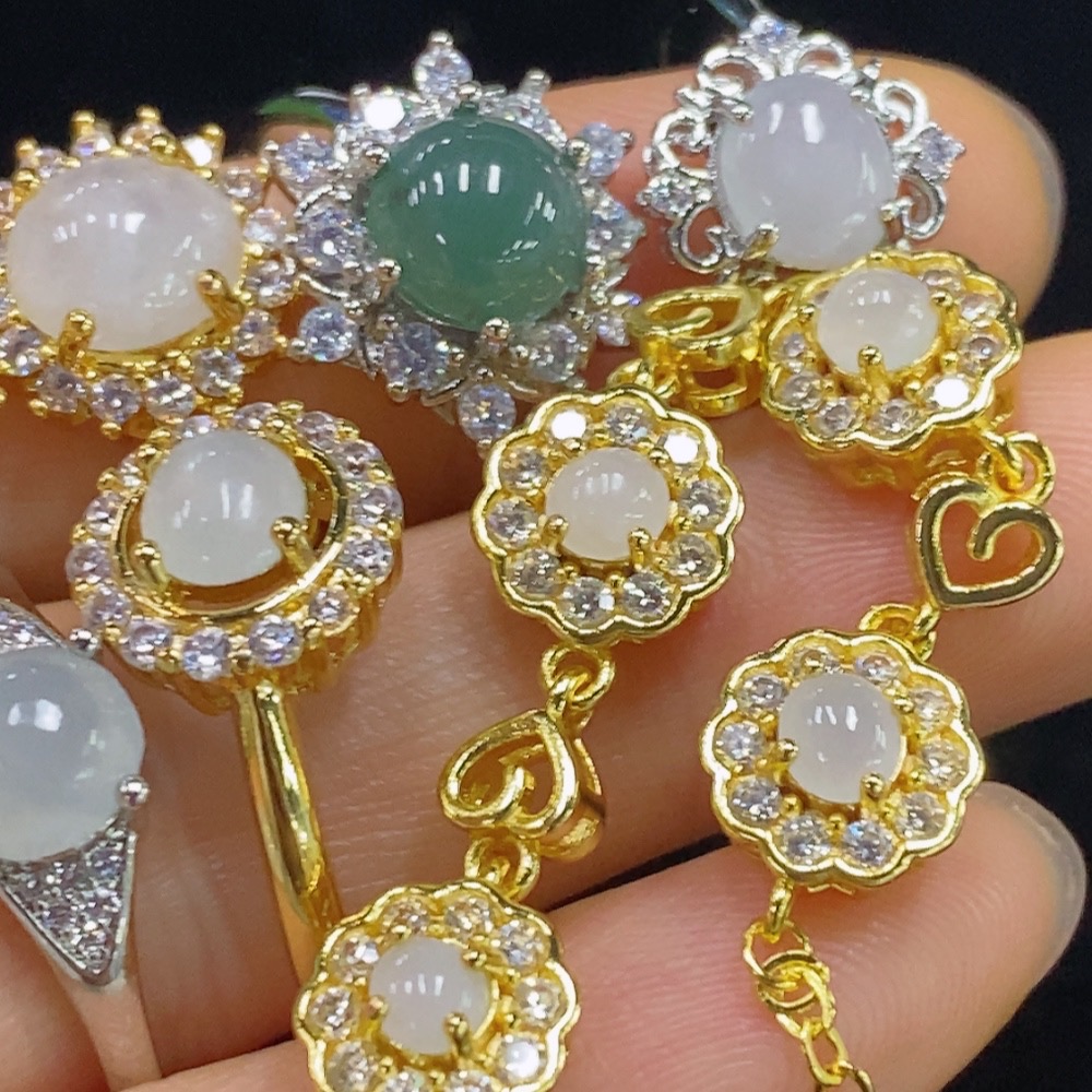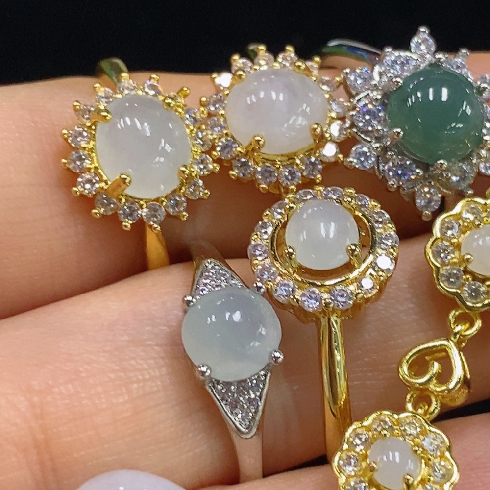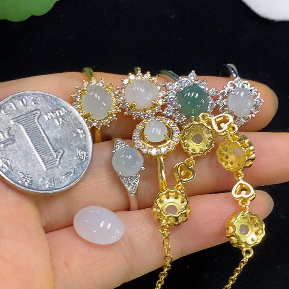 Jadeite cabochon inlaid piece/bracelet/ring non-metal adjustable