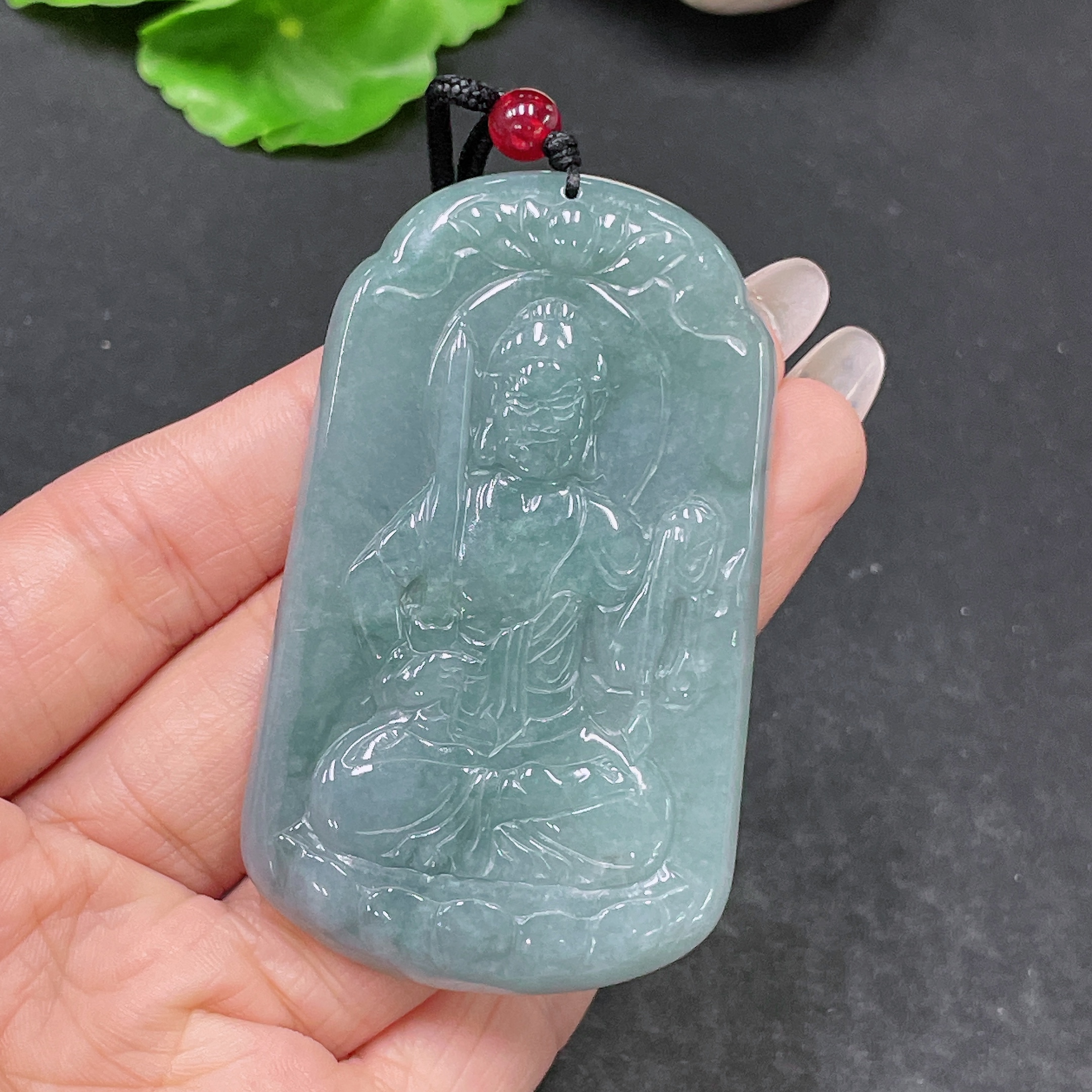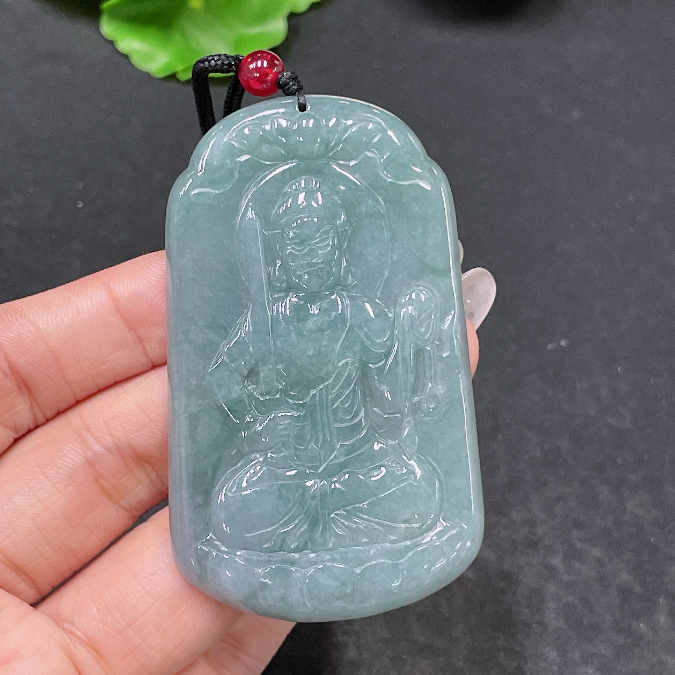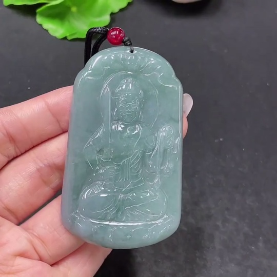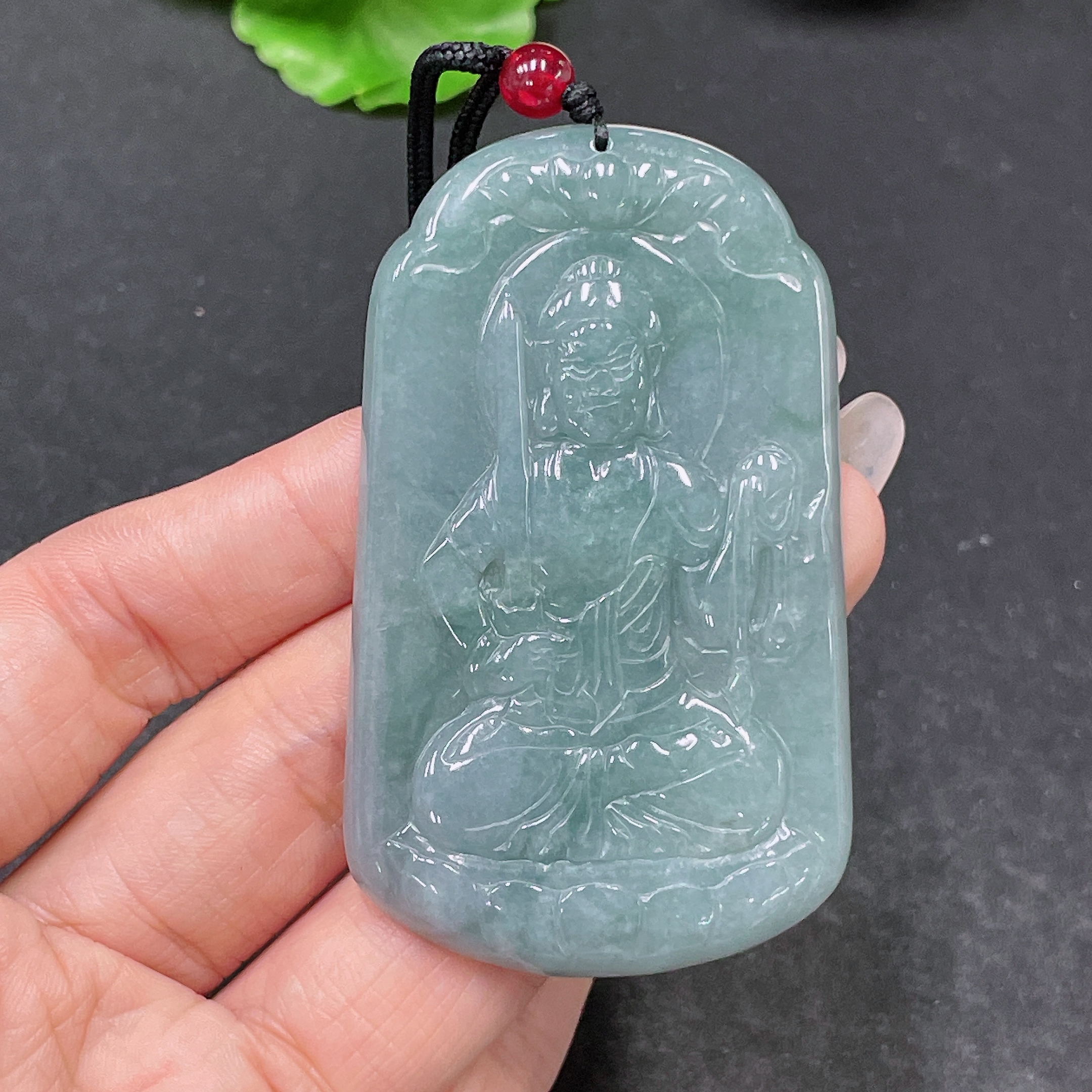 Jadeite Pendant Fudo Myoo with Non-Grade A Beads and Cord Total Weight Approx. 37.05g