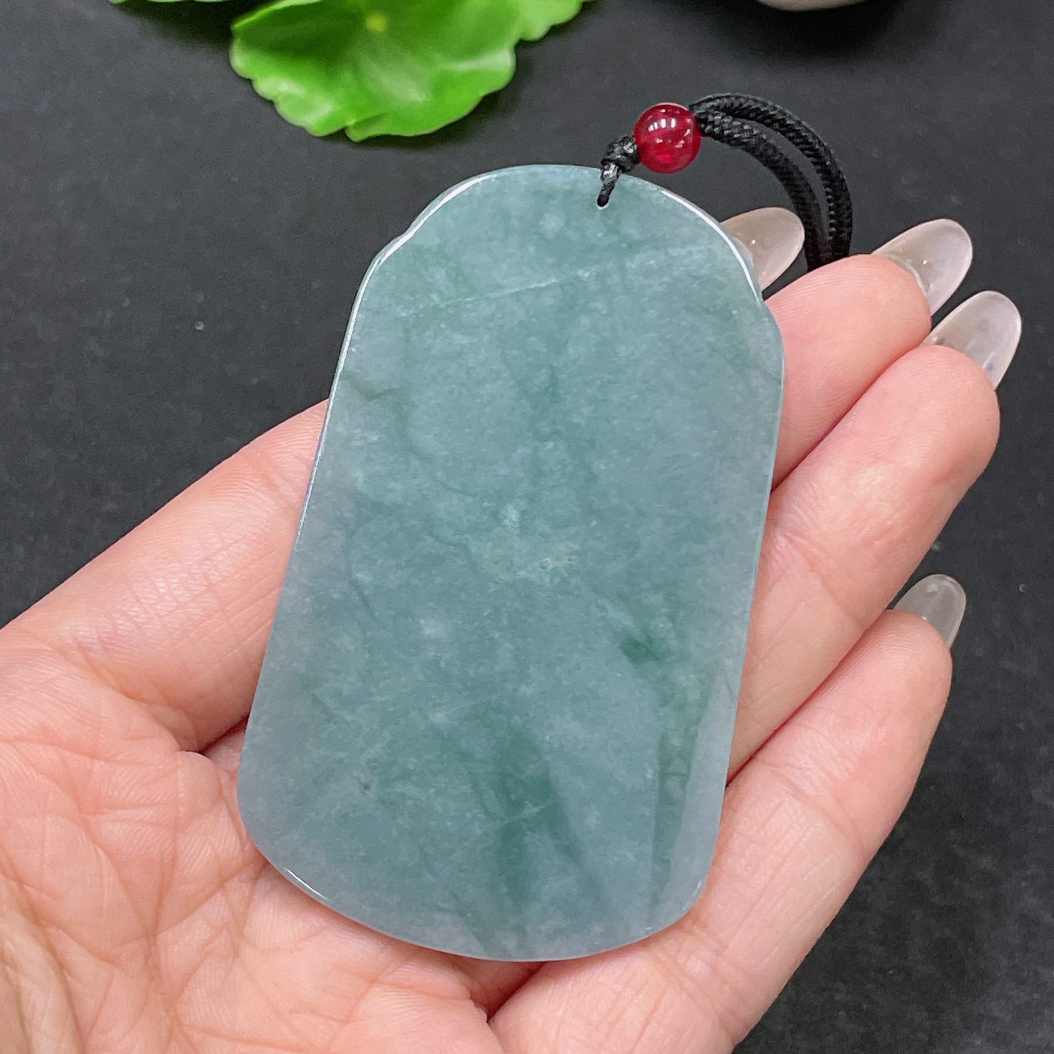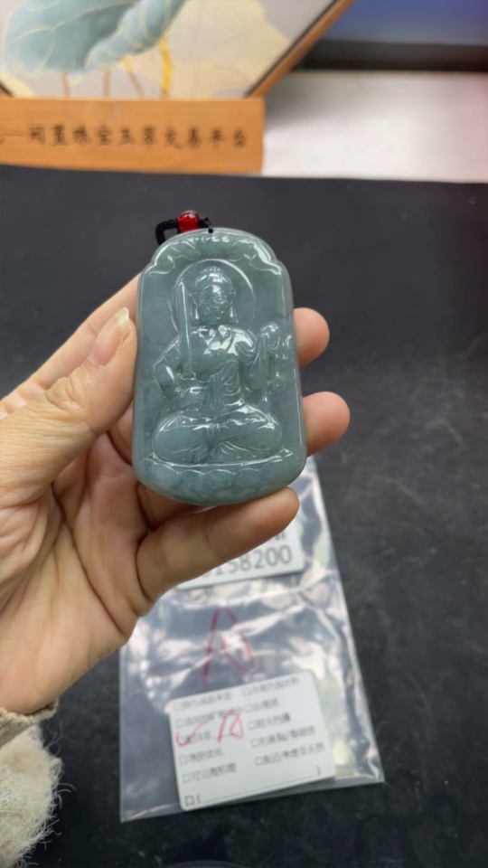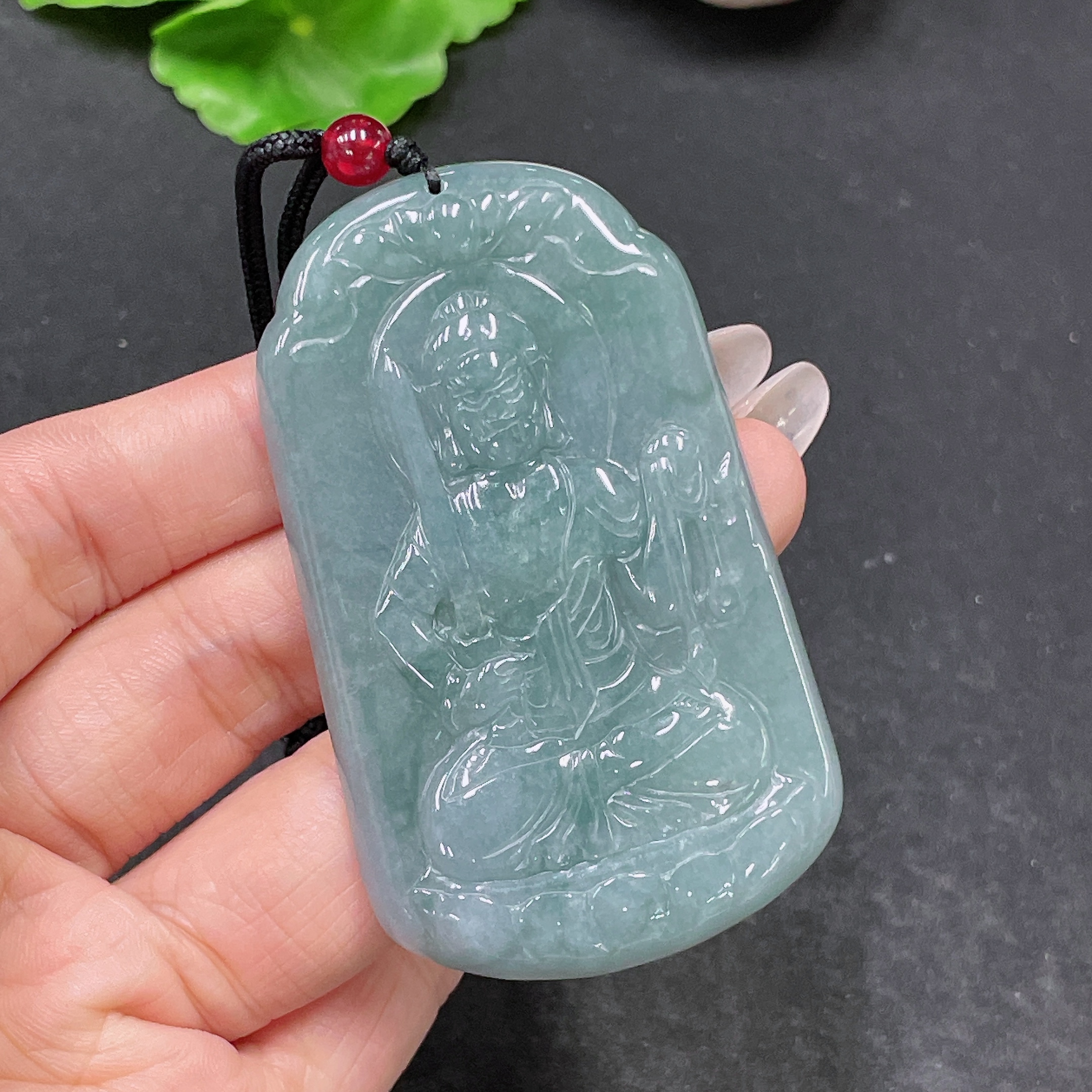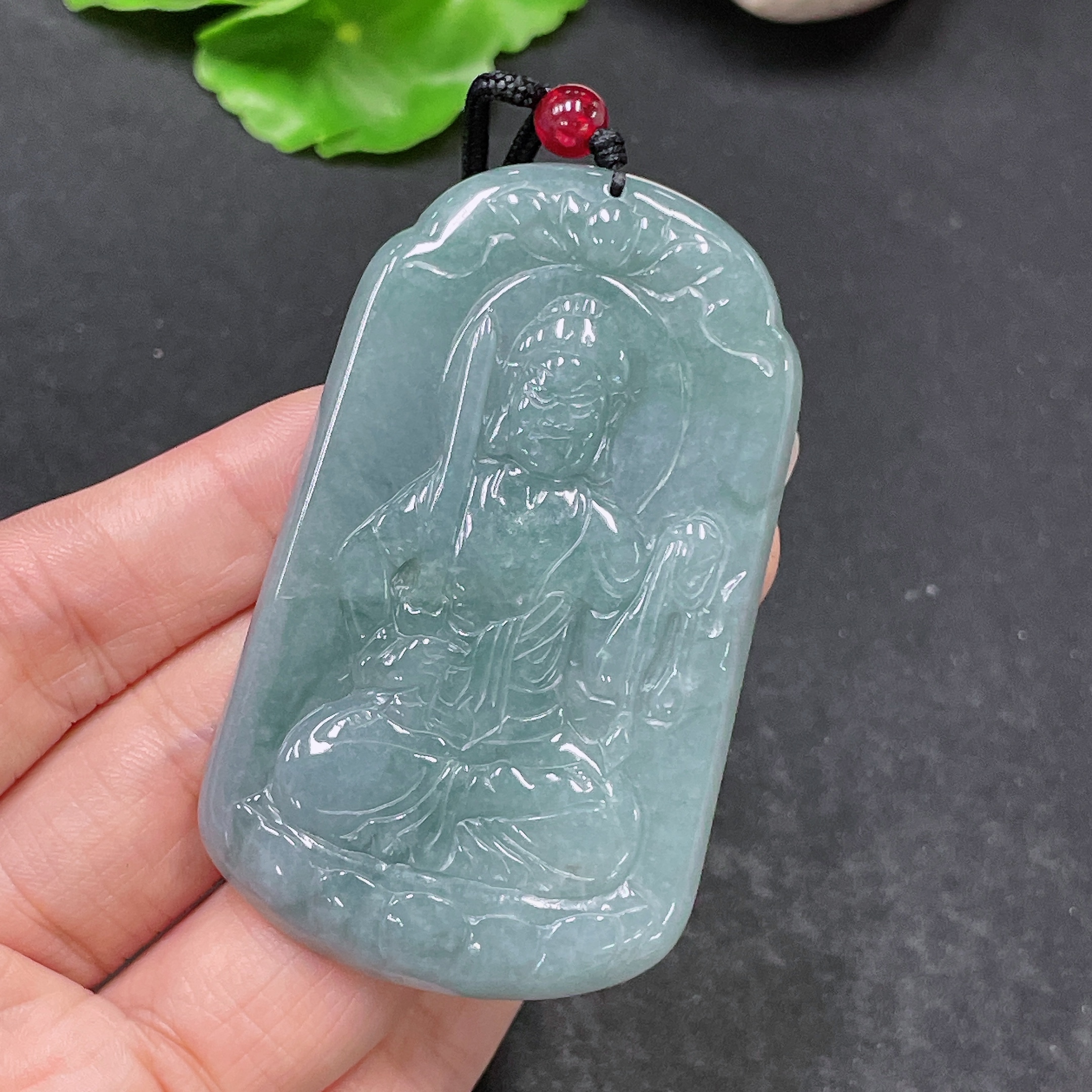 Jadeite Pendant Fudo Myoo with Non-Grade A Beads and Cord Total Weight Approx. 37.05g