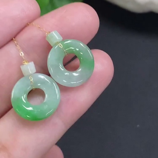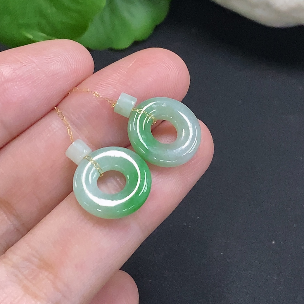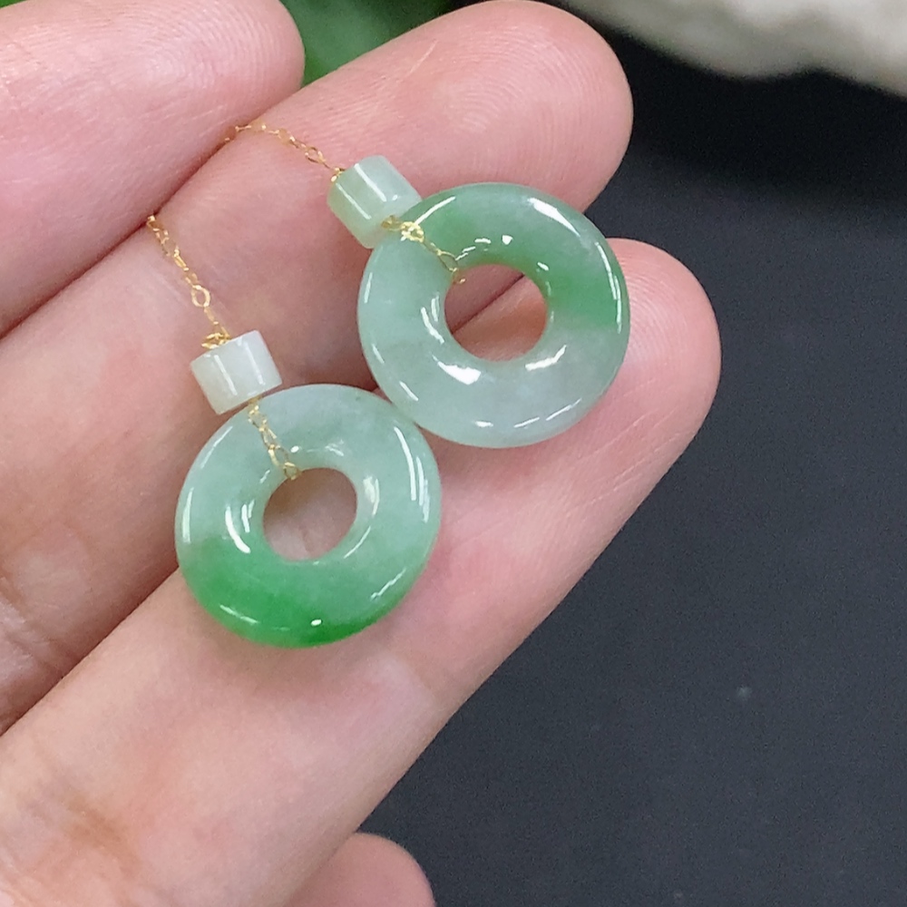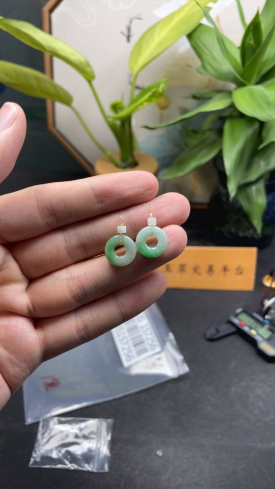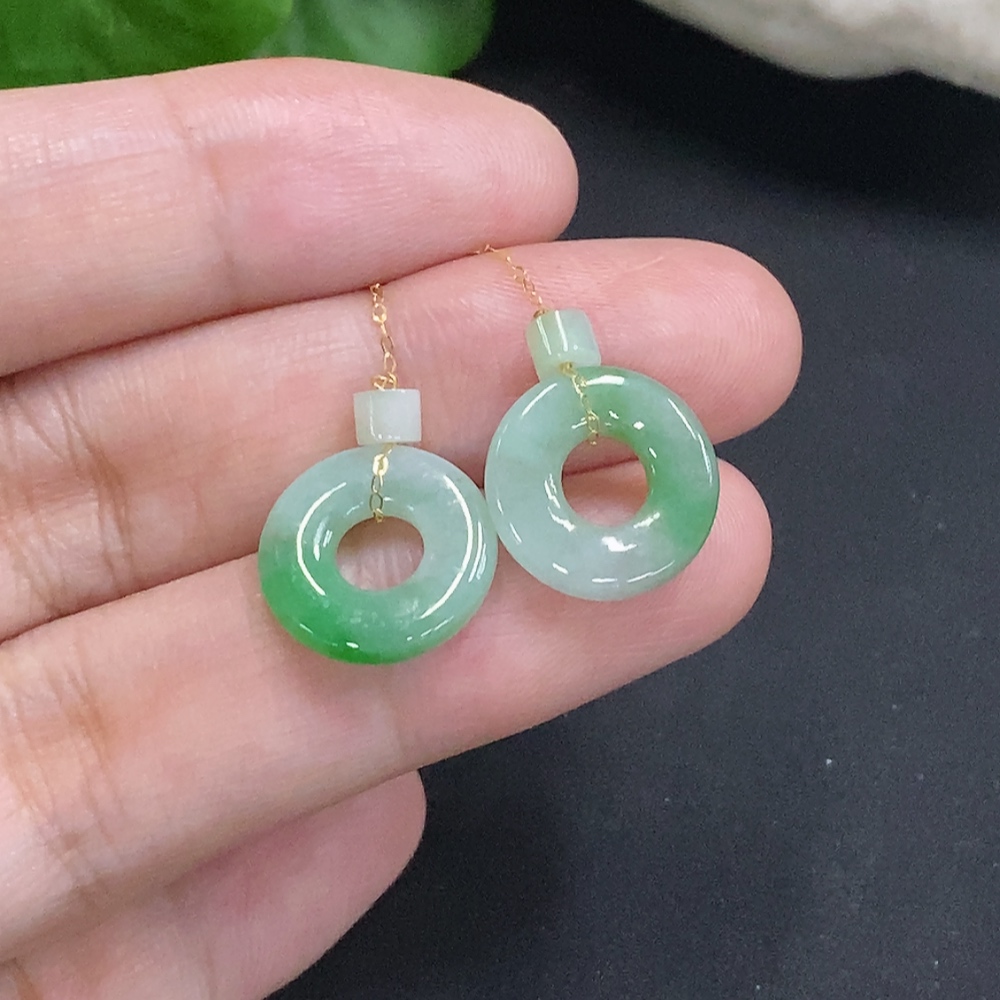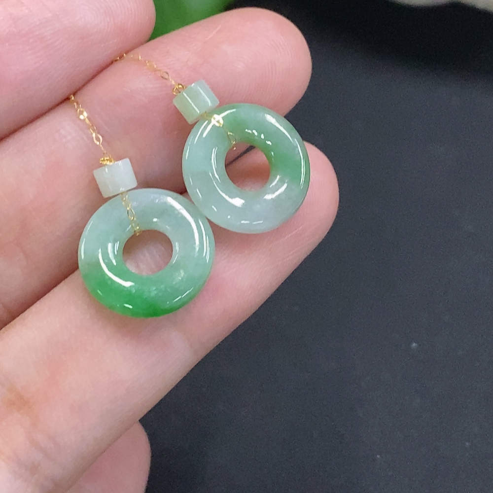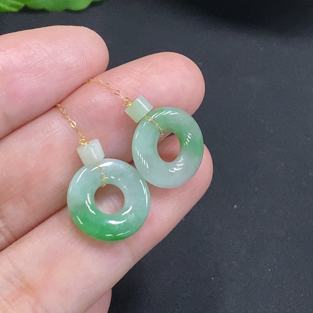 Jadeite ear studs with 18K gold mounting, total weight approximately 2.1g (excluding ear stoppers)