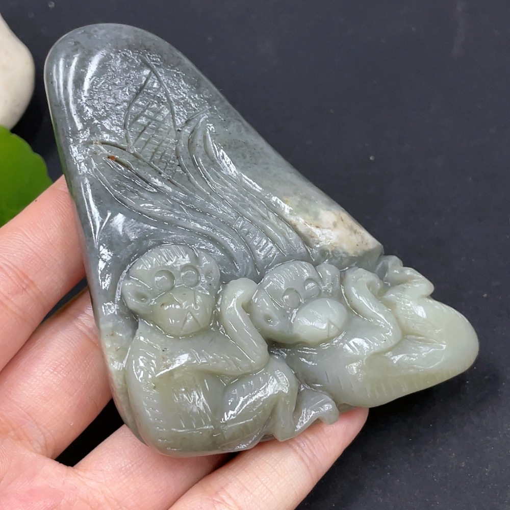 Hetian Jade Handheld Piece - Spirit Monkey - Total Weight Approx. 174g