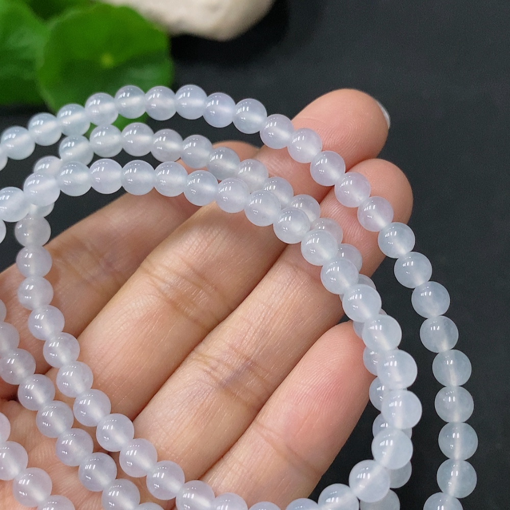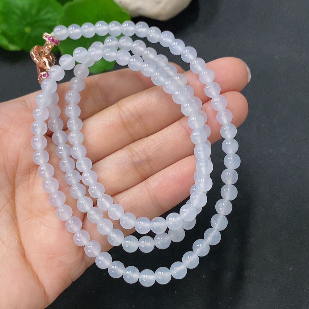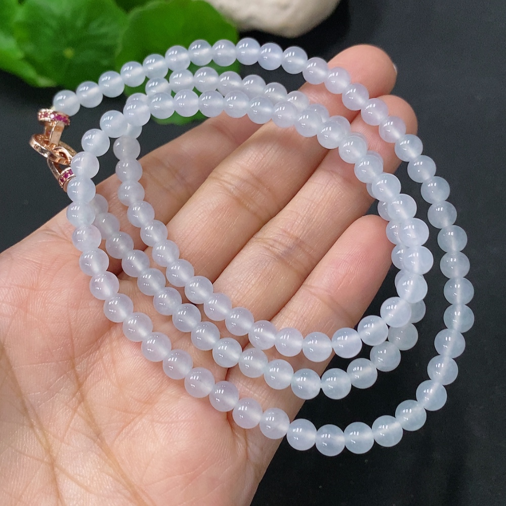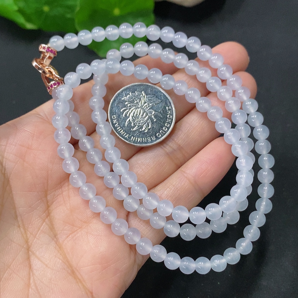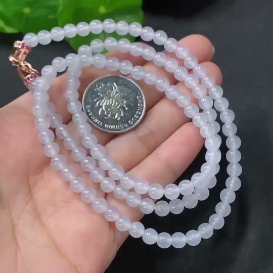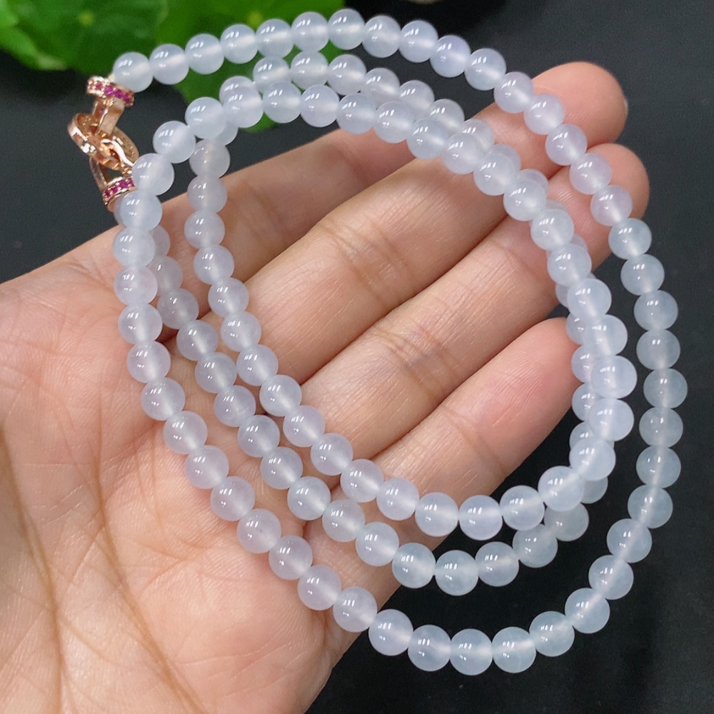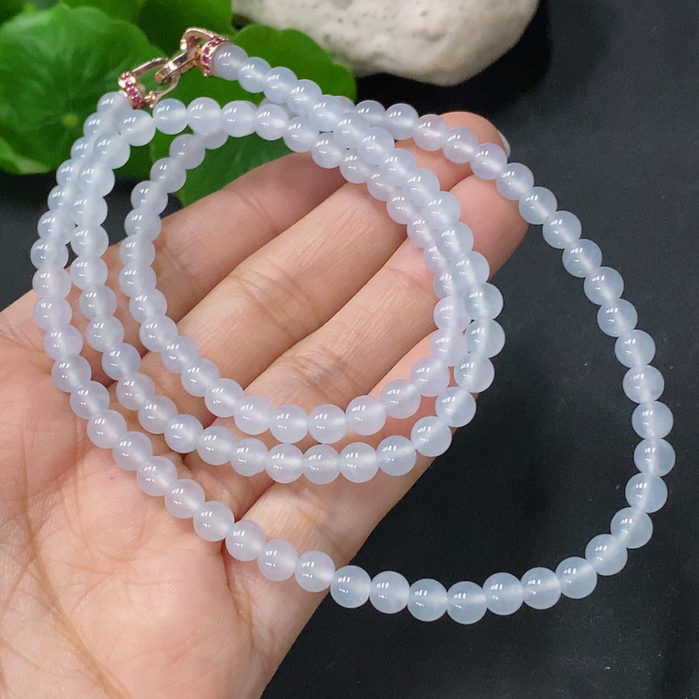 Jadeite Bead Necklace Approx. 5mm Non-Gold Total Weight Approx. 26.26g