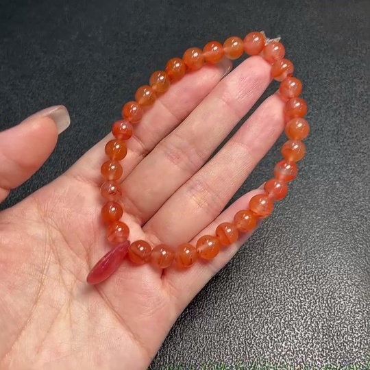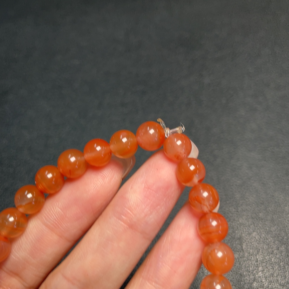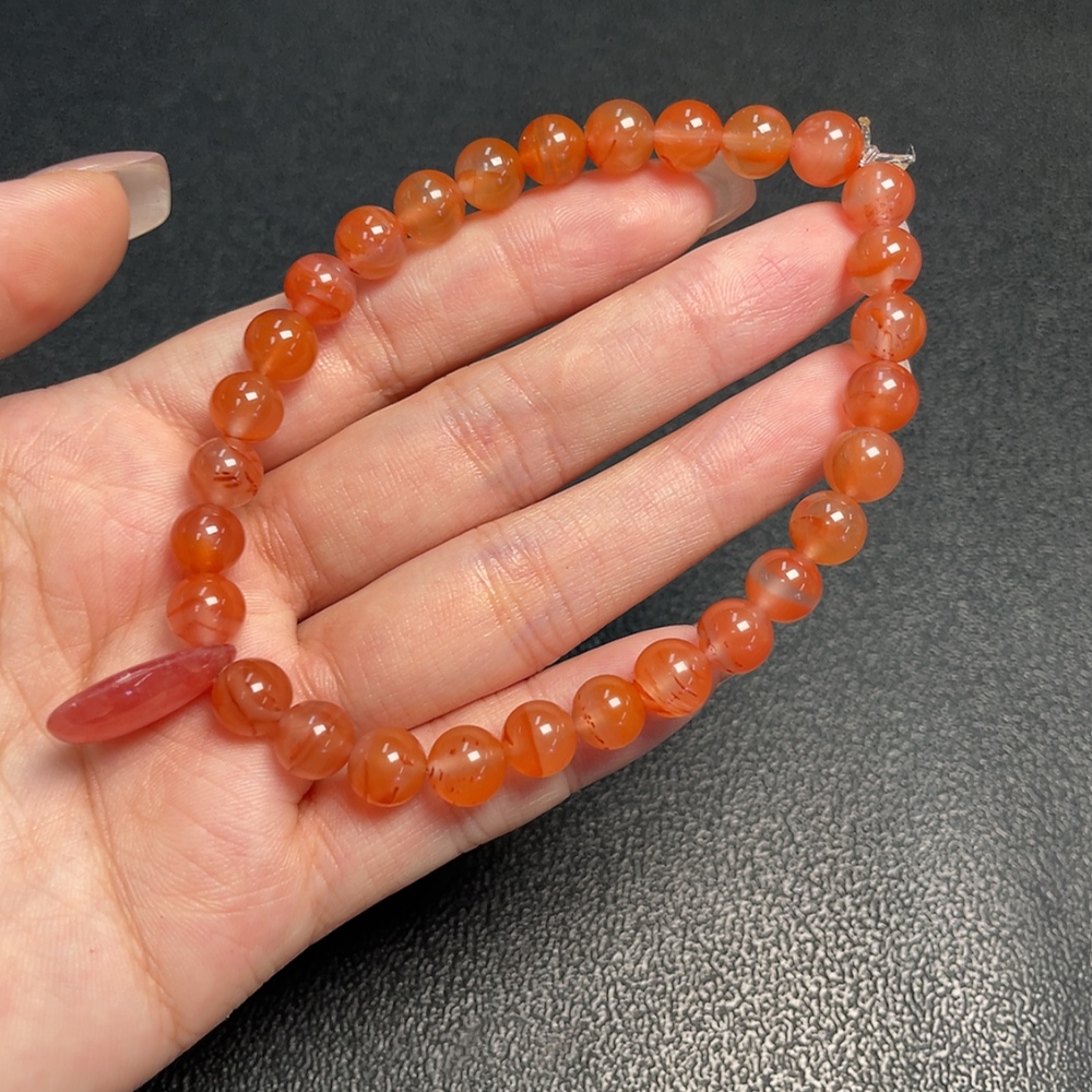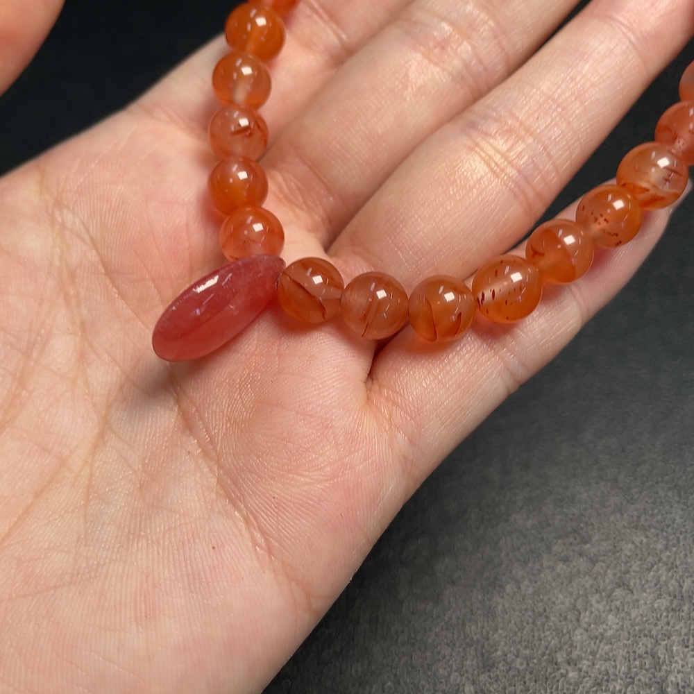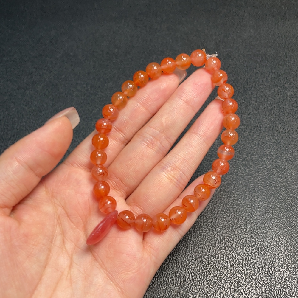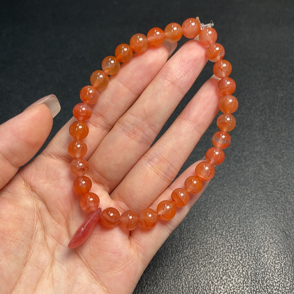 Red Agate Bracelet with Visible Organic Matter, Total Weight Approx. 20.42g, Size 7.5mm, Paired with Rhodochrosite
