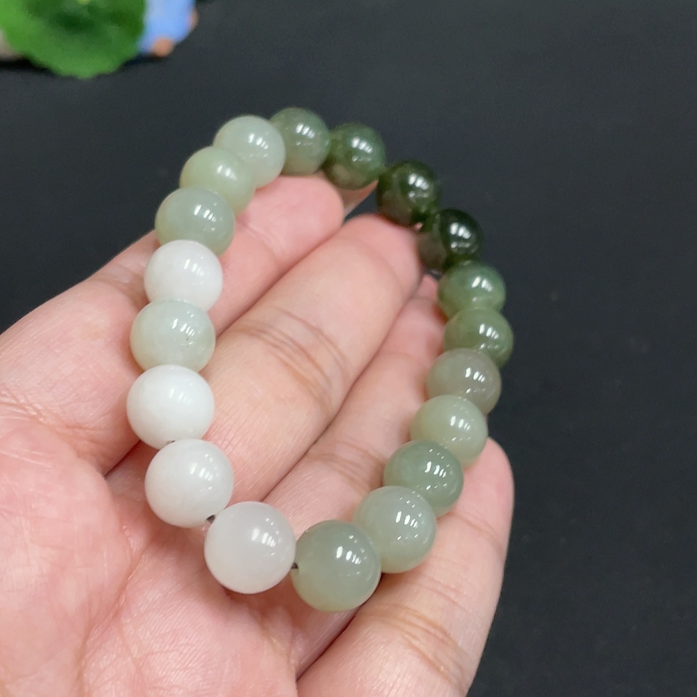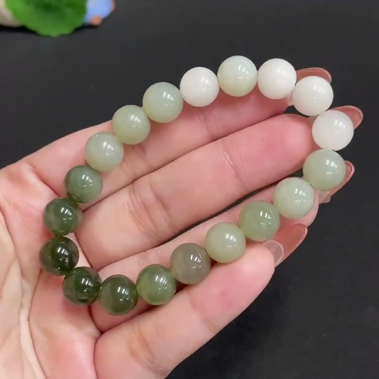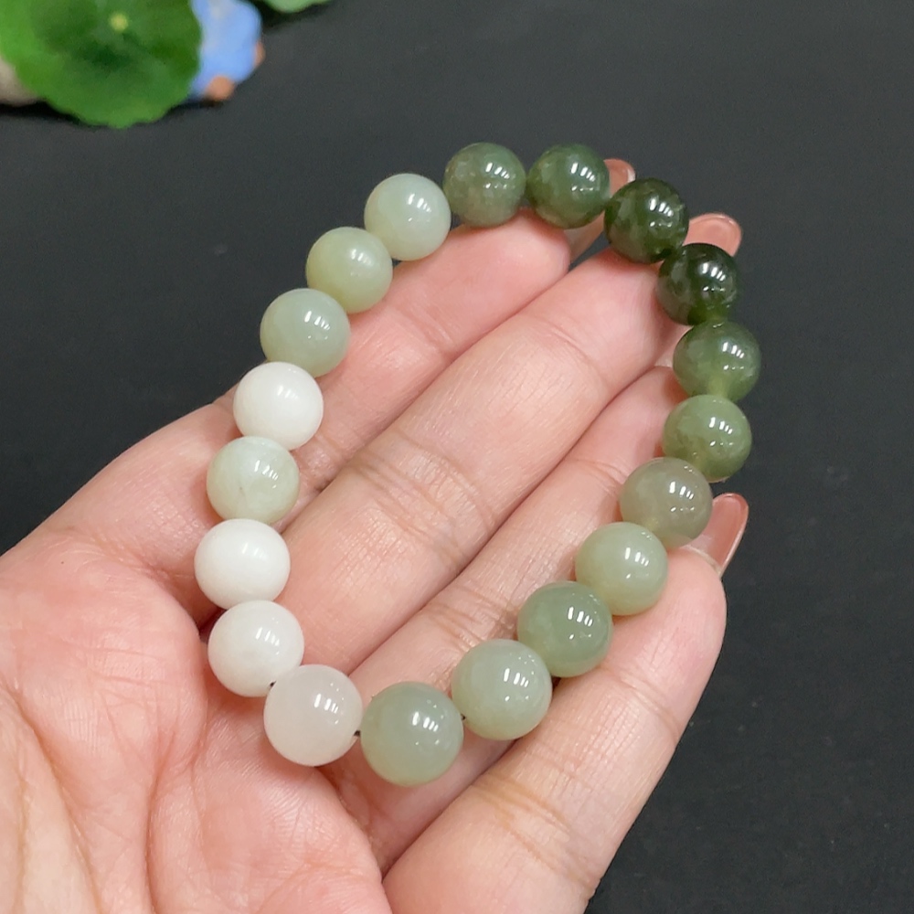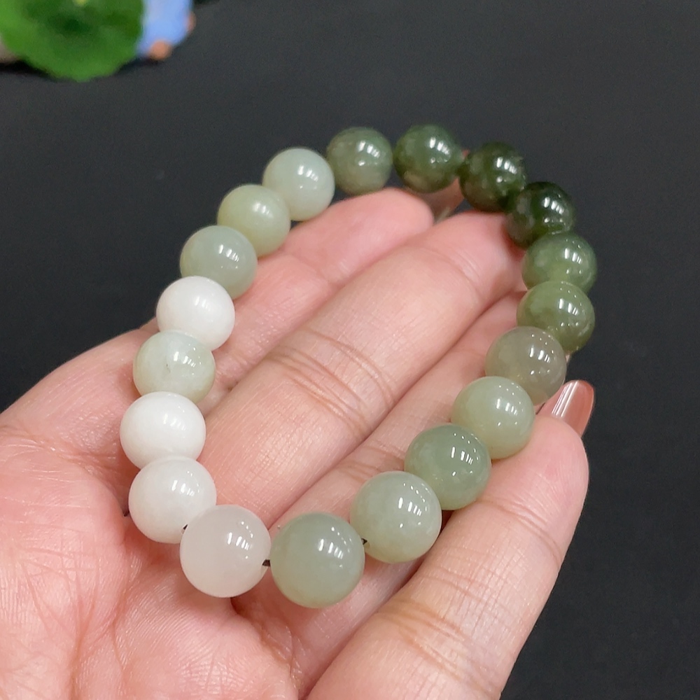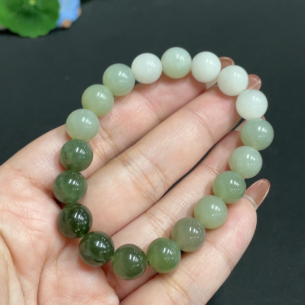 Hetian Jade Bracelet, Approx. 9.7 mm Beads, Containing Other Mineral Components, Total Weight Approx. 29.2g