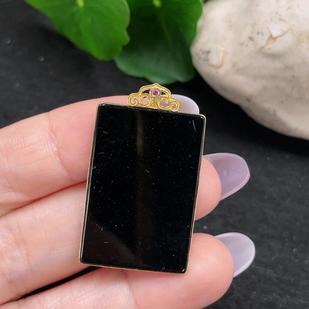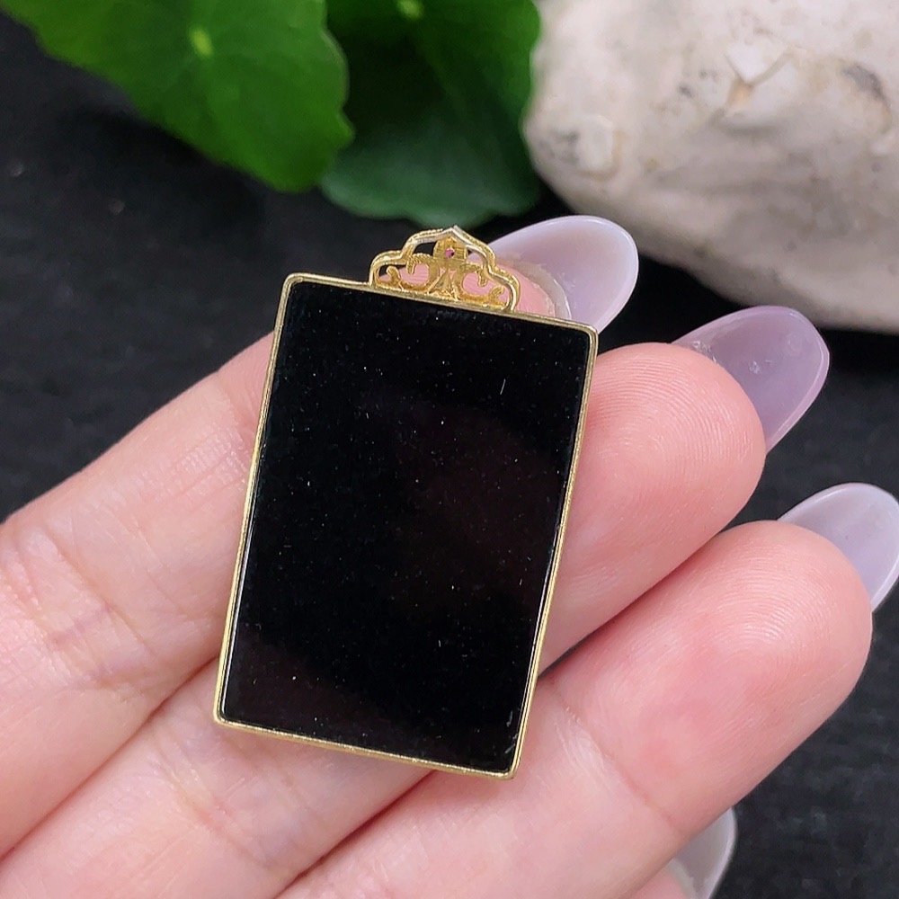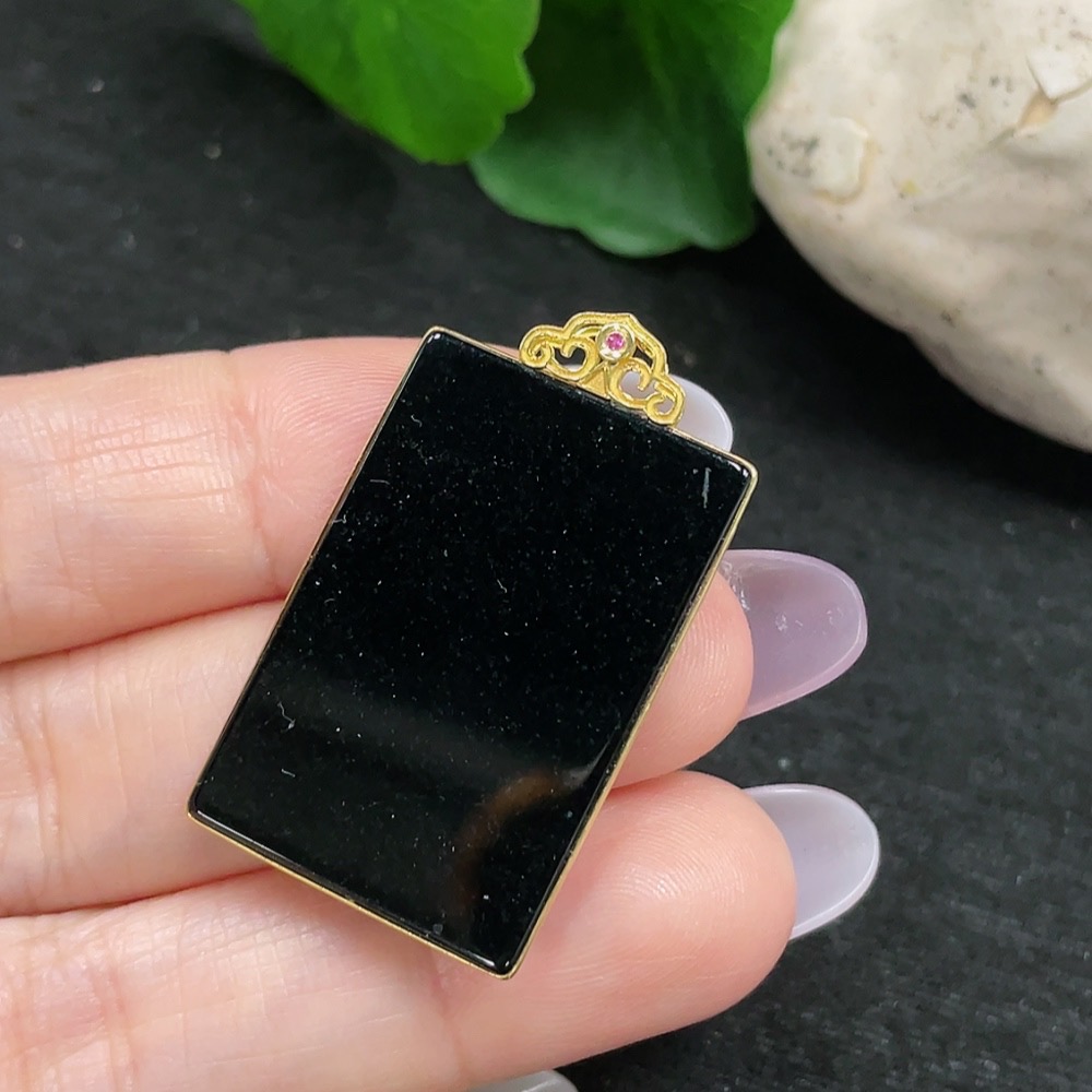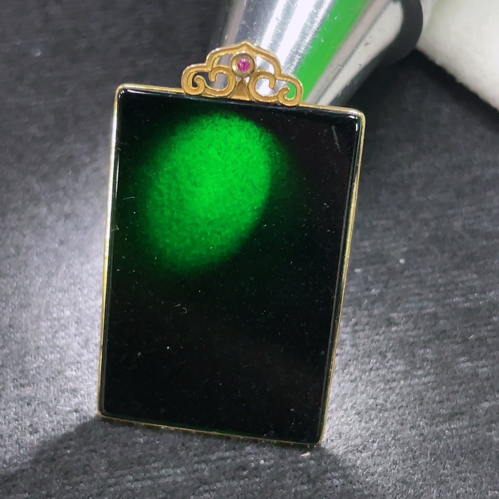 Jadeite Inlaid Pendant, No Imprint, Surface Gold Content 64%, Total Weight Approximately 2.5g
