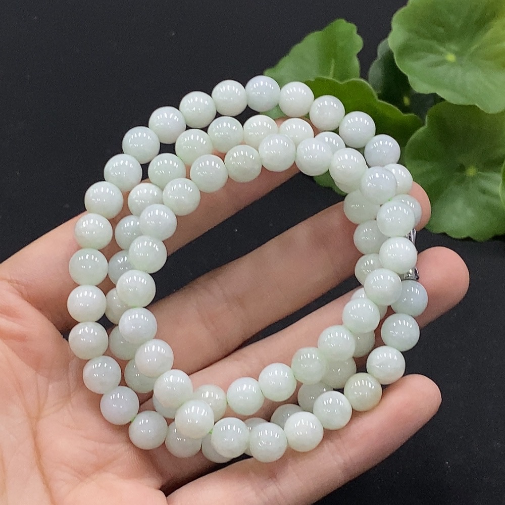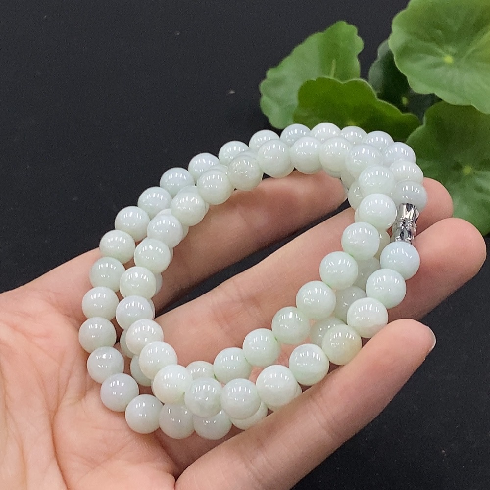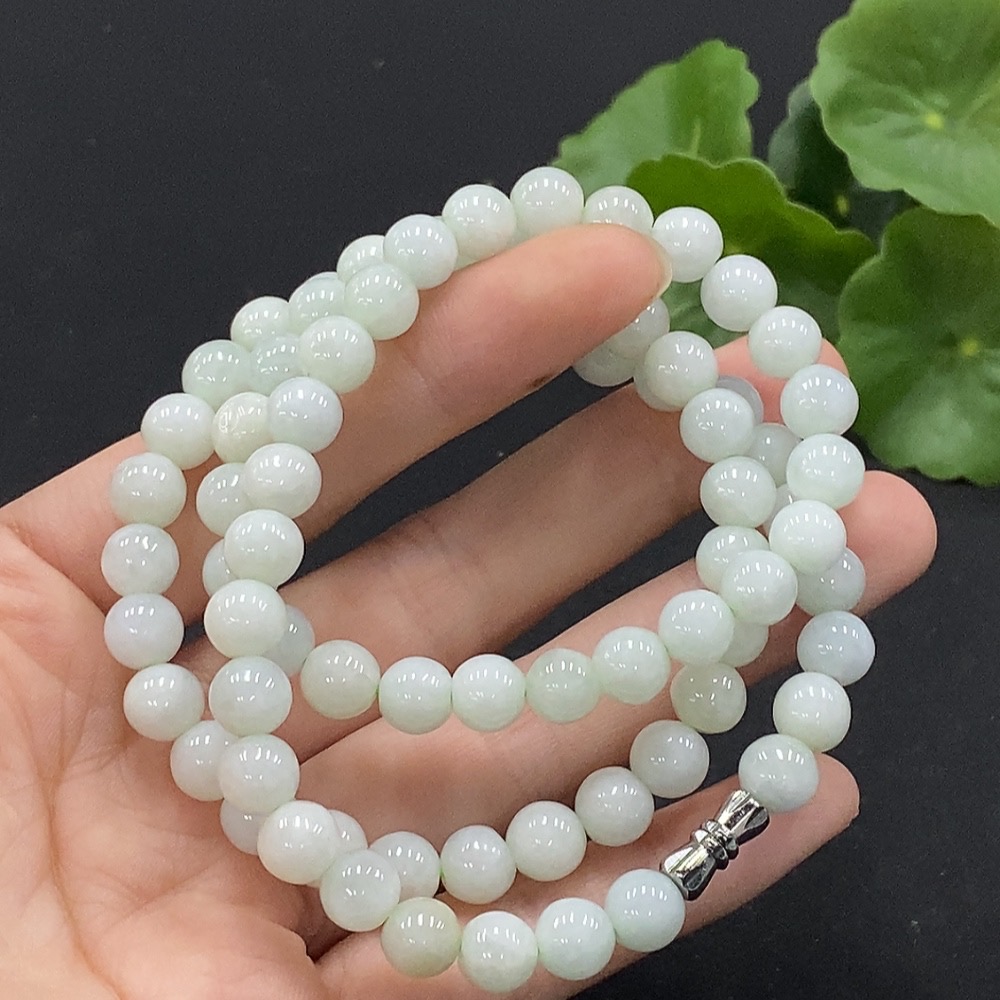 Jadeite Bead Necklace Approx. 7.4mm Total Weight Approx. 51.24g