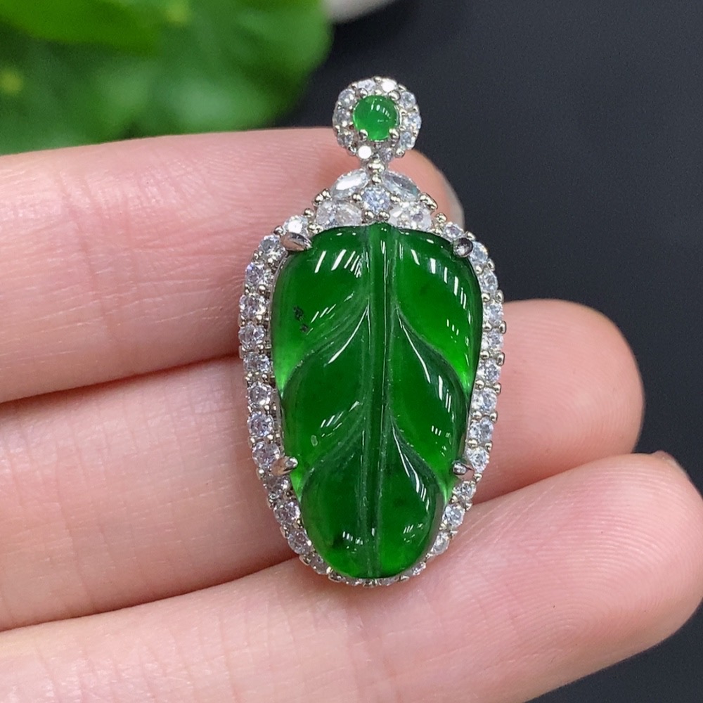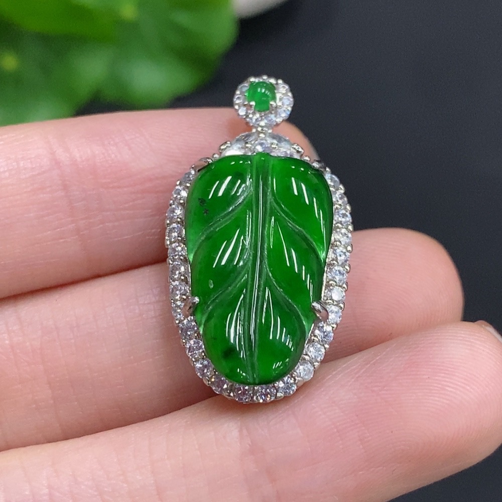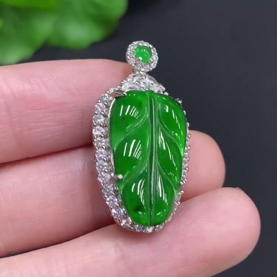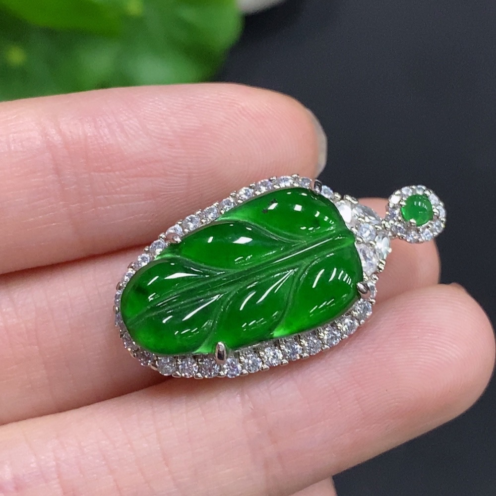 Jadeite Leaf Pendant Non-Gold Total Weight Approx. 4.6g With Non-Jadeite Beads