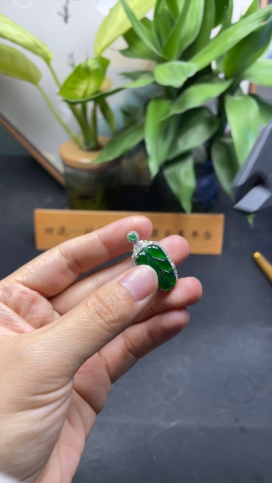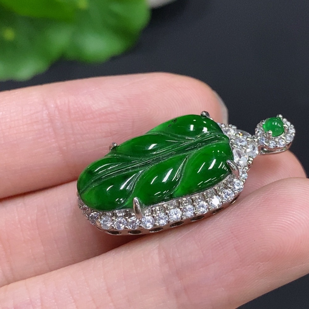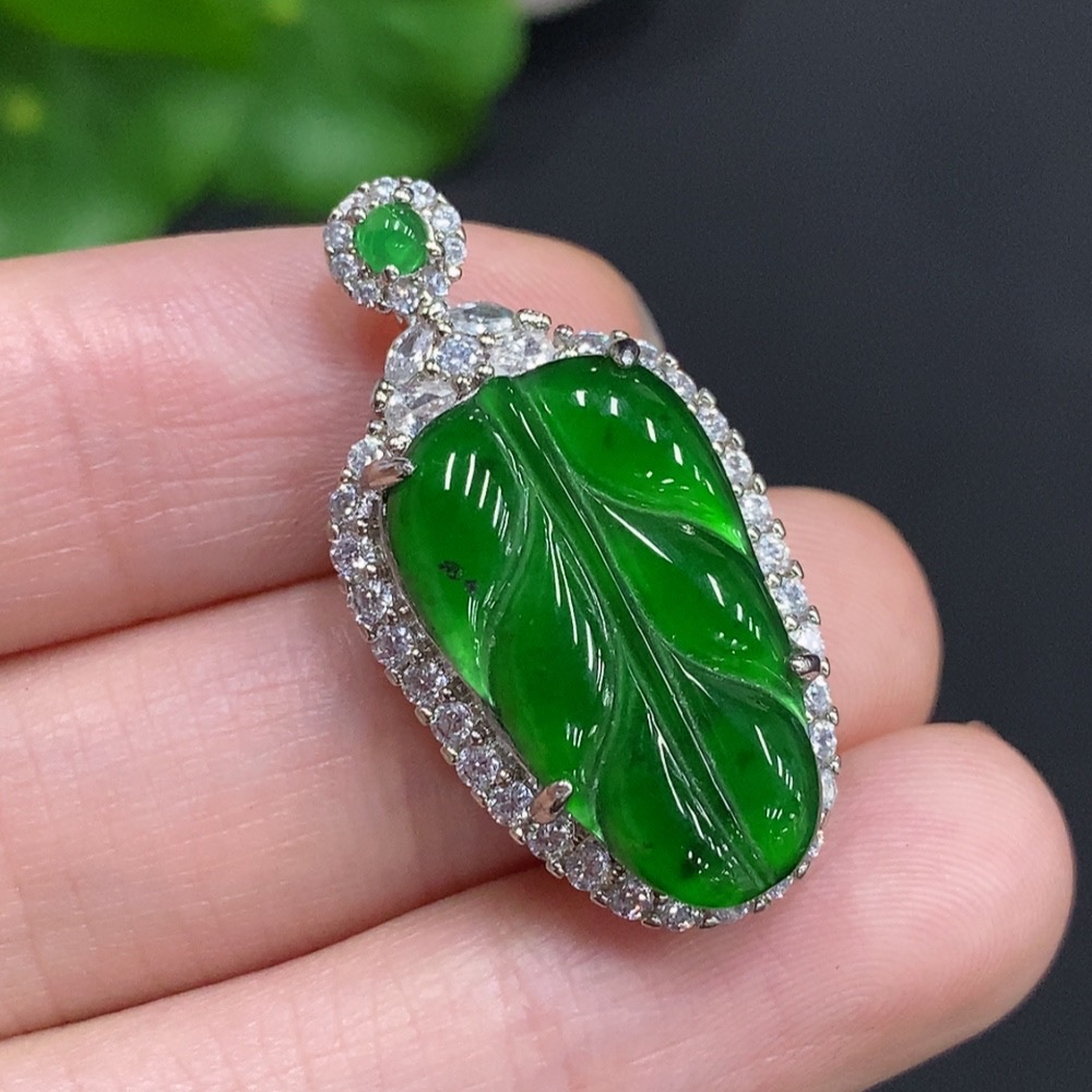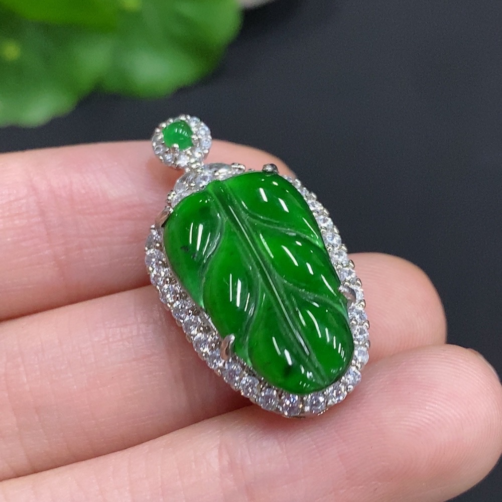 Jadeite Leaf Pendant Non-Gold Total Weight Approx. 4.6g With Non-Jadeite Beads