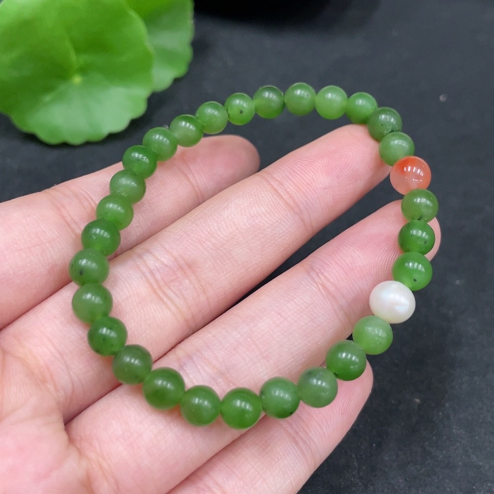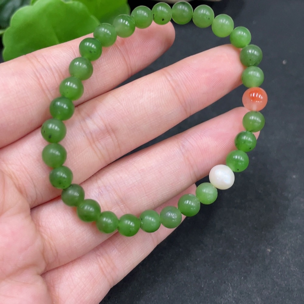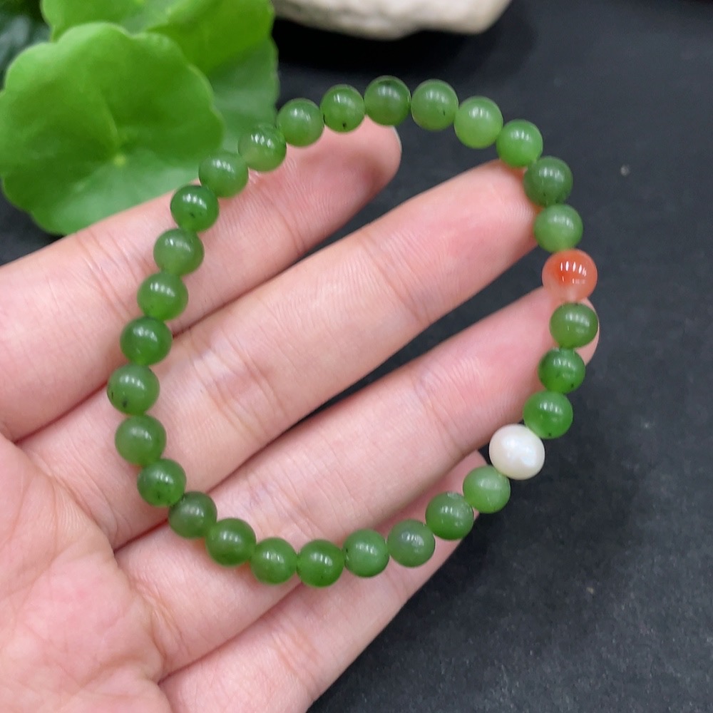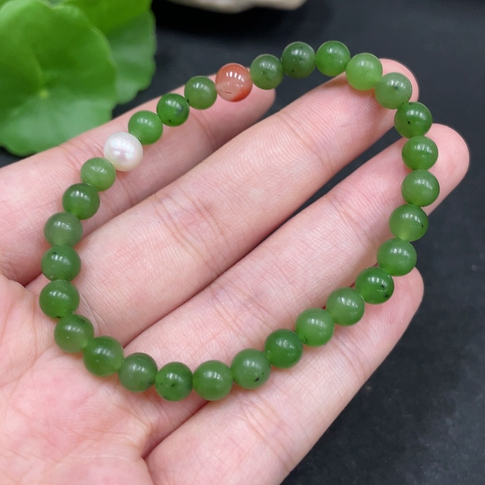 Hetian Jade Bracelet, approx. 5.8mm, total weight approx. 9.4g, non-Hetian Jade beads included