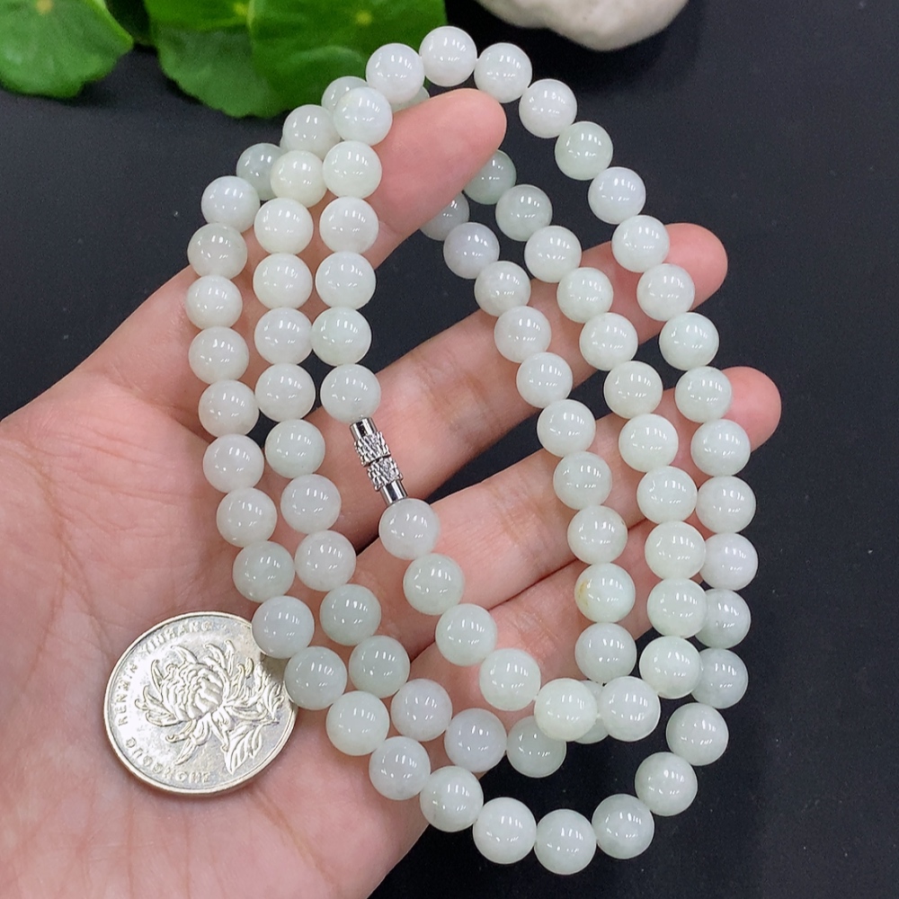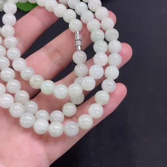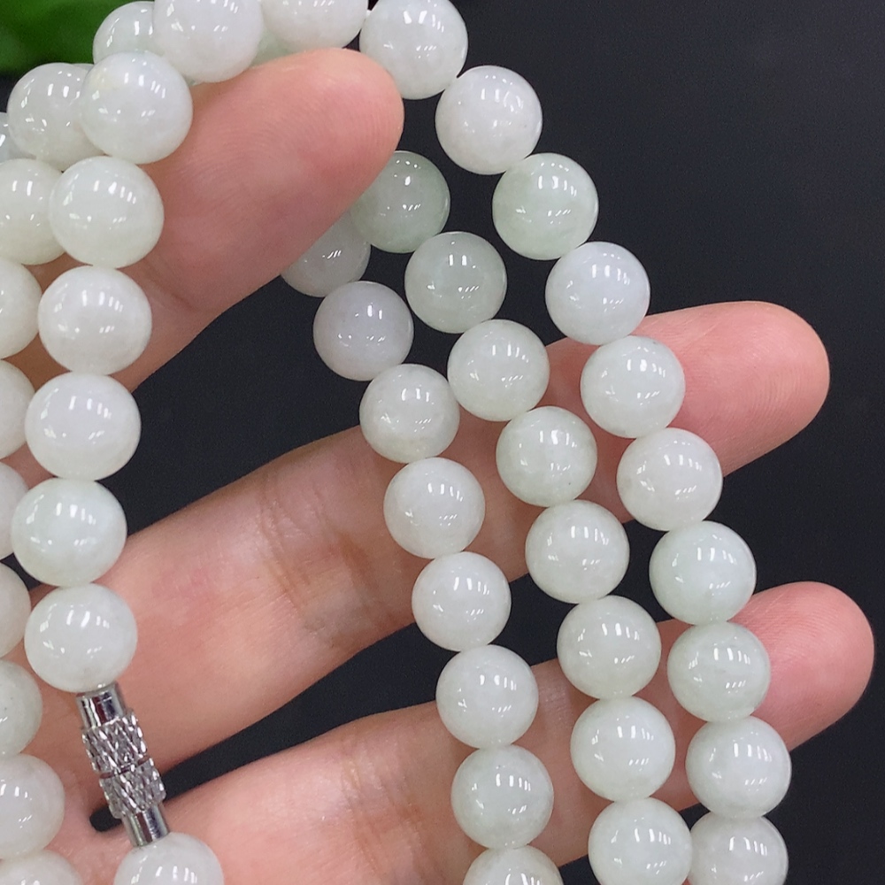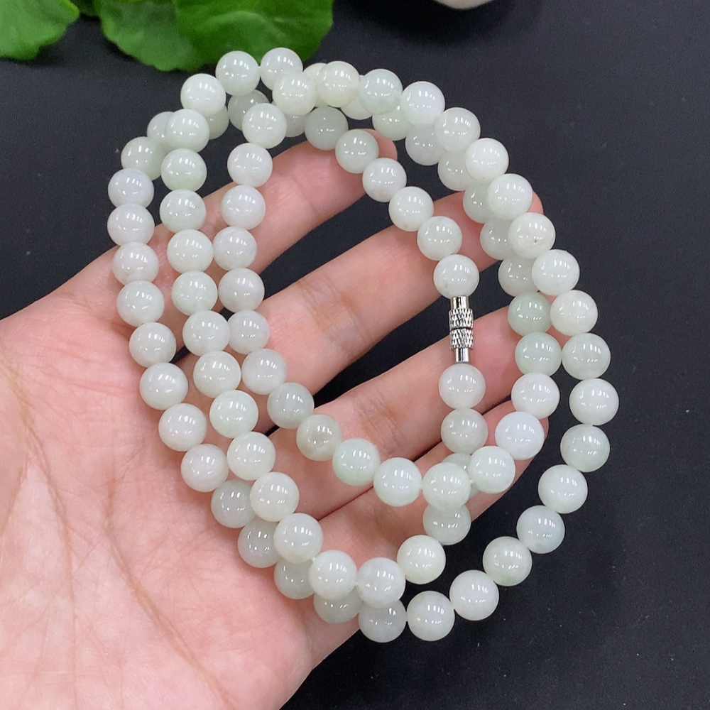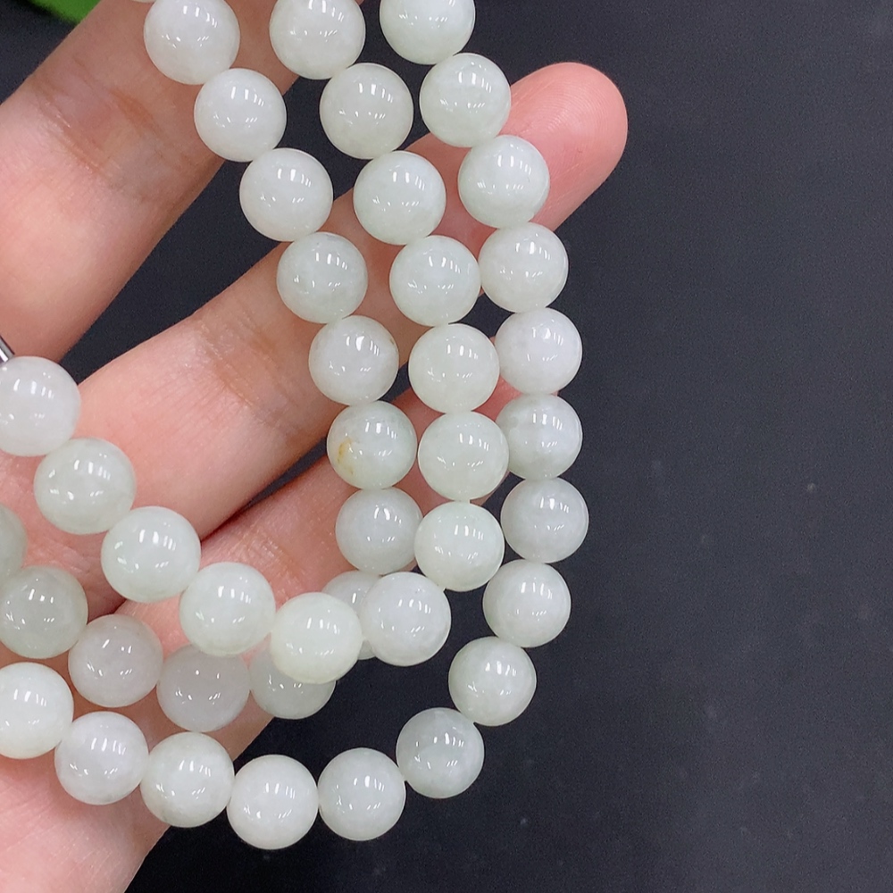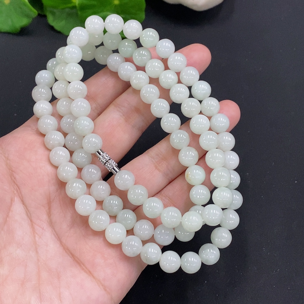 Jadeite Bead Necklace Approx. 7.8mm Non-Gold Total Weight Approx. 80.2g