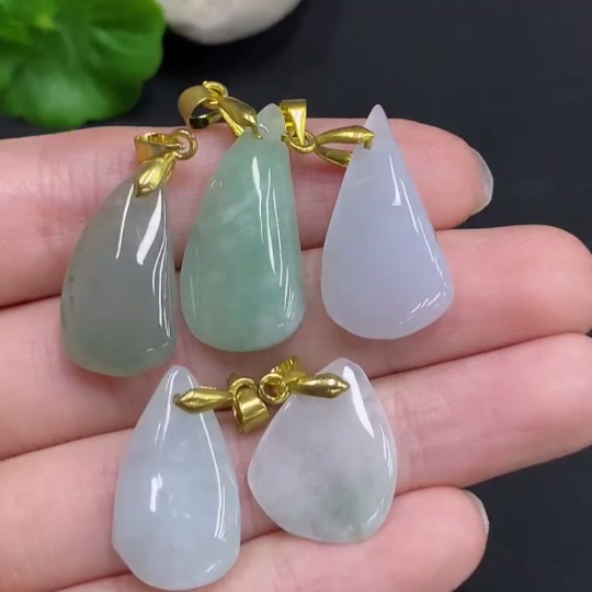 Jadeite Pendants Sell as a Lot Non-Gold Inlaid