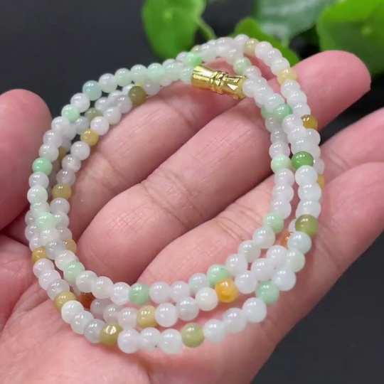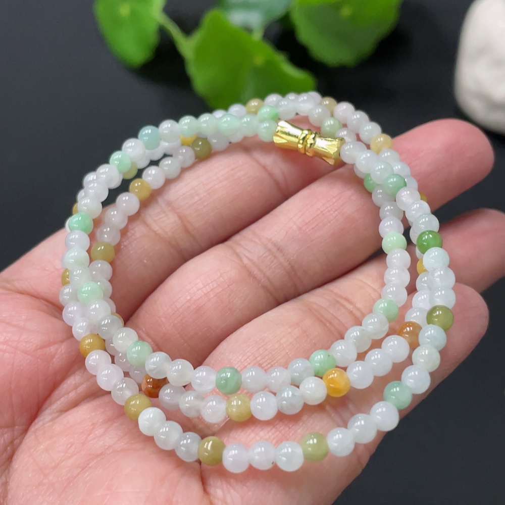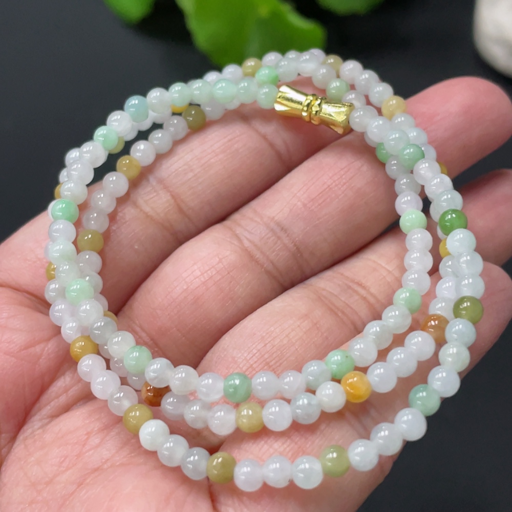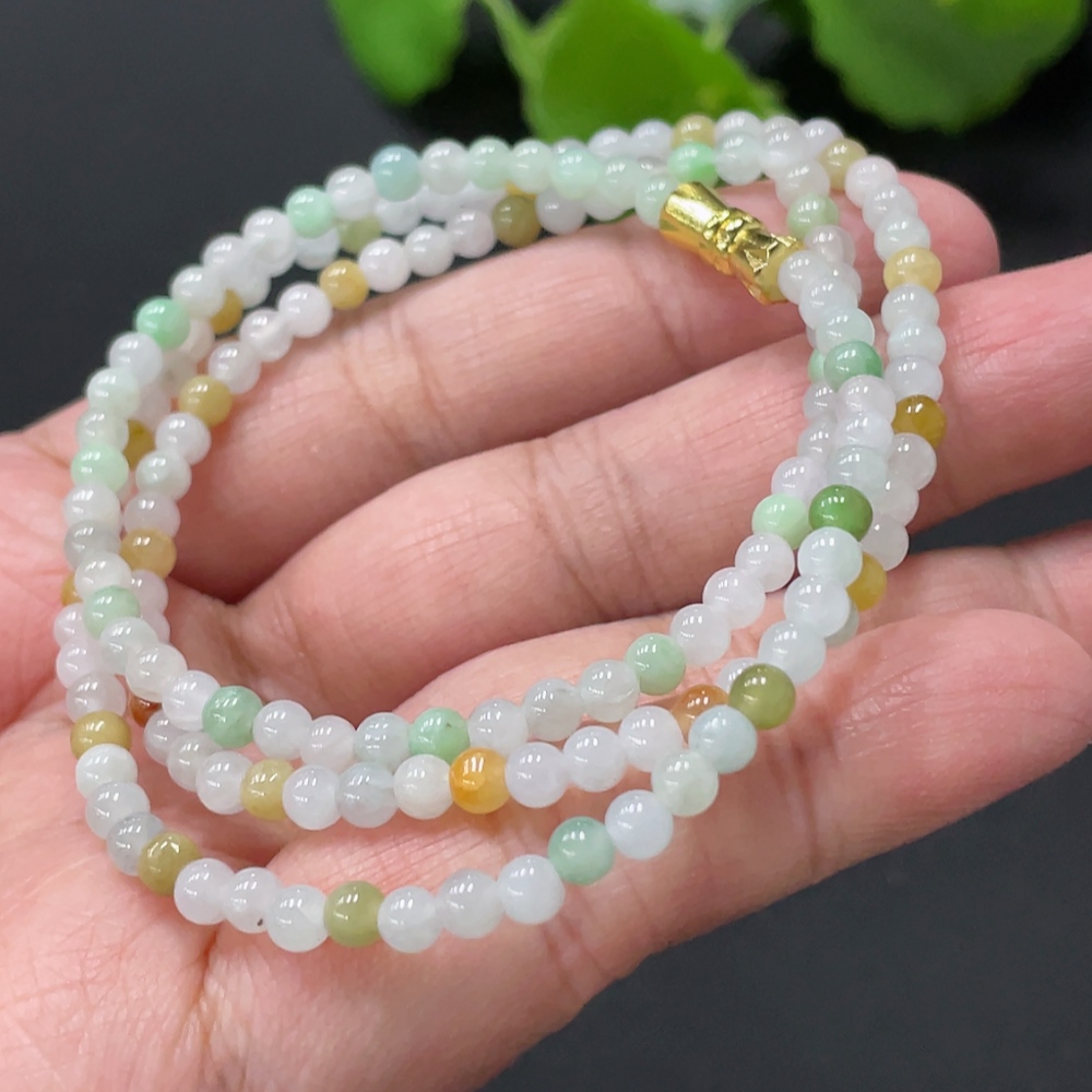 Jadeite Bead Necklace Approx. 3.6mm Non-Gold Clasp Total Weight Approx. 12.37g