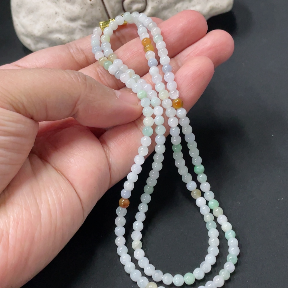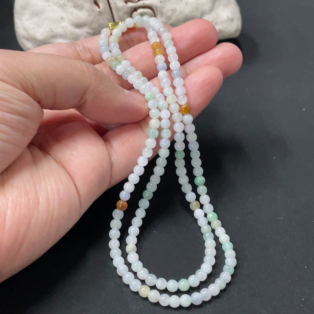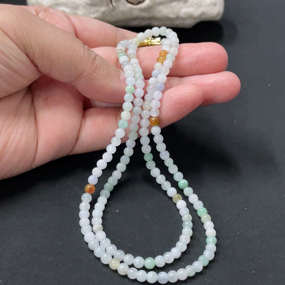 Jadeite Bead Necklace Approx. 3.8mm Non-Gold Clasp Total Weight Approx. 15g Non-Gold Clasp