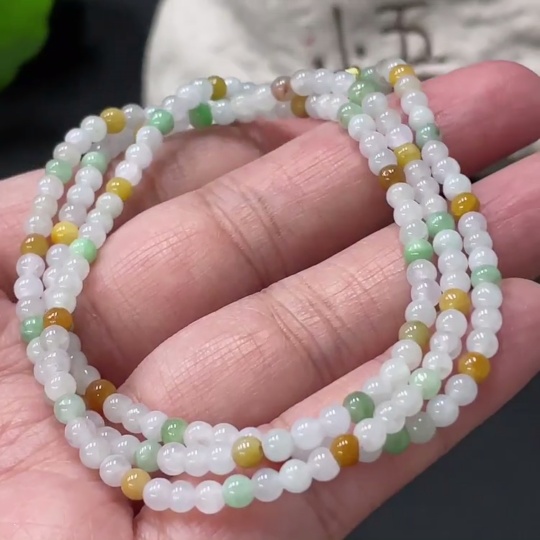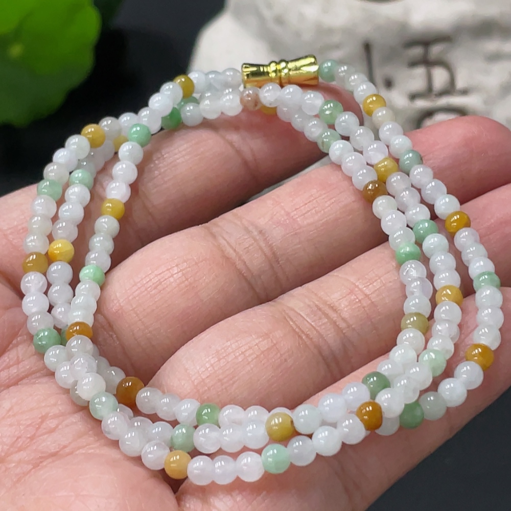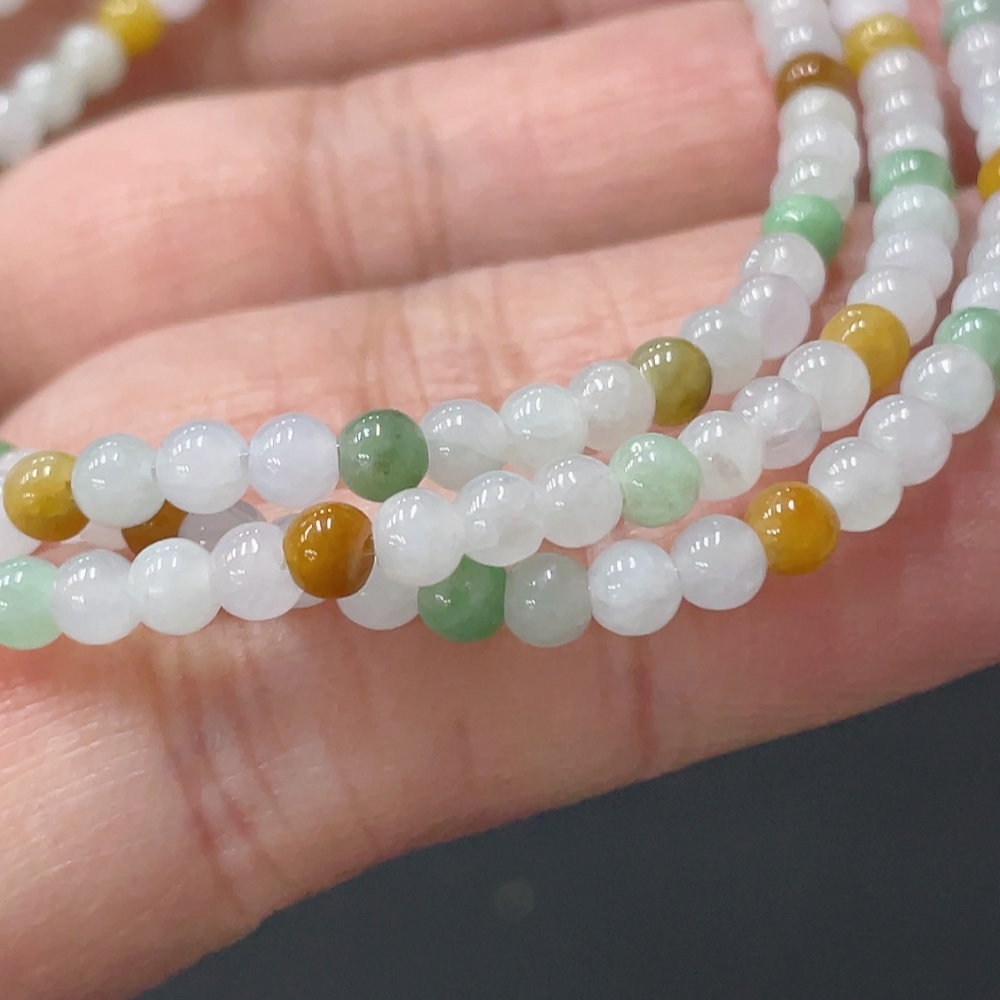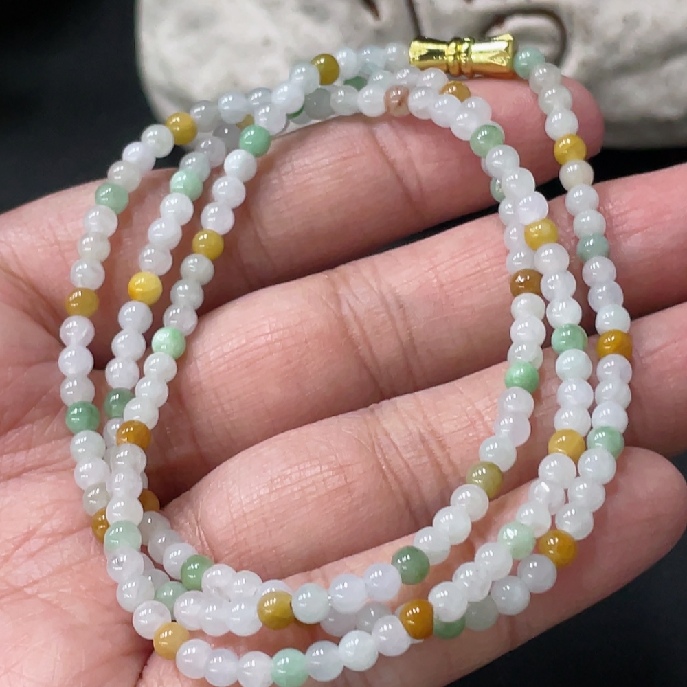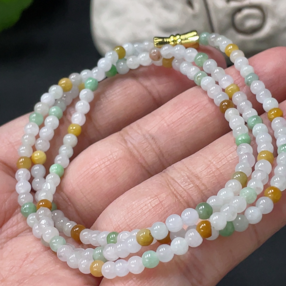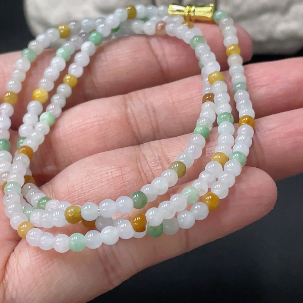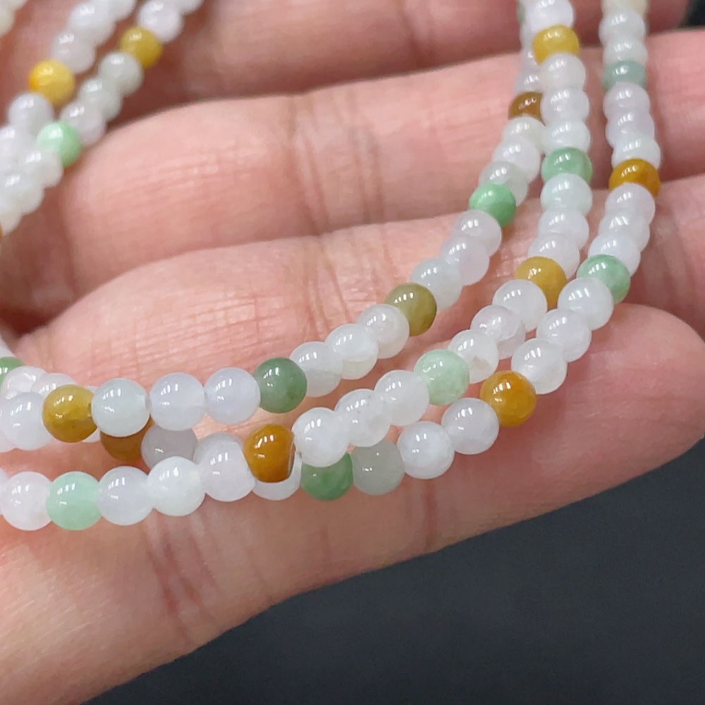 Jadeite Bead Necklace Approx. 3.3mm Non-Gold Rope Clasp Total Weight Approx. 11.87g