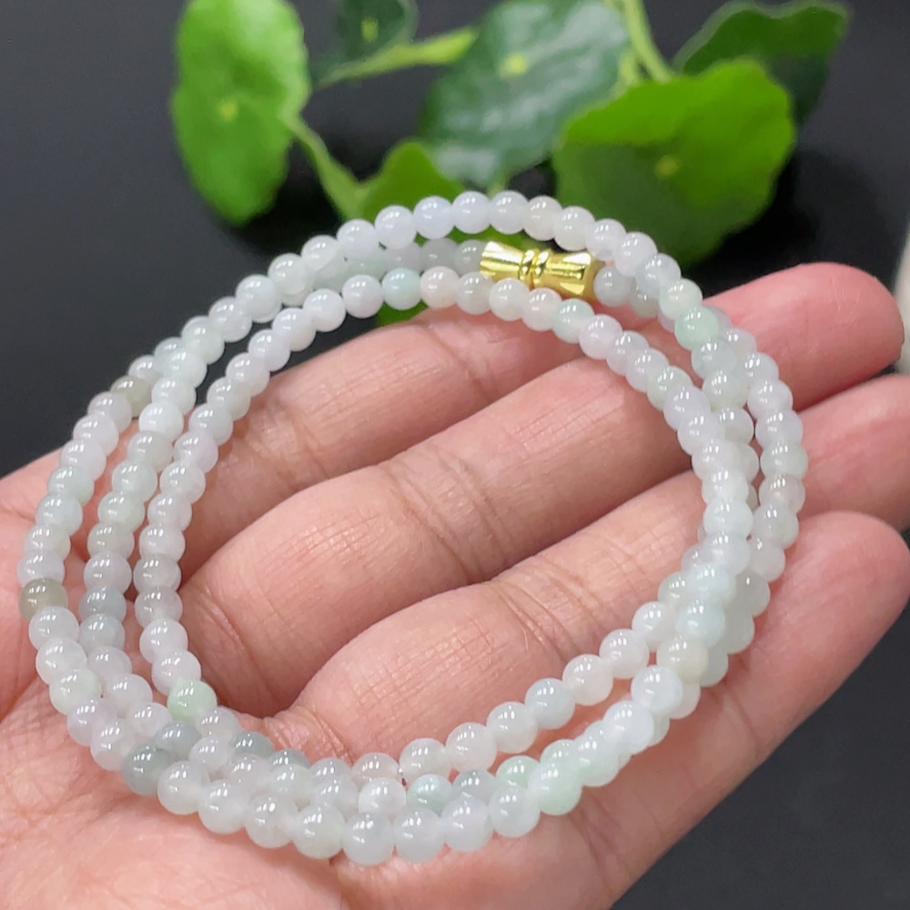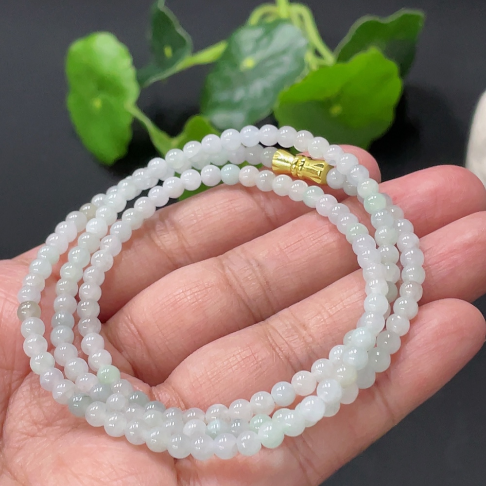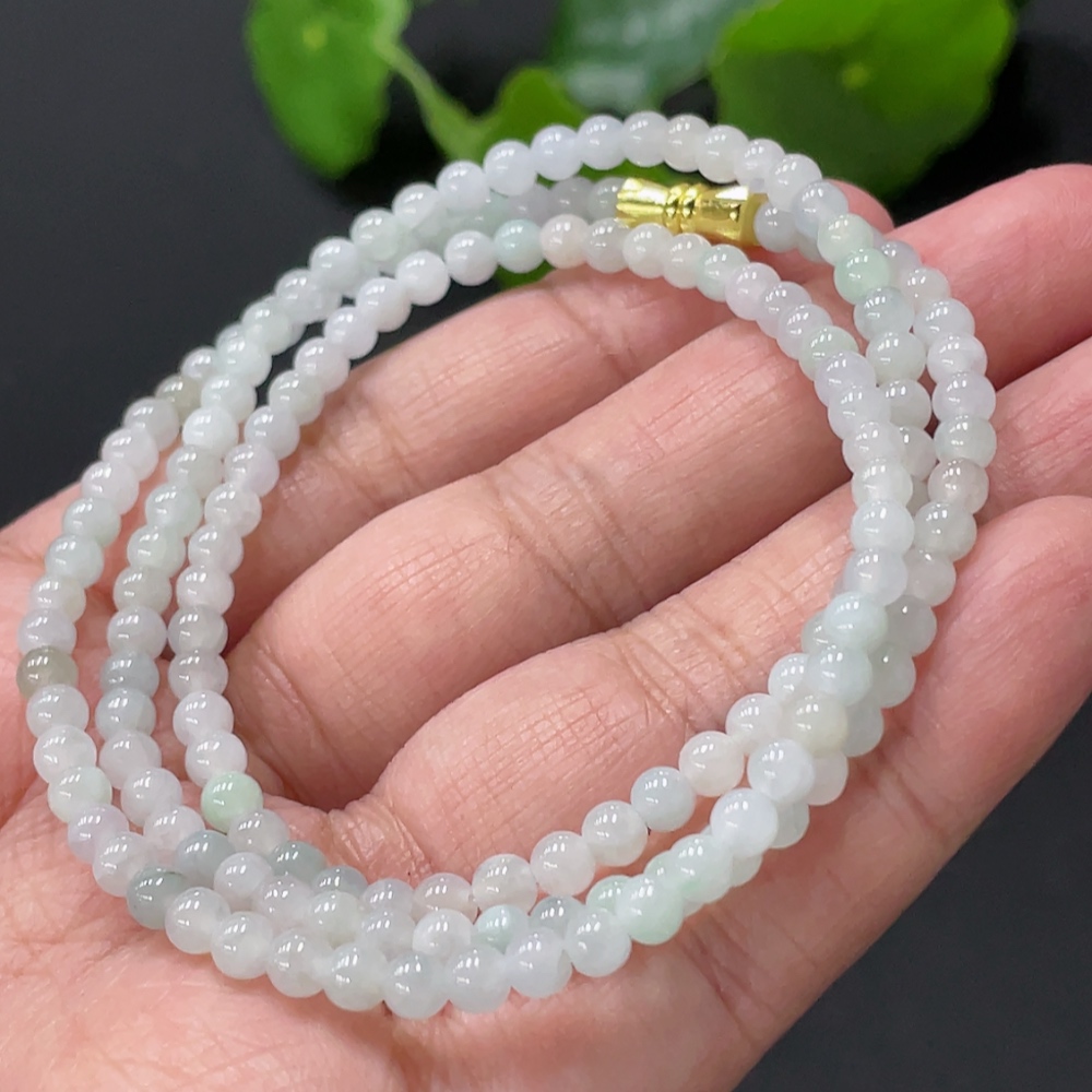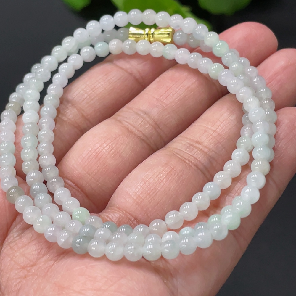 Jadeite Bead Necklace Approx. 3.8mm Non-Gold Clasp Total Weight Approx. 14.8g