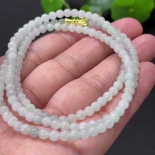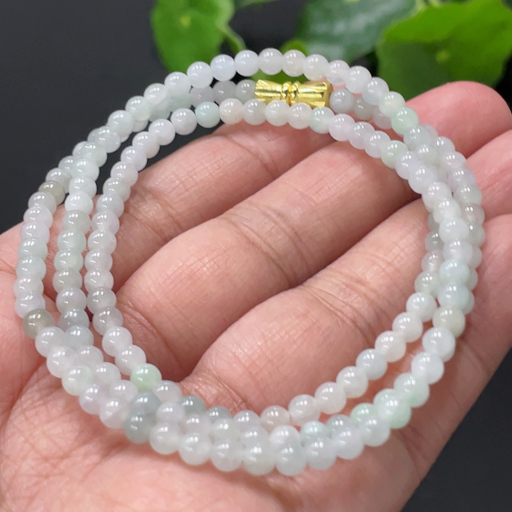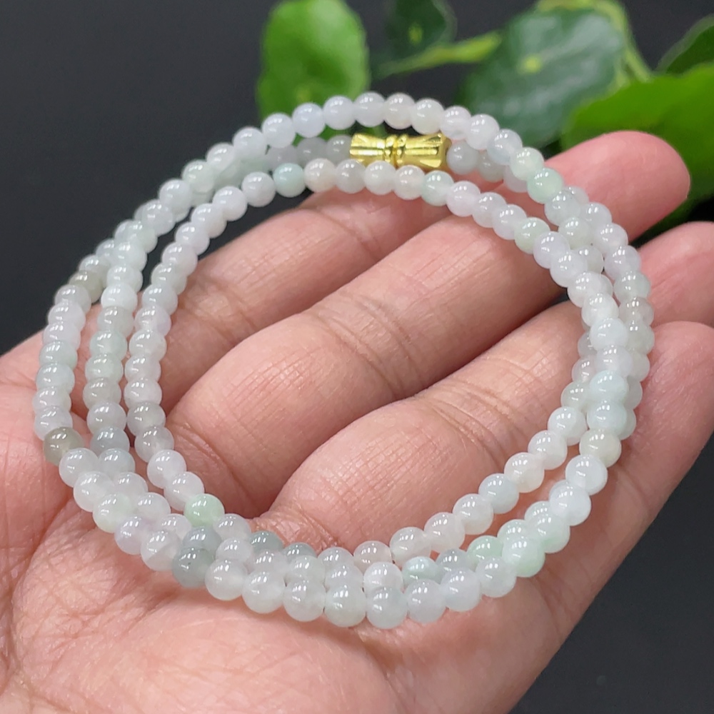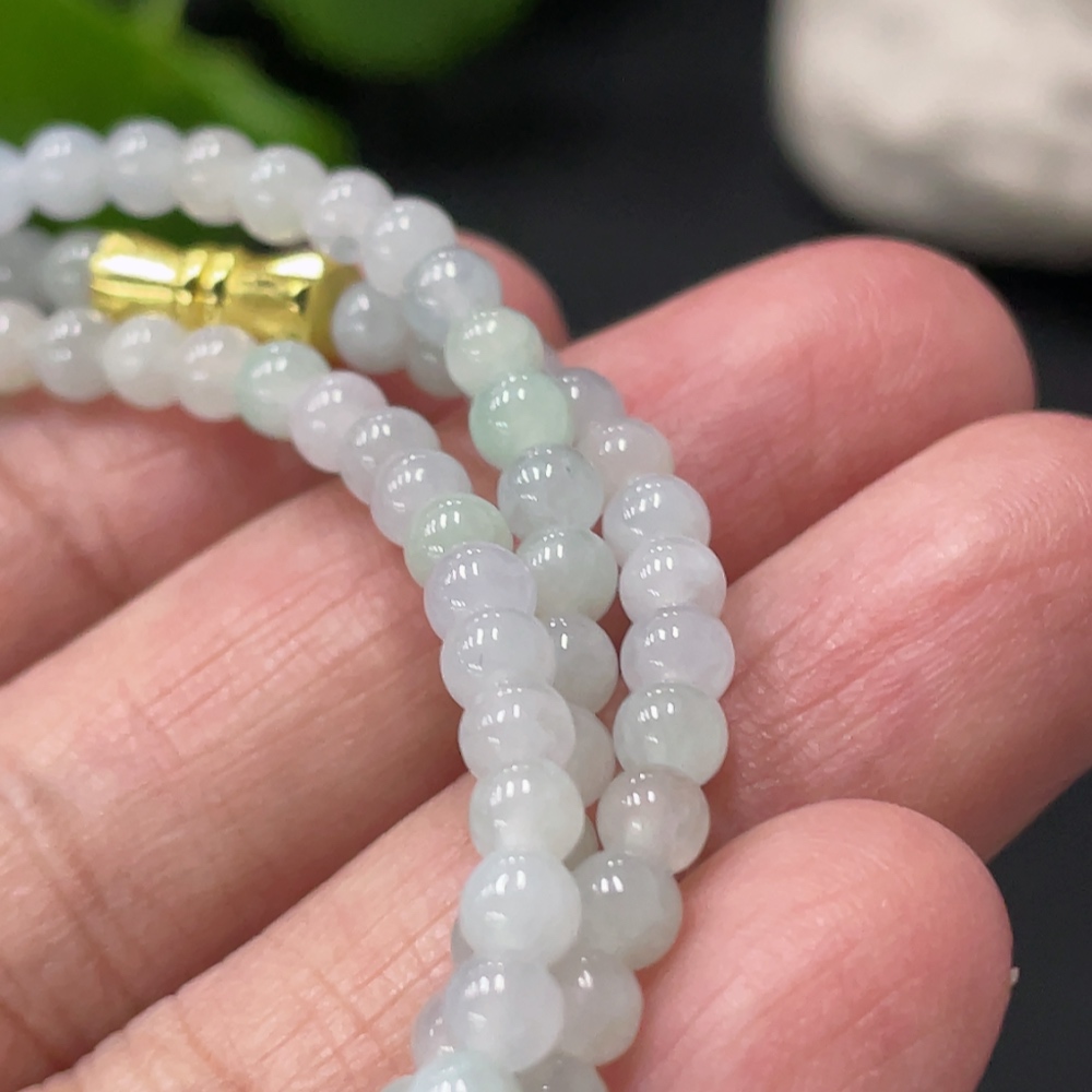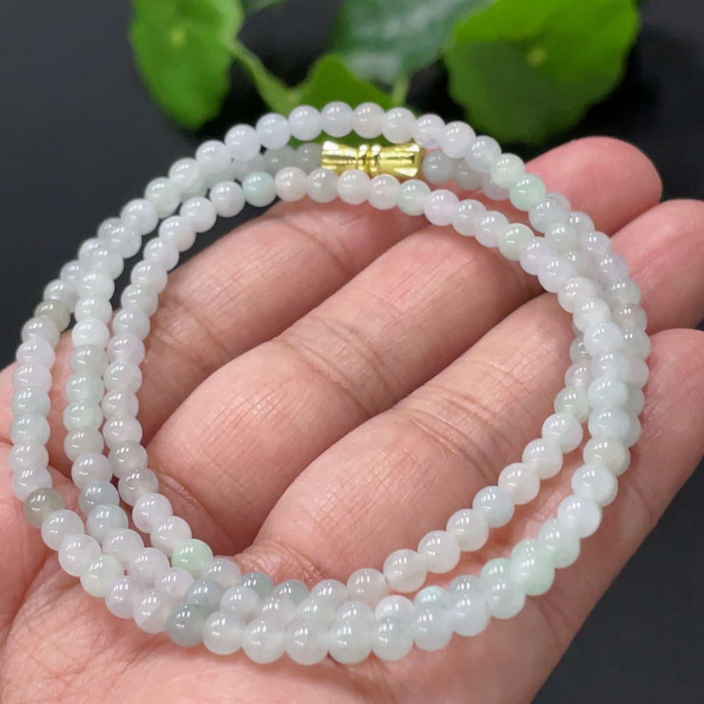 Jadeite Bead Necklace Approx. 3.8mm Non-Gold Clasp Total Weight Approx. 14.8g