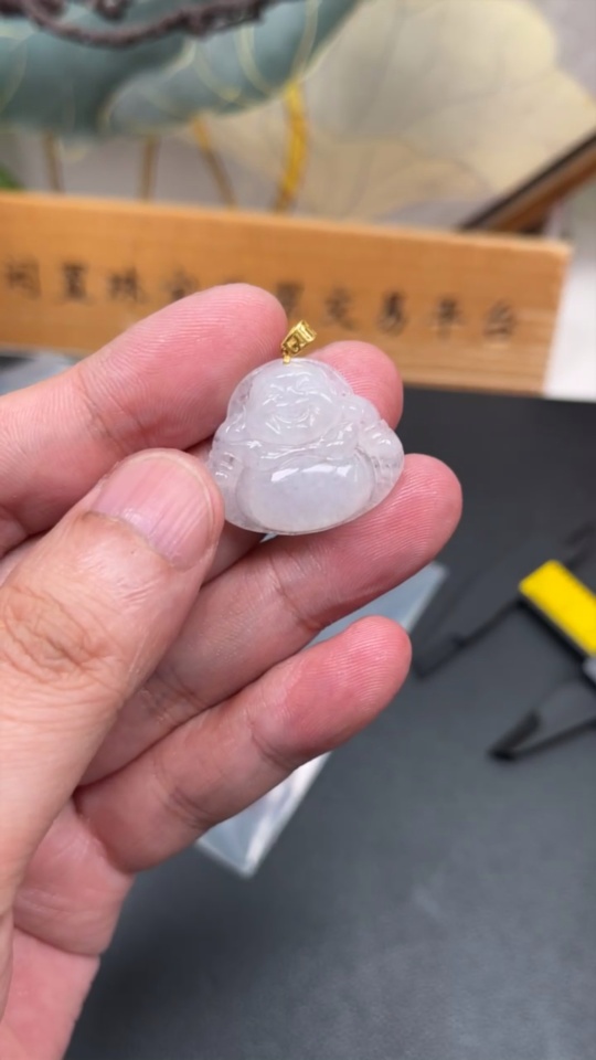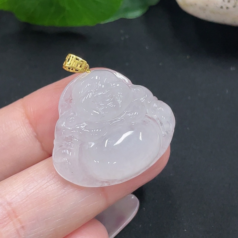 Jadeite Buddha Pendant 18K Gold Total Weight Approx. 6g