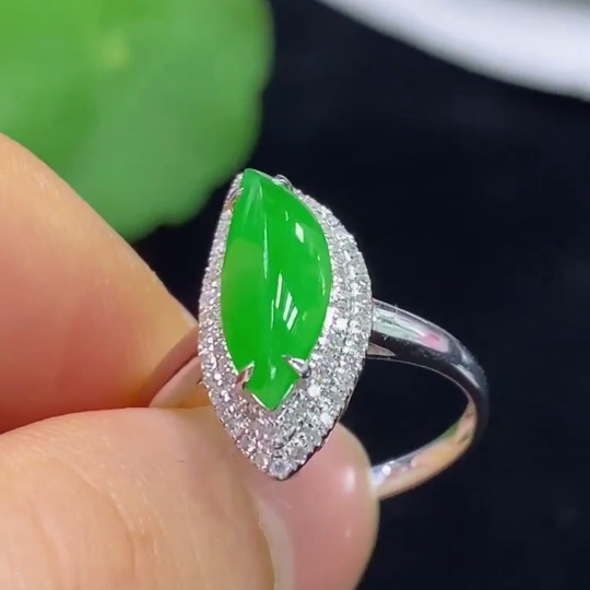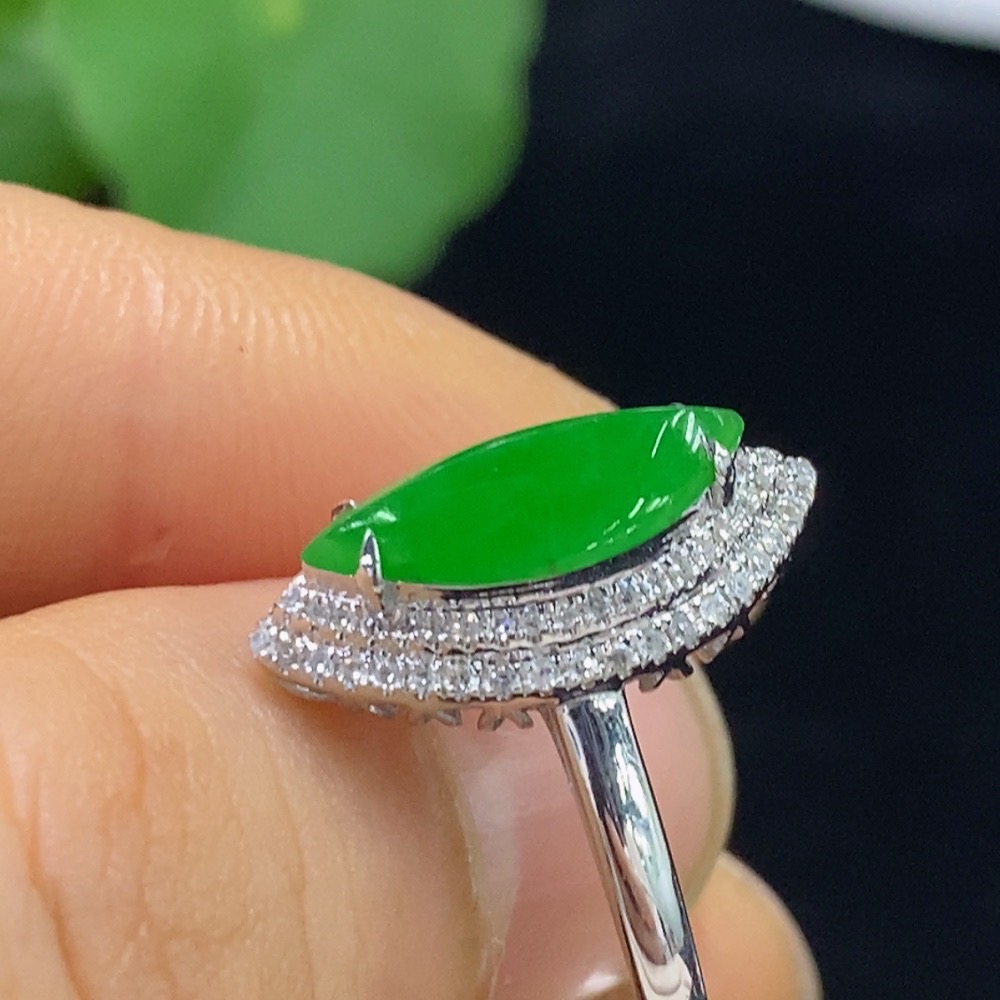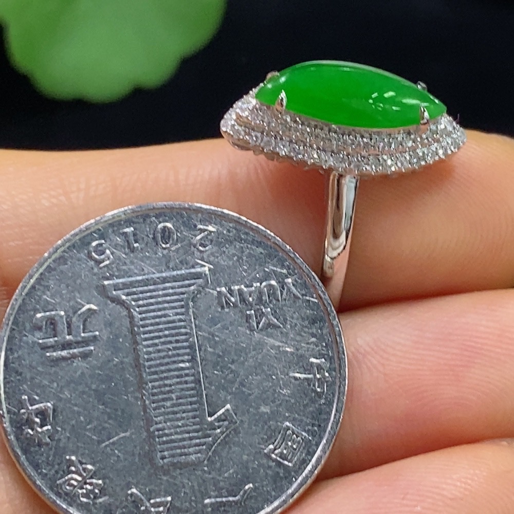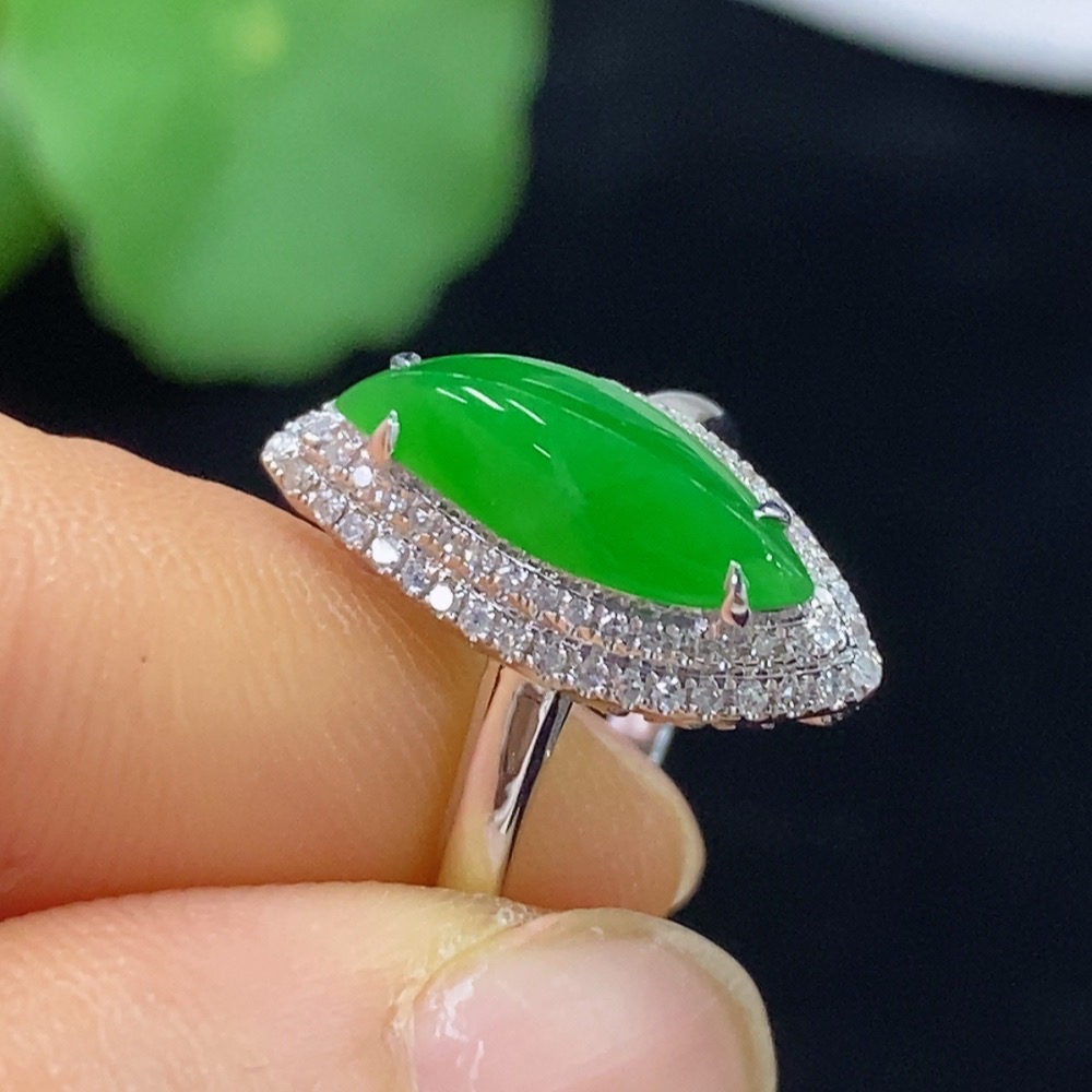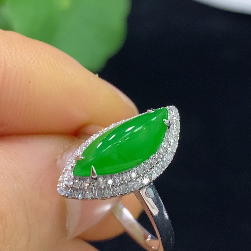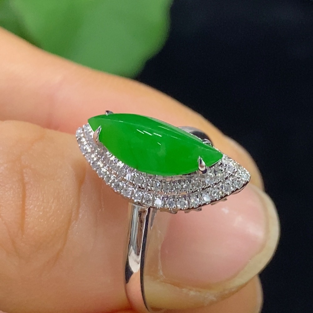 Jadeite Inlaid Ring 18k with Diamond Accents Size 15 Total Weight Approx. 2.71g