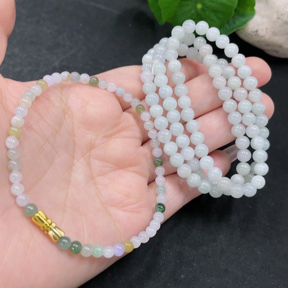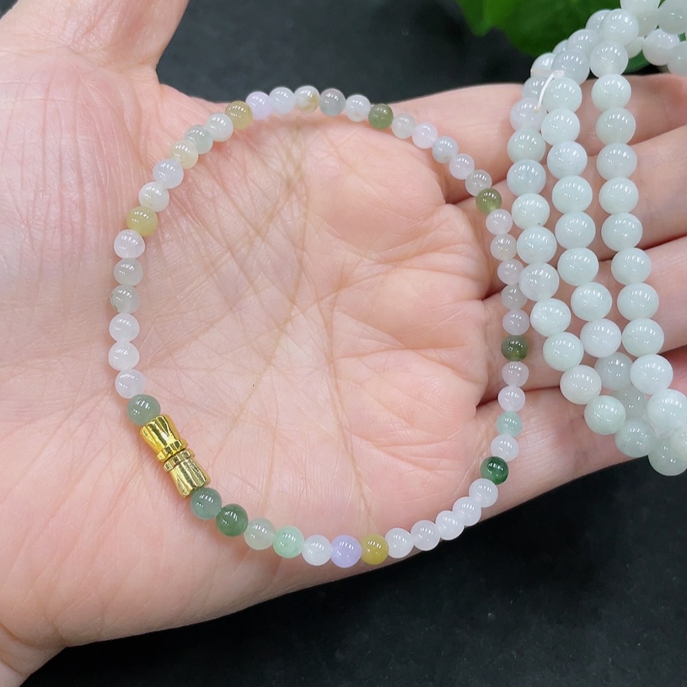 Jadeite Bracelet + Bead Necklace Sell as a Lot (Non-Gold Inlaid)