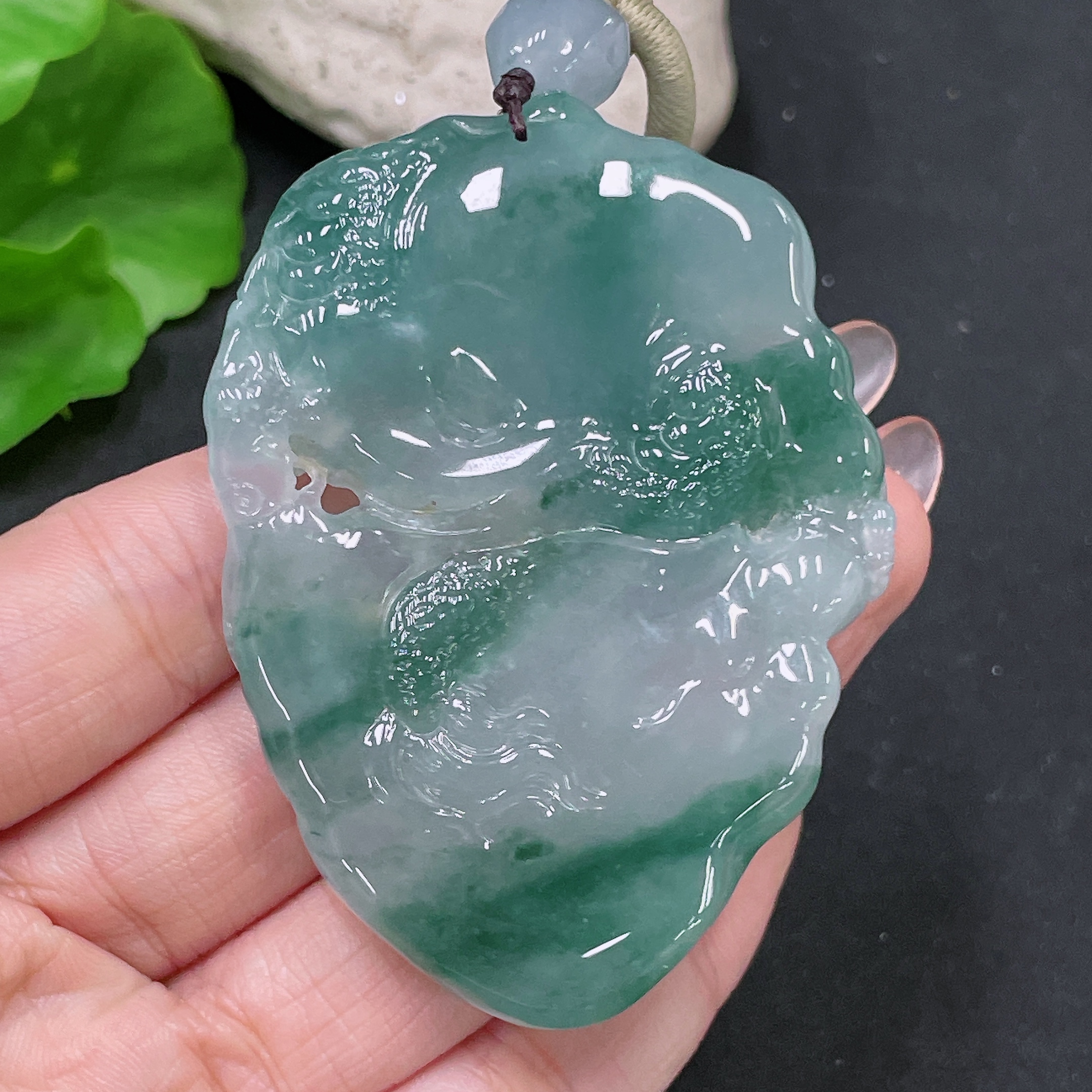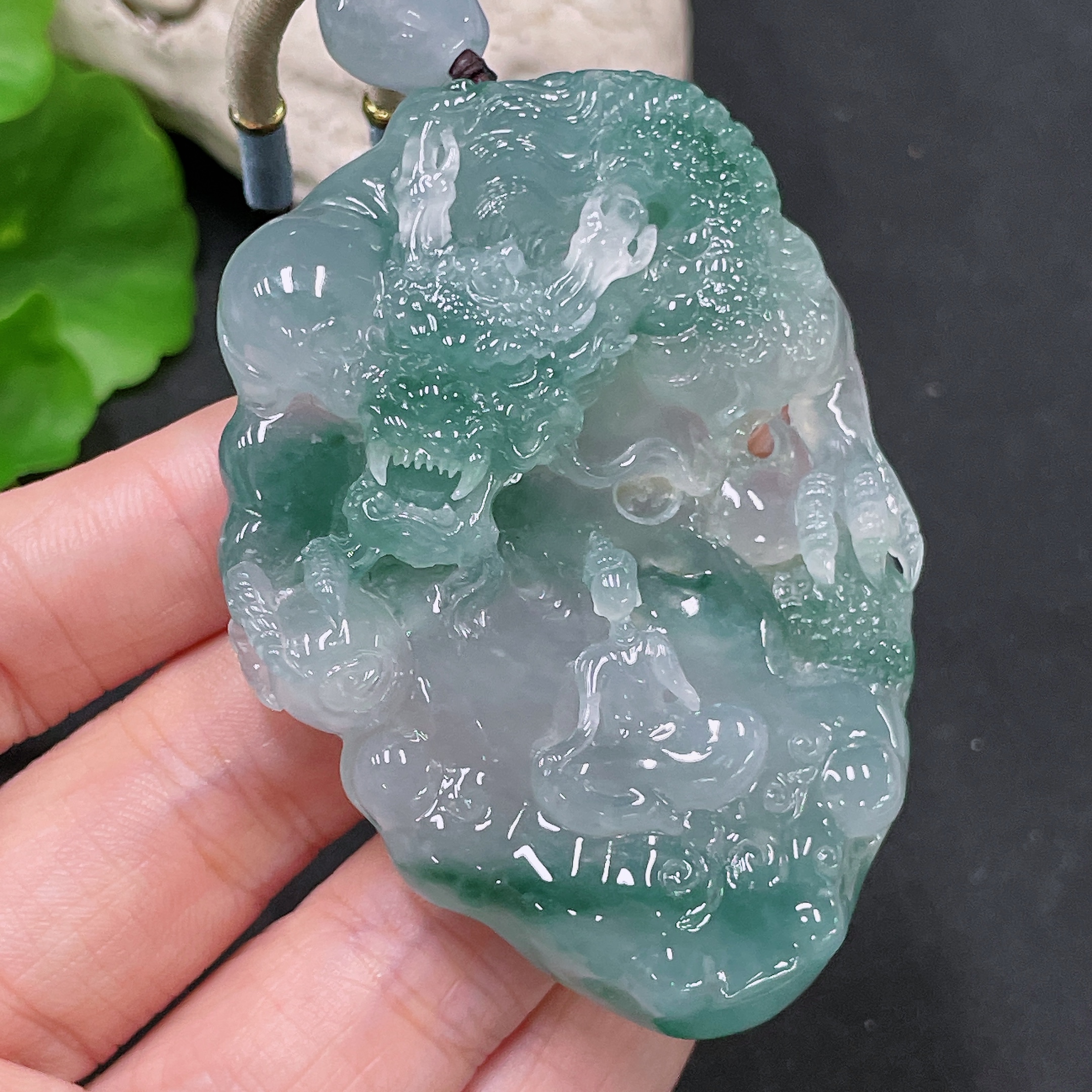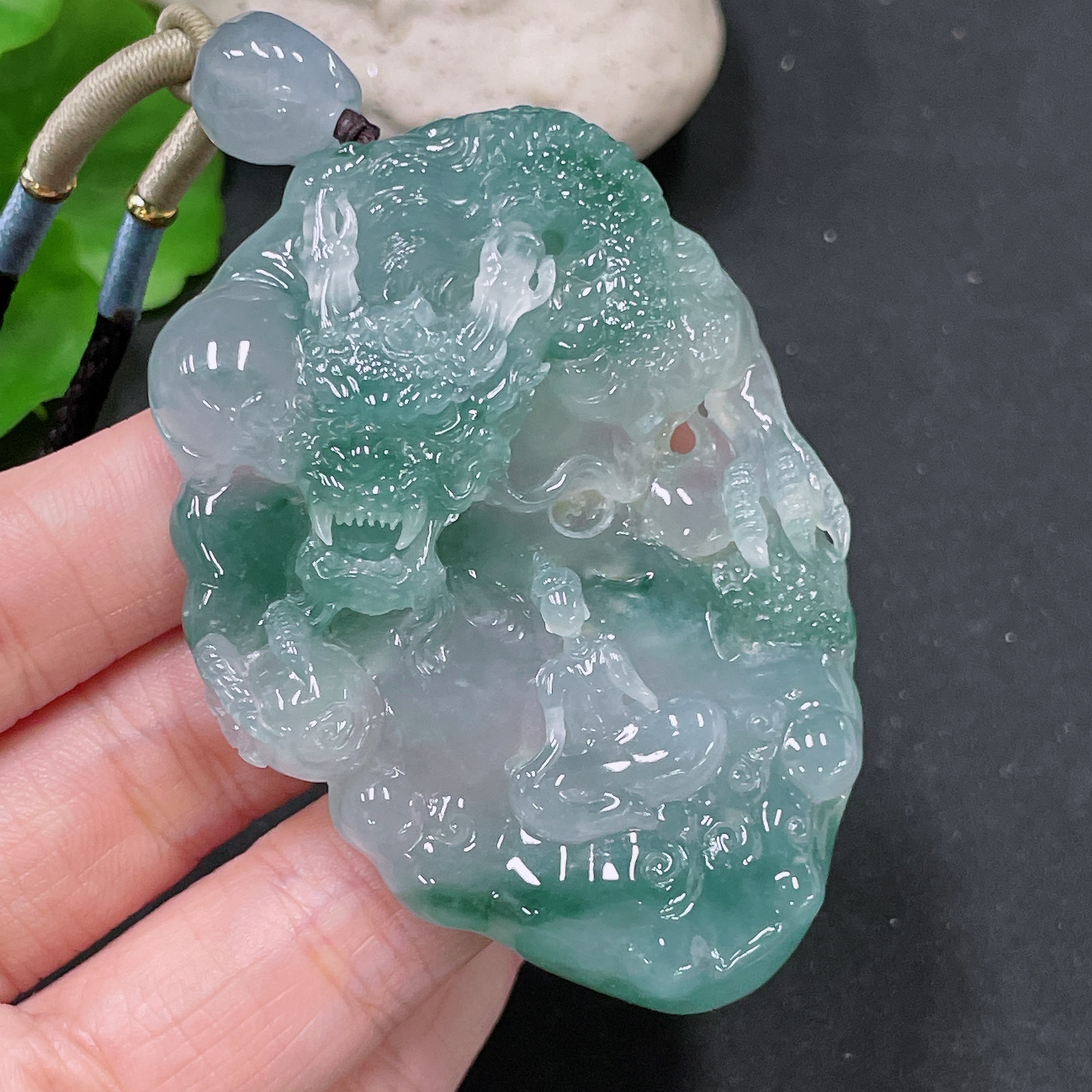 Jadeite Pendant Dragon Plaque with Cord, Total Weight Approx. 71.21g