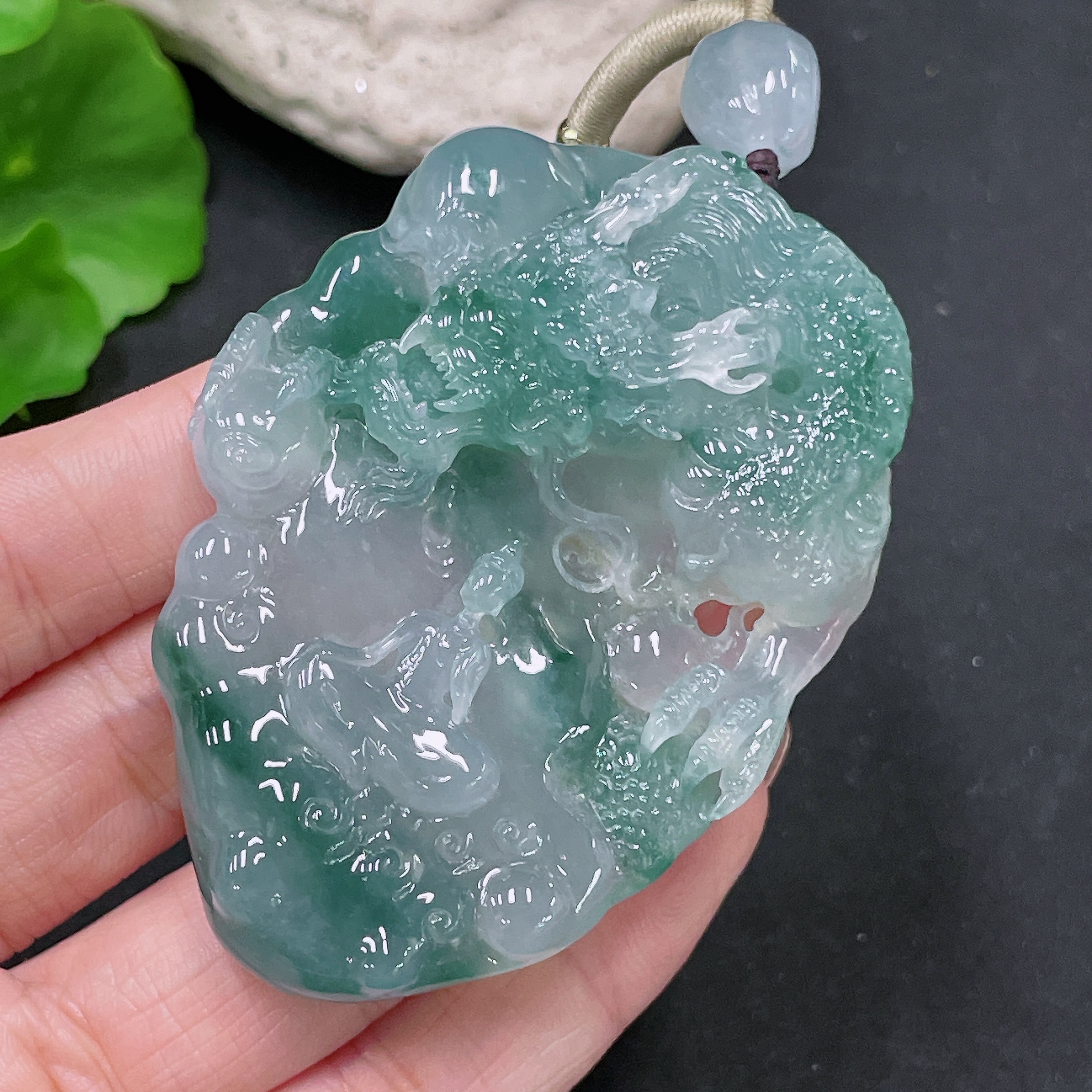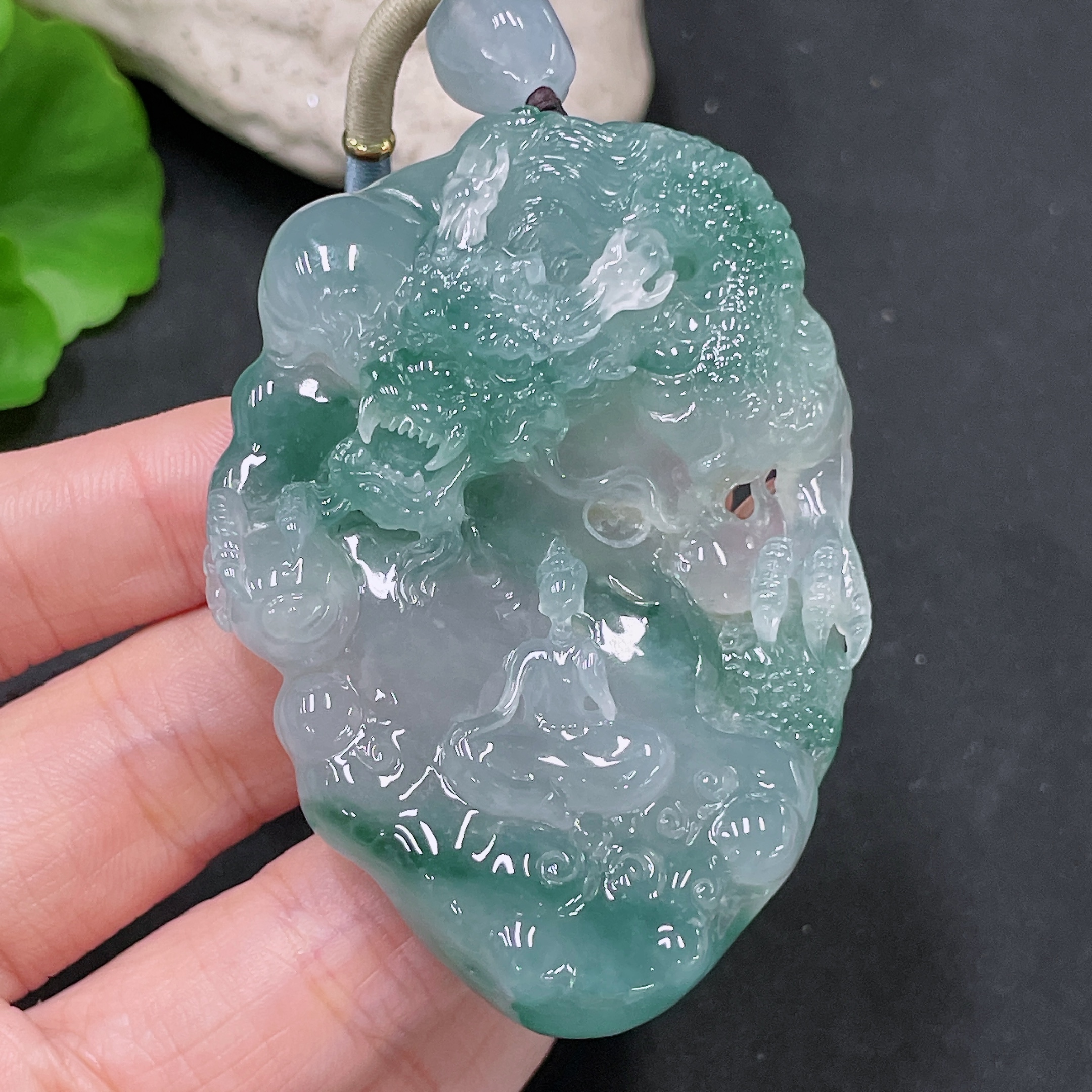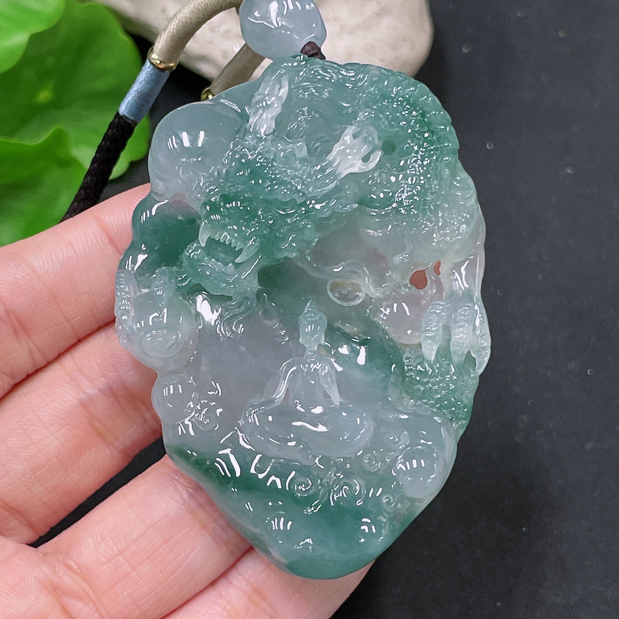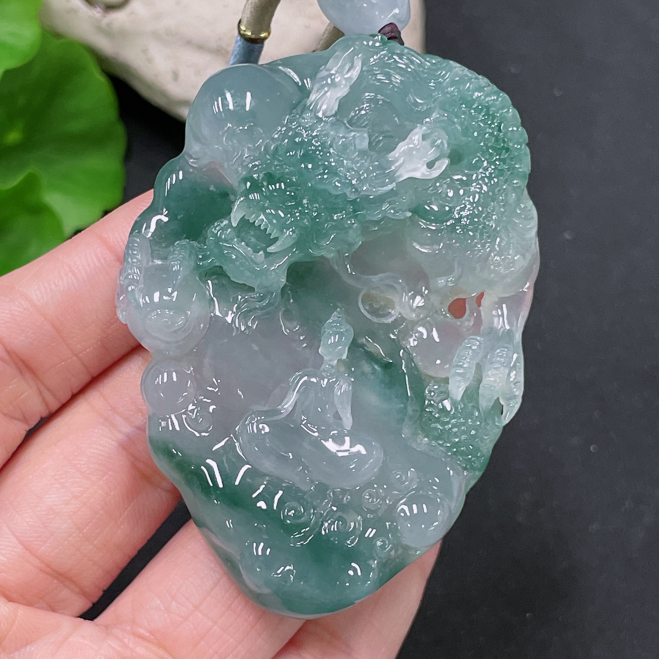 Jadeite Pendant Dragon Plaque with Cord, Total Weight Approx. 71.21g