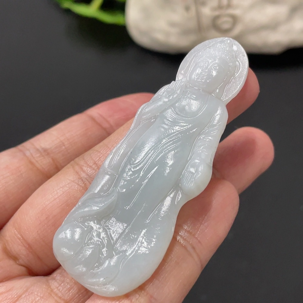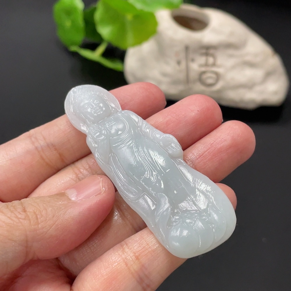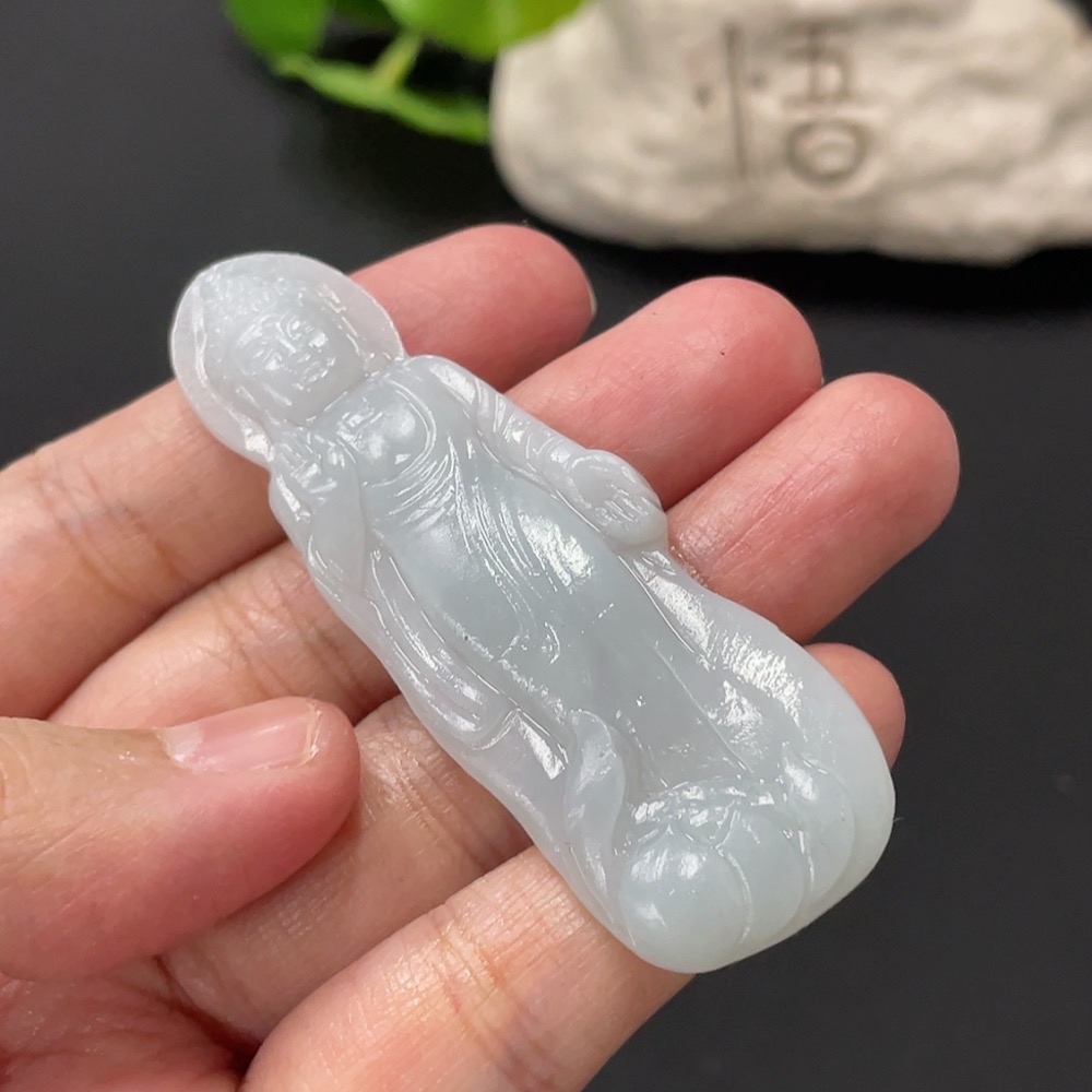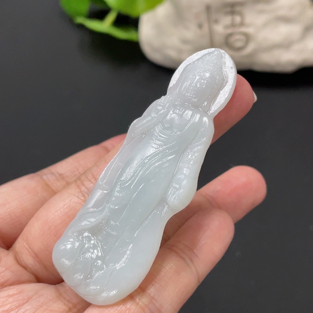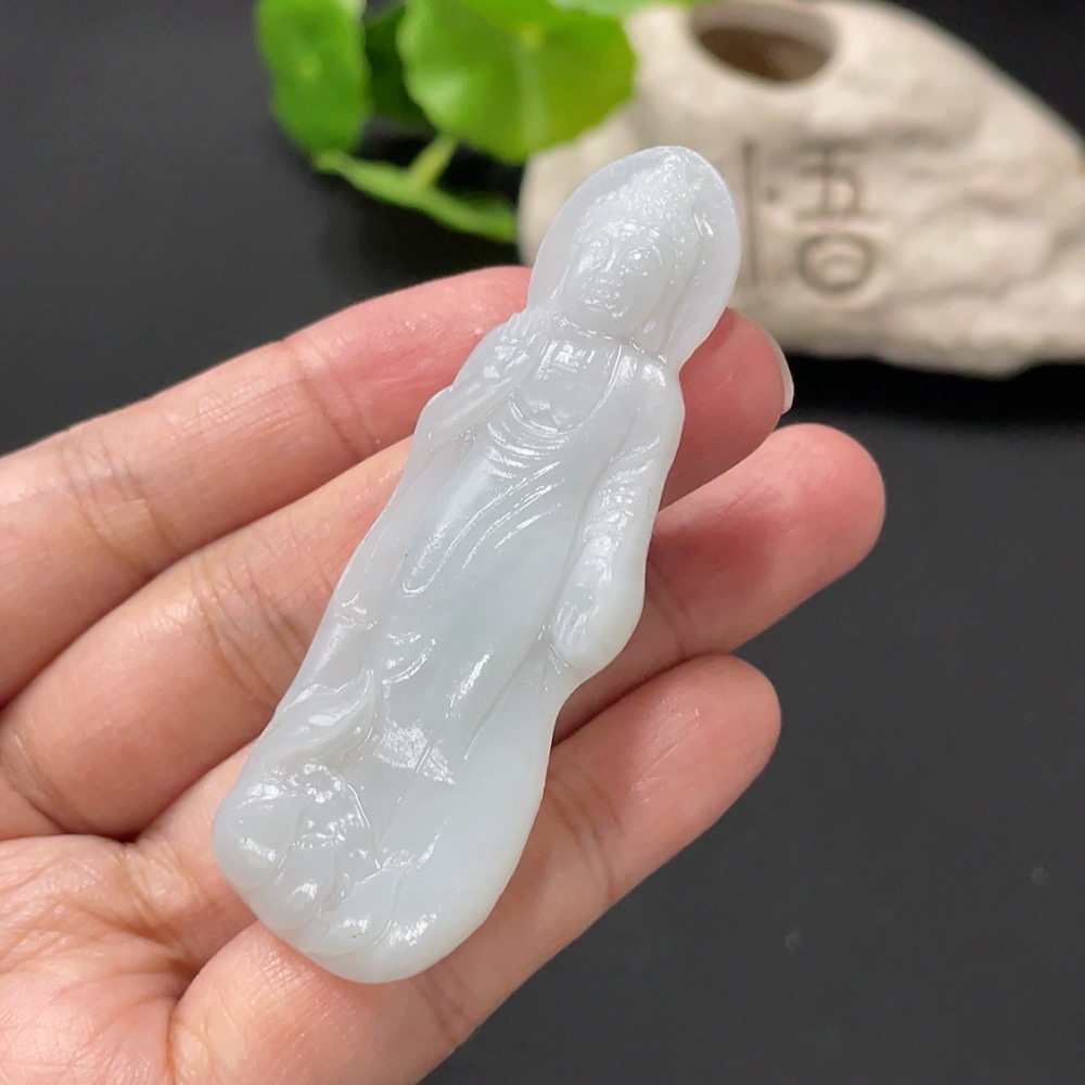 Jadeite Rough Guanyin Pendant Total Weight Approx.13.89g