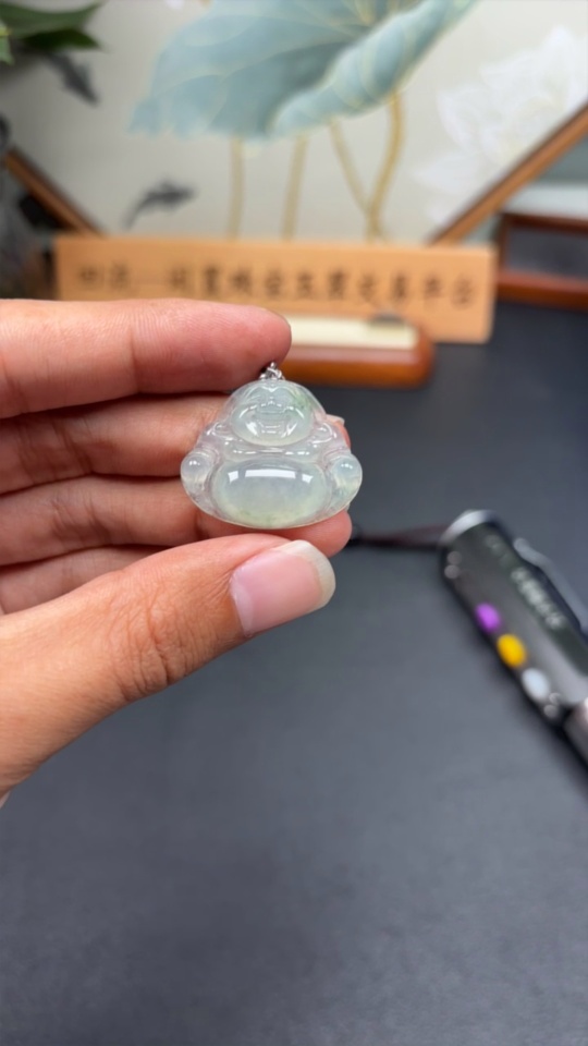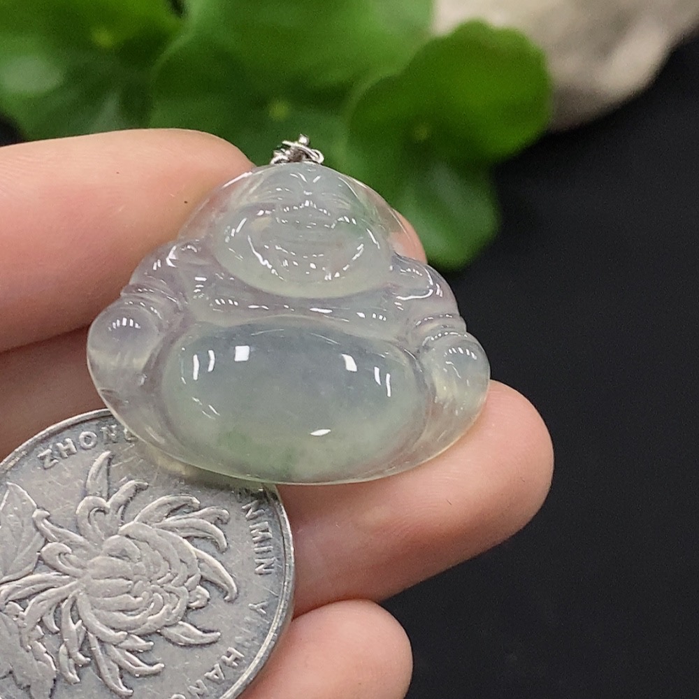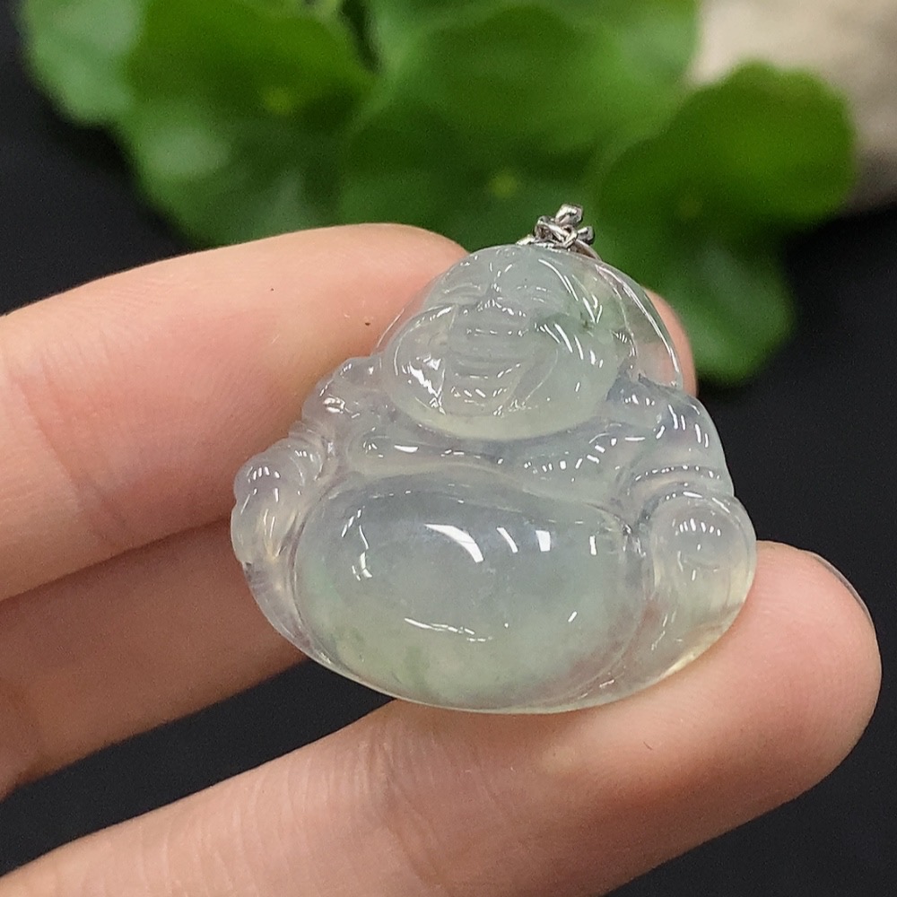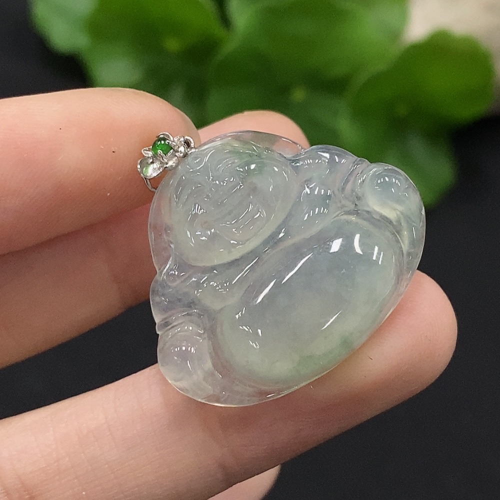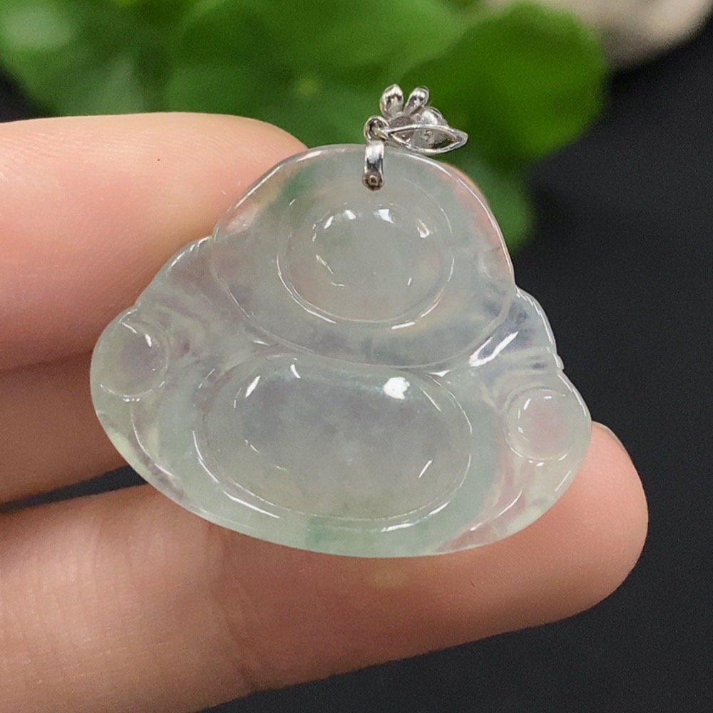 Jadeite Buddha Pendant with 18K Gold, Total Weight Approx. 5.9g