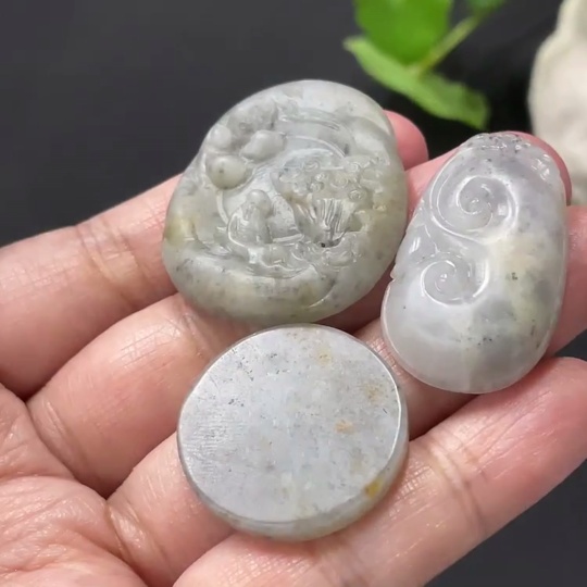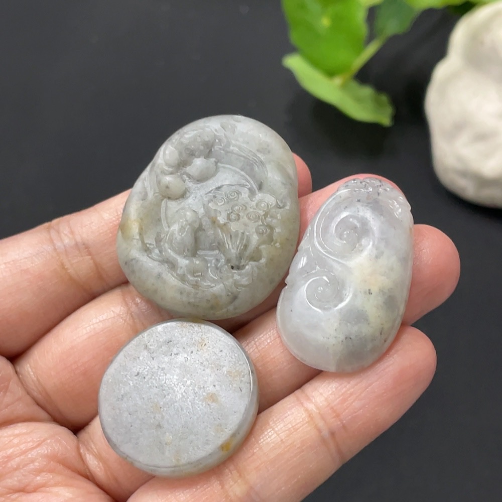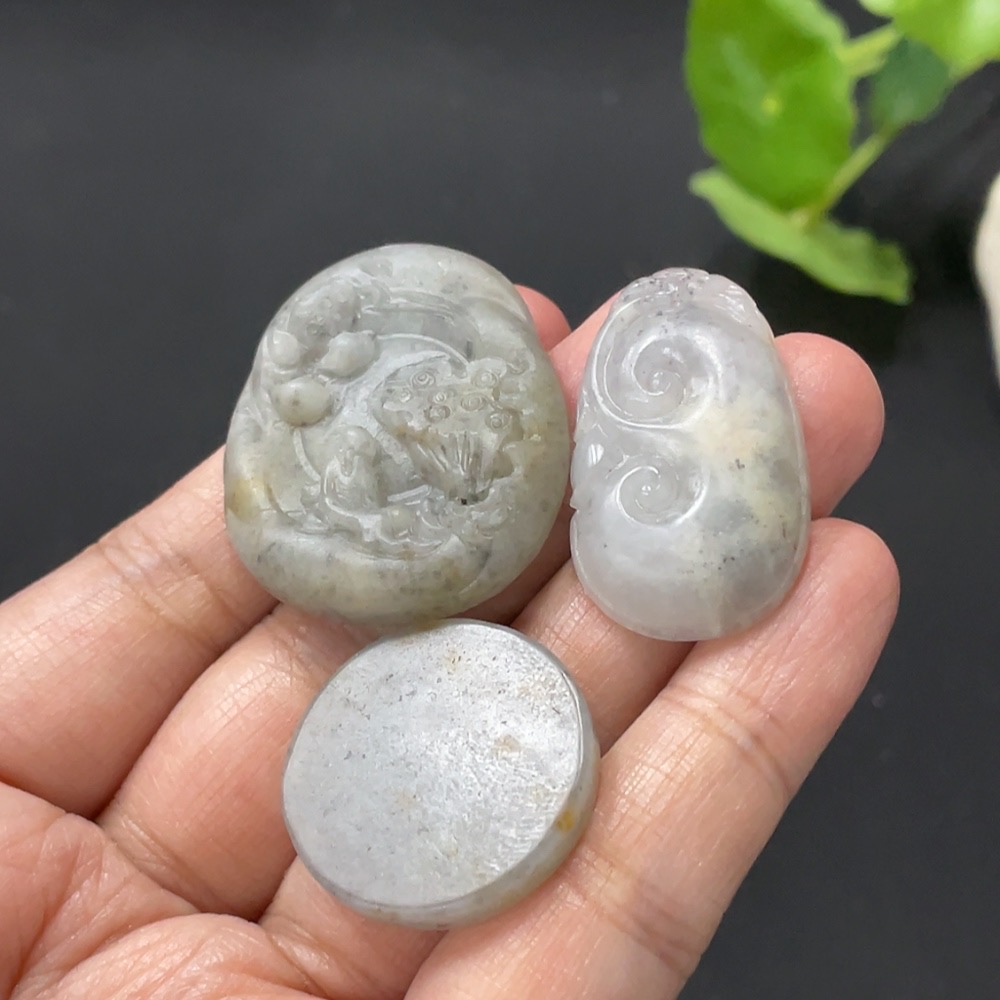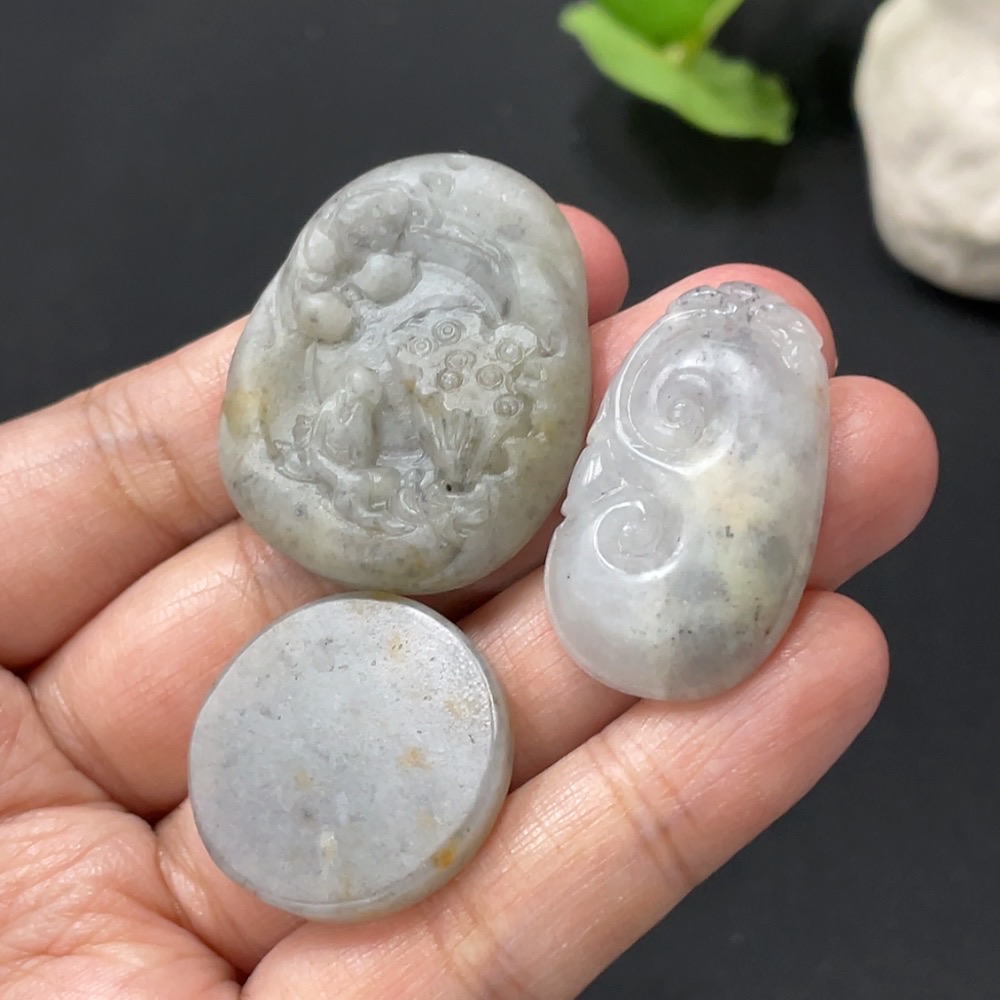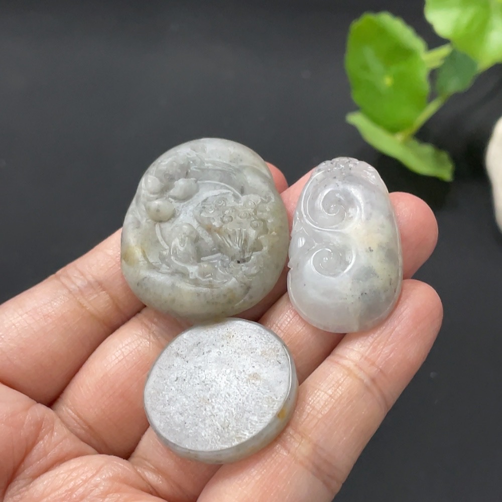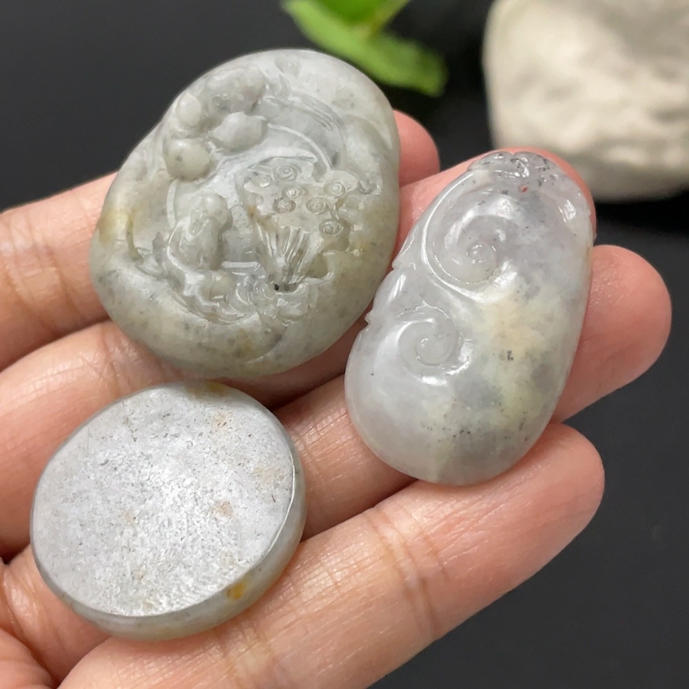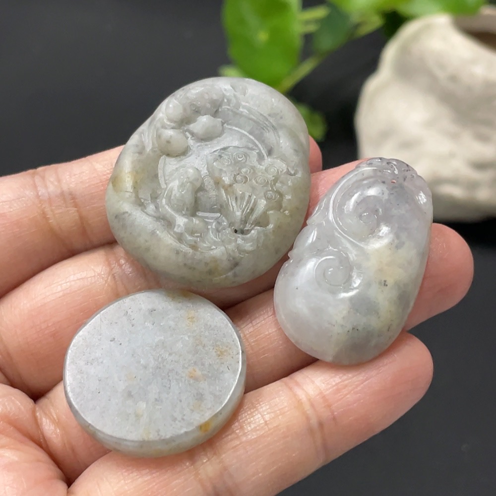 Jadeite Rough Pendants Sell as a Lot Containing Other Mineral Components