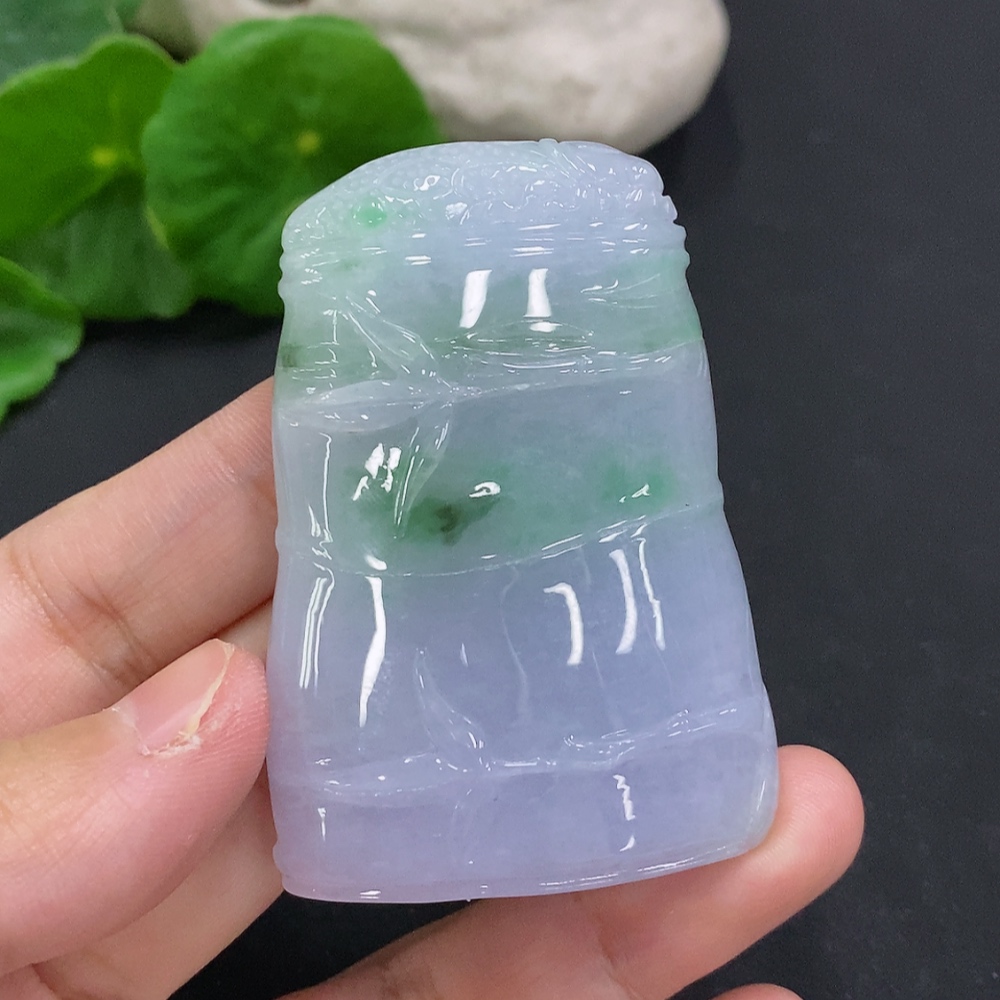 Jadeite Bamboo Pendant Total Weight Approx. 63.8g (Including Other Mineral Components)