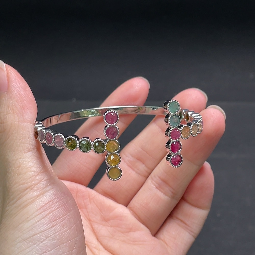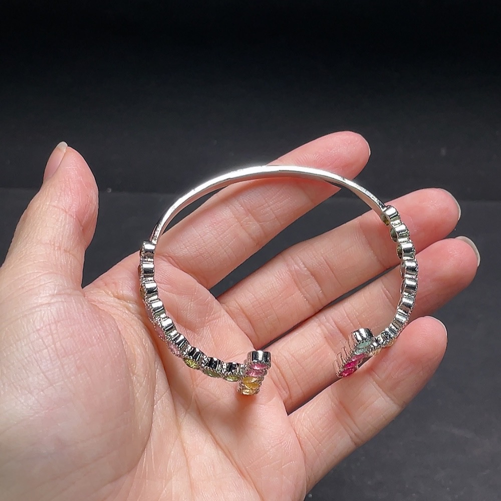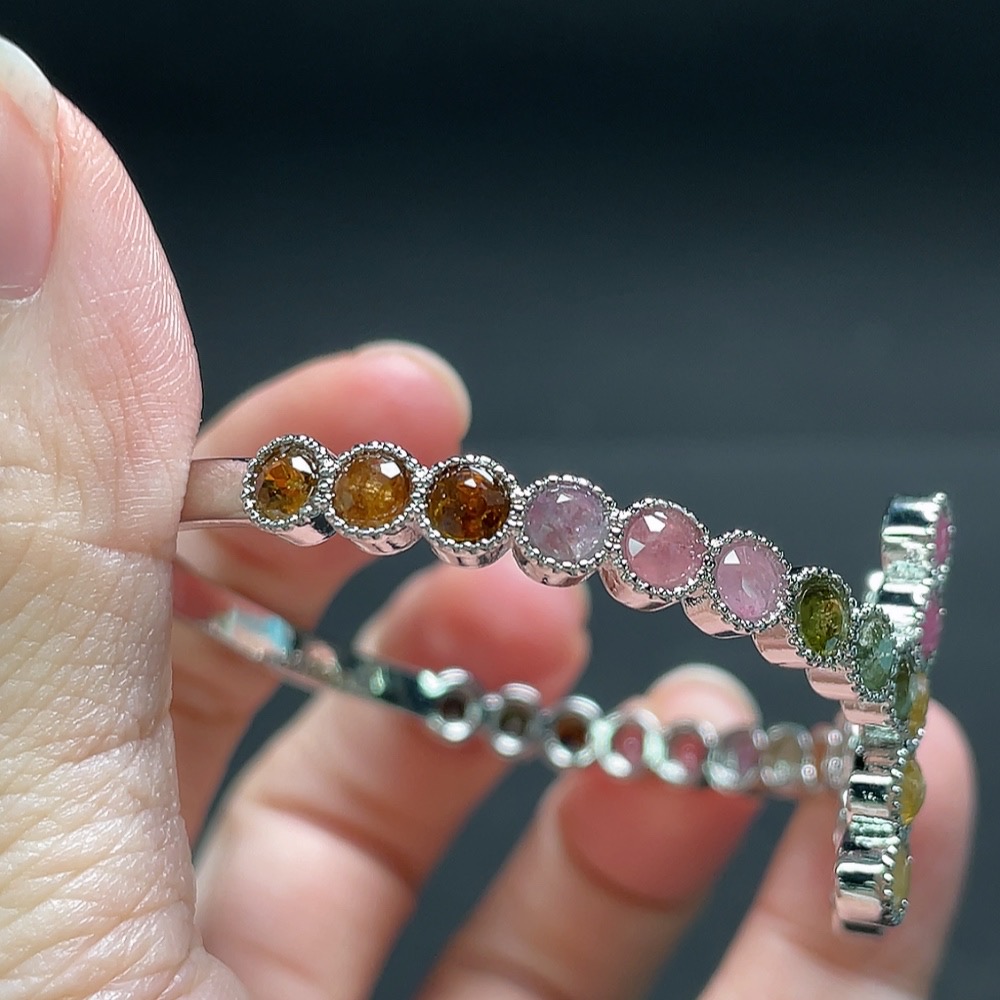 Tourmaline bracelet with visible organic matter, non-gold, adjustable, total weight approximately 10.6g