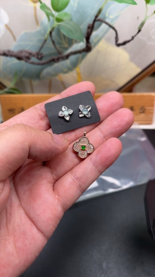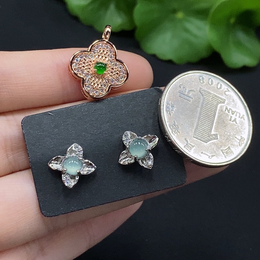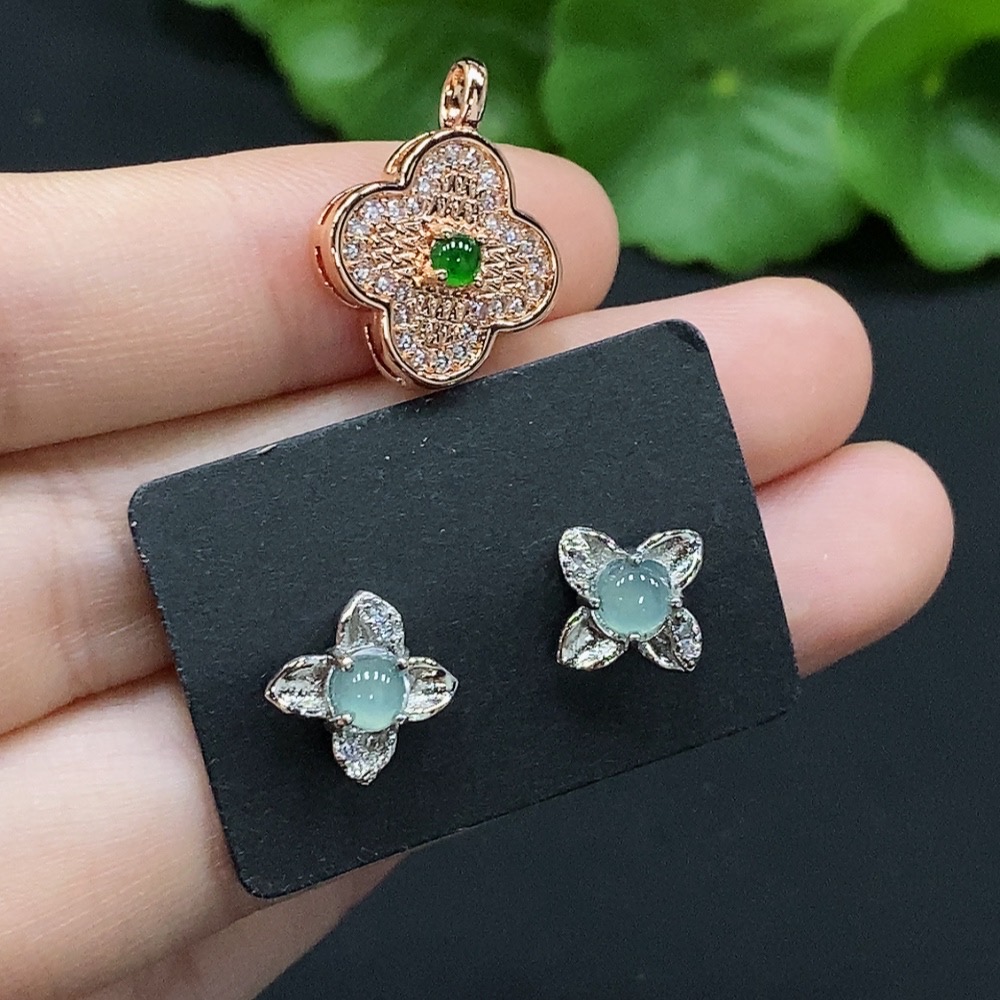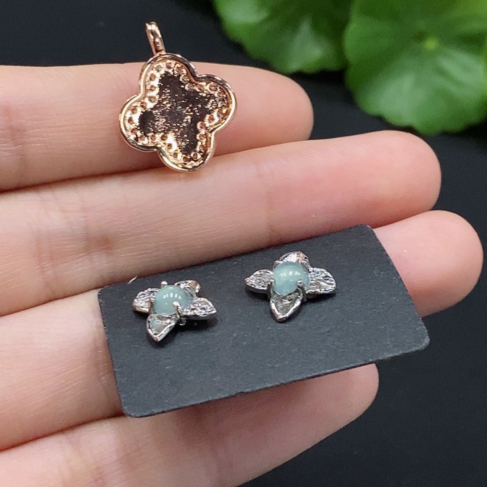 Jadeite cabochon inlaid pendant/earrings non-gold inlaid