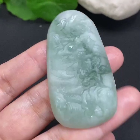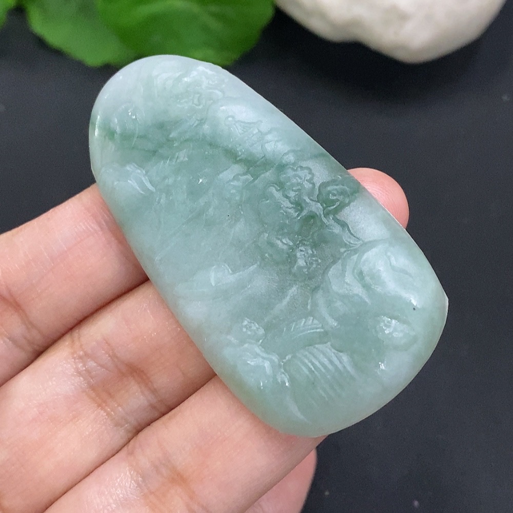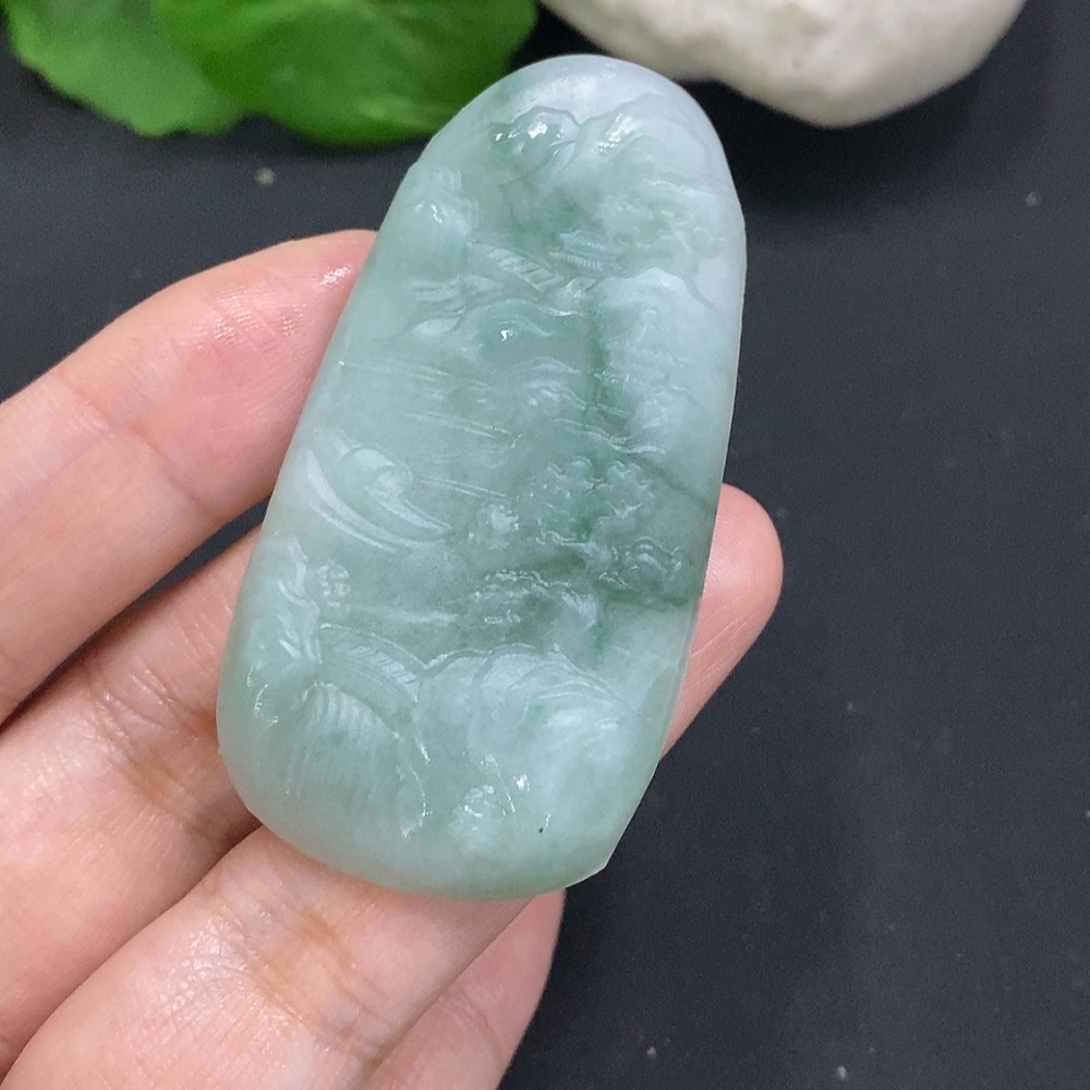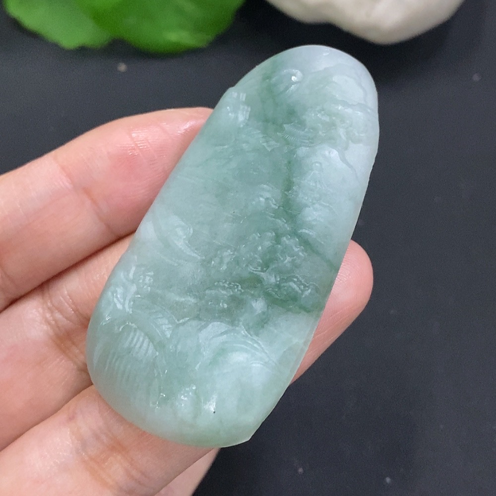 Jadeite Rough Landscape Pendant, Total Weight Approximately 18.6 Grams