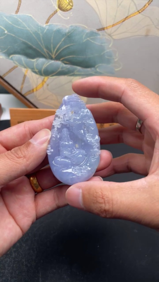 Jadeite Landscape Guanyin Pendant Total Weight Approximately 60.8g